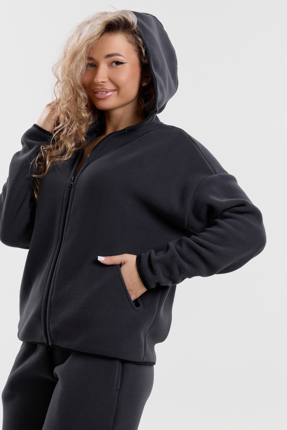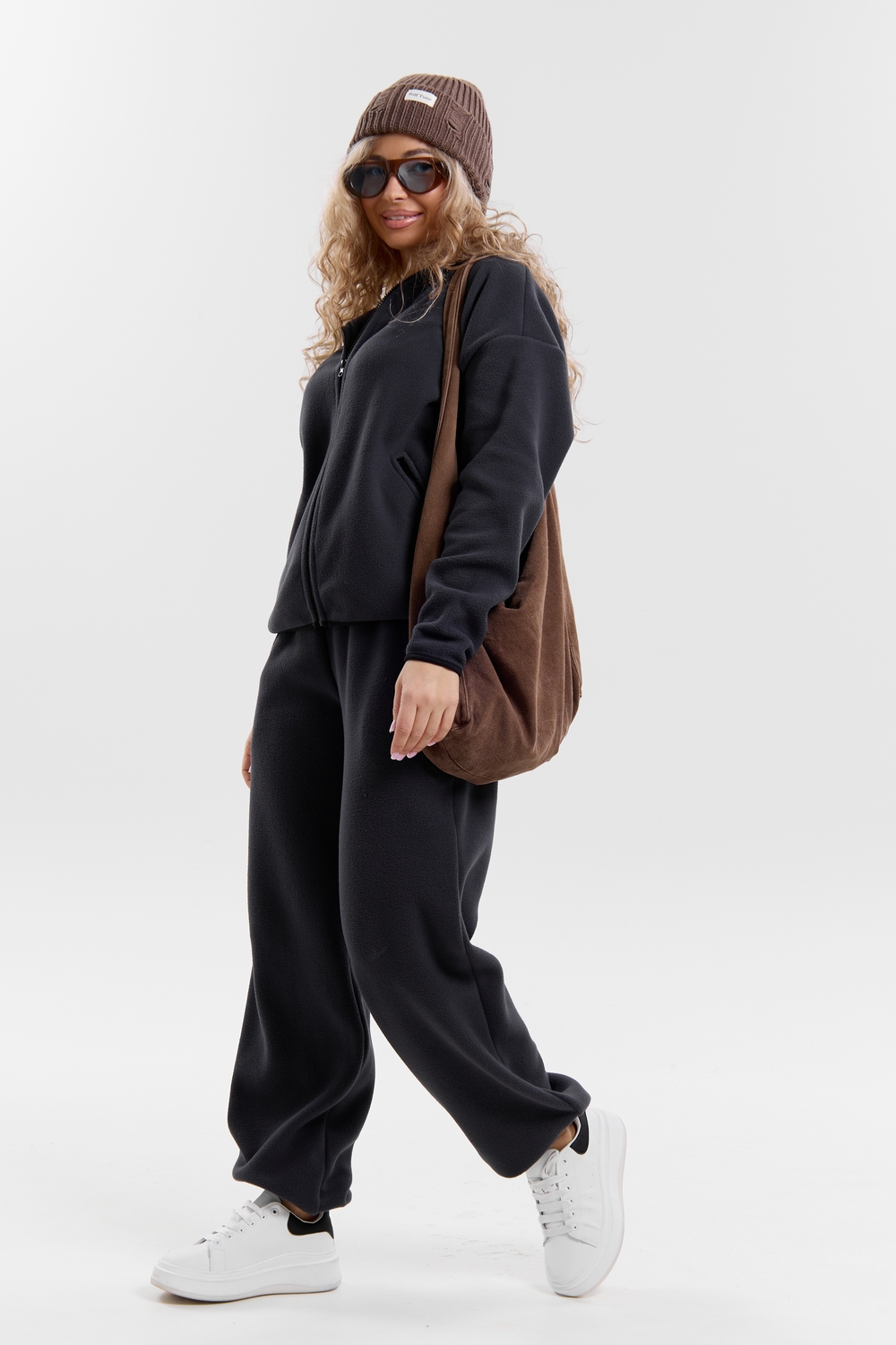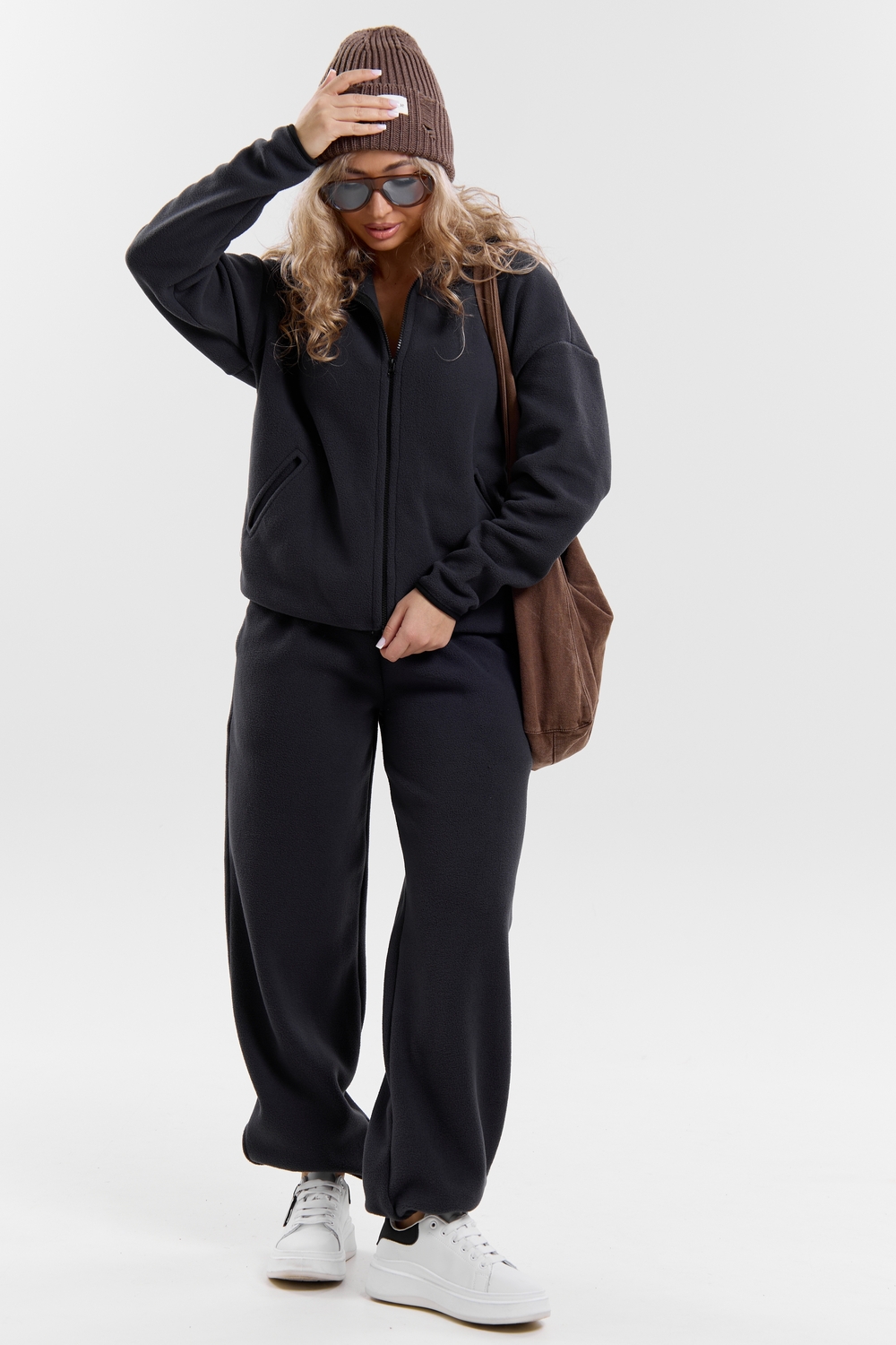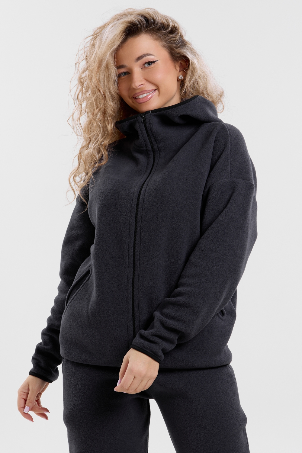 Флисовый костюм на молнии станет незаменимой вещью в вашем гардеробе. Костюм выполнен из плотной, мягкой ткани , что делает его очень теплым и приятным к телу. Благодаря высокому вороту, а также комфортному капюшону, надежно защитит ваше горло от прохлады в любое время года – будь то осень, весна, зима или прохладное лето. Качественная молния добавляет стильный акцент, а удобный замок обеспечивает легкое надевание и снятие. Резинка на поясе обеспечивает идеальную посадку и комфорт, брюки мягко облегают талию, не сдавливая и не сползая. Шнур на поясе добавляет не только стильный акцент, но и даёт возможность индивидуально регулировать посадку. Резинки на манжетах фиксируют брючины, затягивая с помощью фиксатора, создавая аккуратный новый образ. Такой крой визуально вытягивает ноги и придаёт образу собранность. Свободный фасон багги гарантирует свободу движений и комфорт в течение всего дня. Прорезные боковые карманы - незаменимый элемент для удобства. Они не выпирают, не утяжеляют силуэт и в то же время добавляют практичности. В них можно удобно разместить разные мелочи- это маленькая деталь, которая делает модель ещё более функциональной. Флисовый костюм помогает создавать стильные образы. Его универсальный крой позволяет использовать его как повседневную одежду для прогулок, так и для дома. Модный фасон подойдет для женщин любого телосложения. Костюм представлен без яркого принта и рисунка, что делает его универсальной базой. Забудьте о зимних холодах – костюм подарит уют. Наш костюм с удобными большими прорезными карманами станет вашим спутником в создании спортивных или расслабленных аутфитов. Костюм на молнии с высоким воротником и капюшоном подойдут для создания модных образов в стиле кэжуал, спорт и спортшик. Используйте его как костюм для активного отдыха или как базовый лук на каждый день. Настоящий тренд сезона, который идеально впишется в ваш образ в любое время. Почувствуйте себя уютно в нашем плюшевом и стильном костюме. Ориентируясь по таблице замеров, обратите внимание, что замеры длины рукава проводились от точки основания шеи.