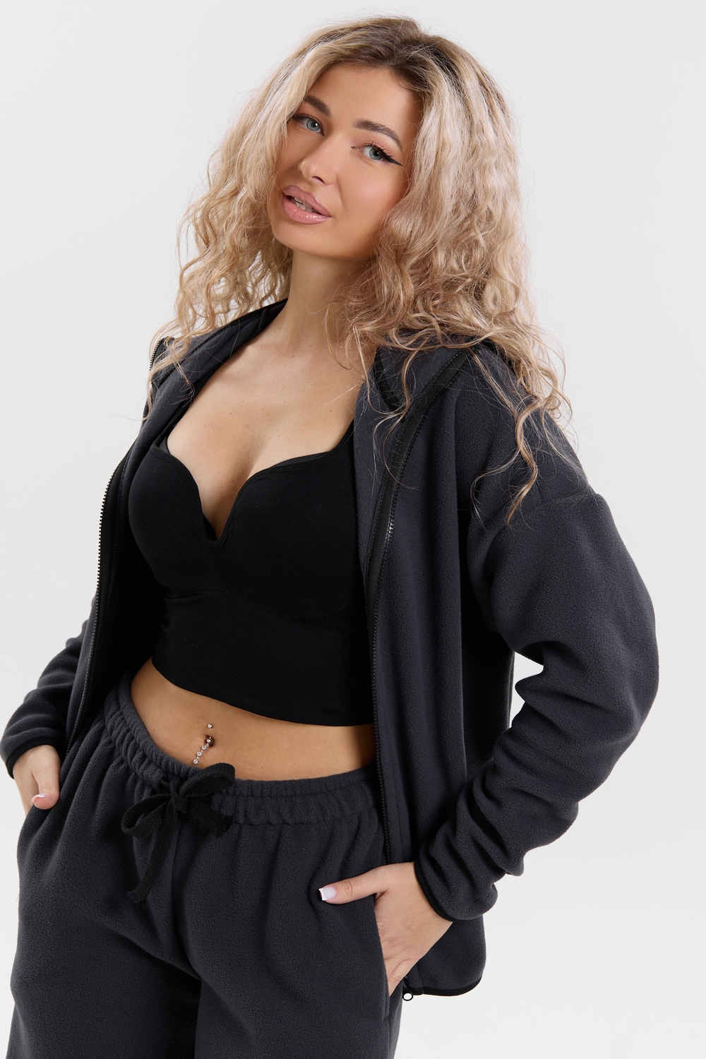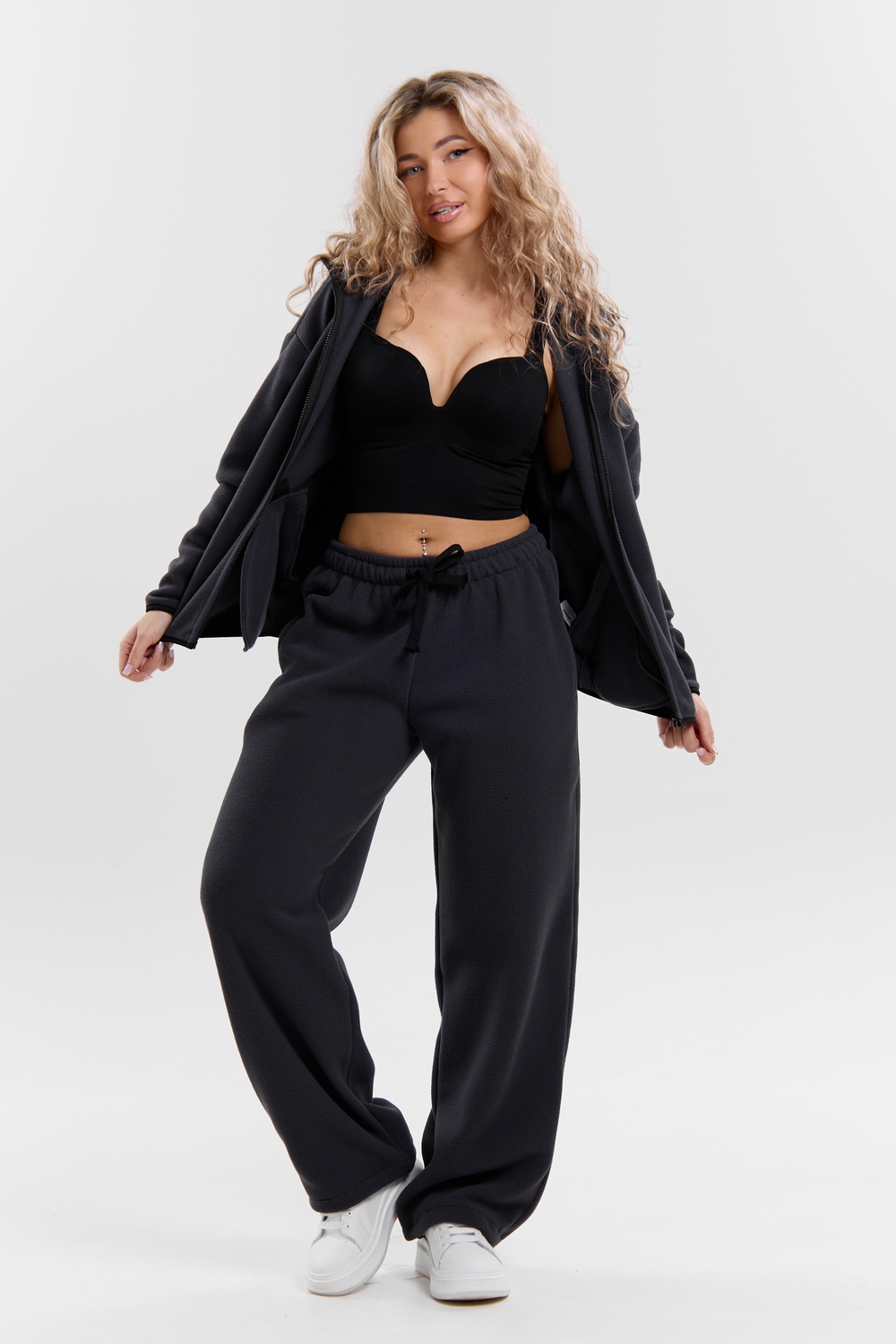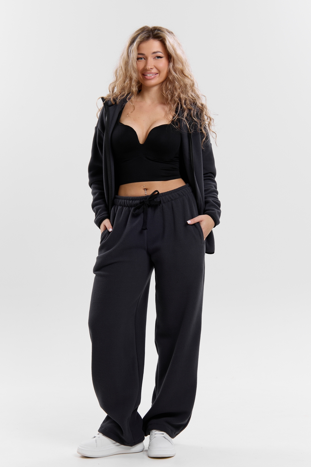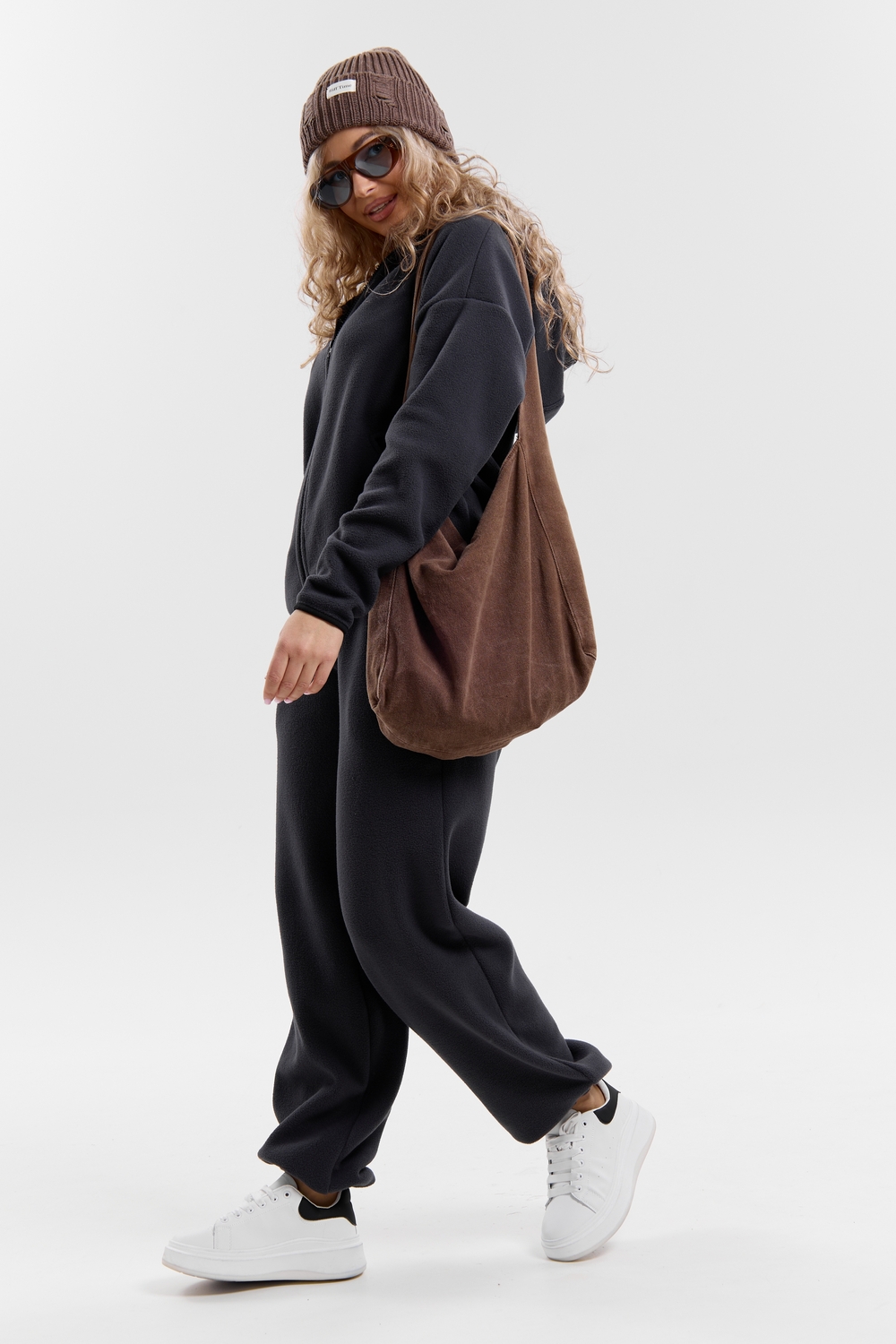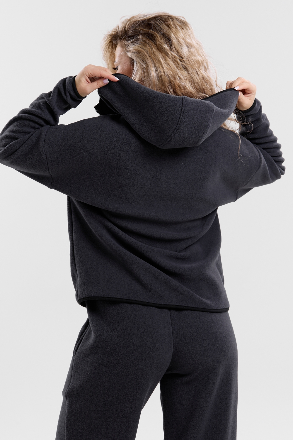 Флисовый костюм на молнии станет незаменимой вещью в вашем гардеробе. Костюм выполнен из плотной, мягкой ткани , что делает его очень теплым и приятным к телу. Благодаря высокому вороту, а также комфортному капюшону, надежно защитит ваше горло от прохлады в любое время года – будь то осень, весна, зима или прохладное лето. Качественная молния добавляет стильный акцент, а удобный замок обеспечивает легкое надевание и снятие. Резинка на поясе обеспечивает идеальную посадку и комфорт, брюки мягко облегают талию, не сдавливая и не сползая. Шнур на поясе добавляет не только стильный акцент, но и даёт возможность индивидуально регулировать посадку. Резинки на манжетах фиксируют брючины, затягивая с помощью фиксатора, создавая аккуратный новый образ. Такой крой визуально вытягивает ноги и придаёт образу собранность. Свободный фасон багги гарантирует свободу движений и комфорт в течение всего дня. Прорезные боковые карманы - незаменимый элемент для удобства. Они не выпирают, не утяжеляют силуэт и в то же время добавляют практичности. В них можно удобно разместить разные мелочи- это маленькая деталь, которая делает модель ещё более функциональной. Флисовый костюм помогает создавать стильные образы. Его универсальный крой позволяет использовать его как повседневную одежду для прогулок, так и для дома. Модный фасон подойдет для женщин любого телосложения. Костюм представлен без яркого принта и рисунка, что делает его универсальной базой. Забудьте о зимних холодах – костюм подарит уют. Наш костюм с удобными большими прорезными карманами станет вашим спутником в создании спортивных или расслабленных аутфитов. Костюм на молнии с высоким воротником и капюшоном подойдут для создания модных образов в стиле кэжуал, спорт и спортшик. Используйте его как костюм для активного отдыха или как базовый лук на каждый день. Настоящий тренд сезона, который идеально впишется в ваш образ в любое время. Почувствуйте себя уютно в нашем плюшевом и стильном костюме. Ориентируясь по таблице замеров, обратите внимание, что замеры длины рукава проводились от точки основания шеи.