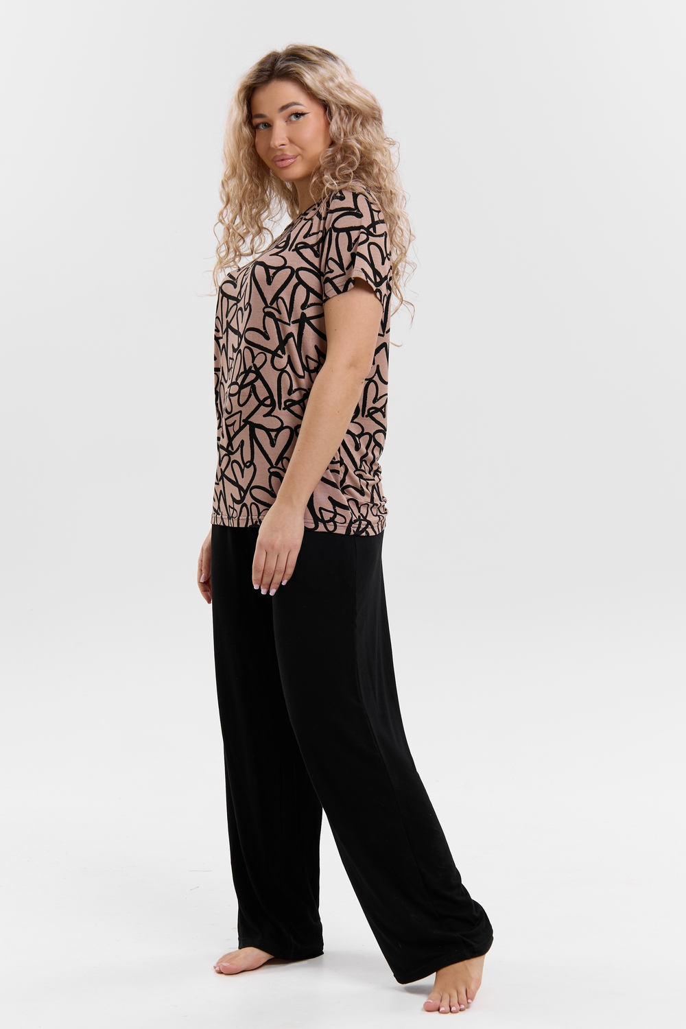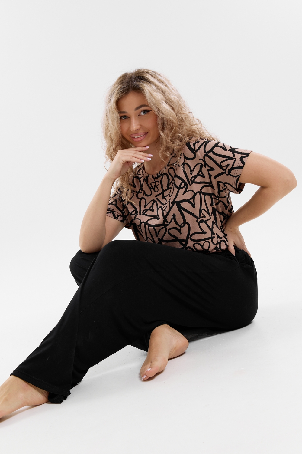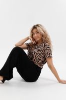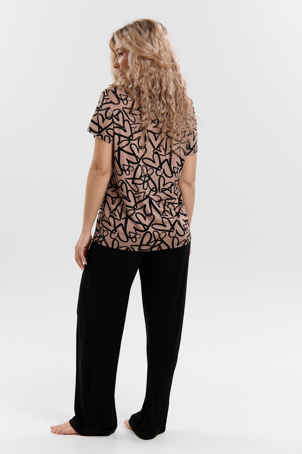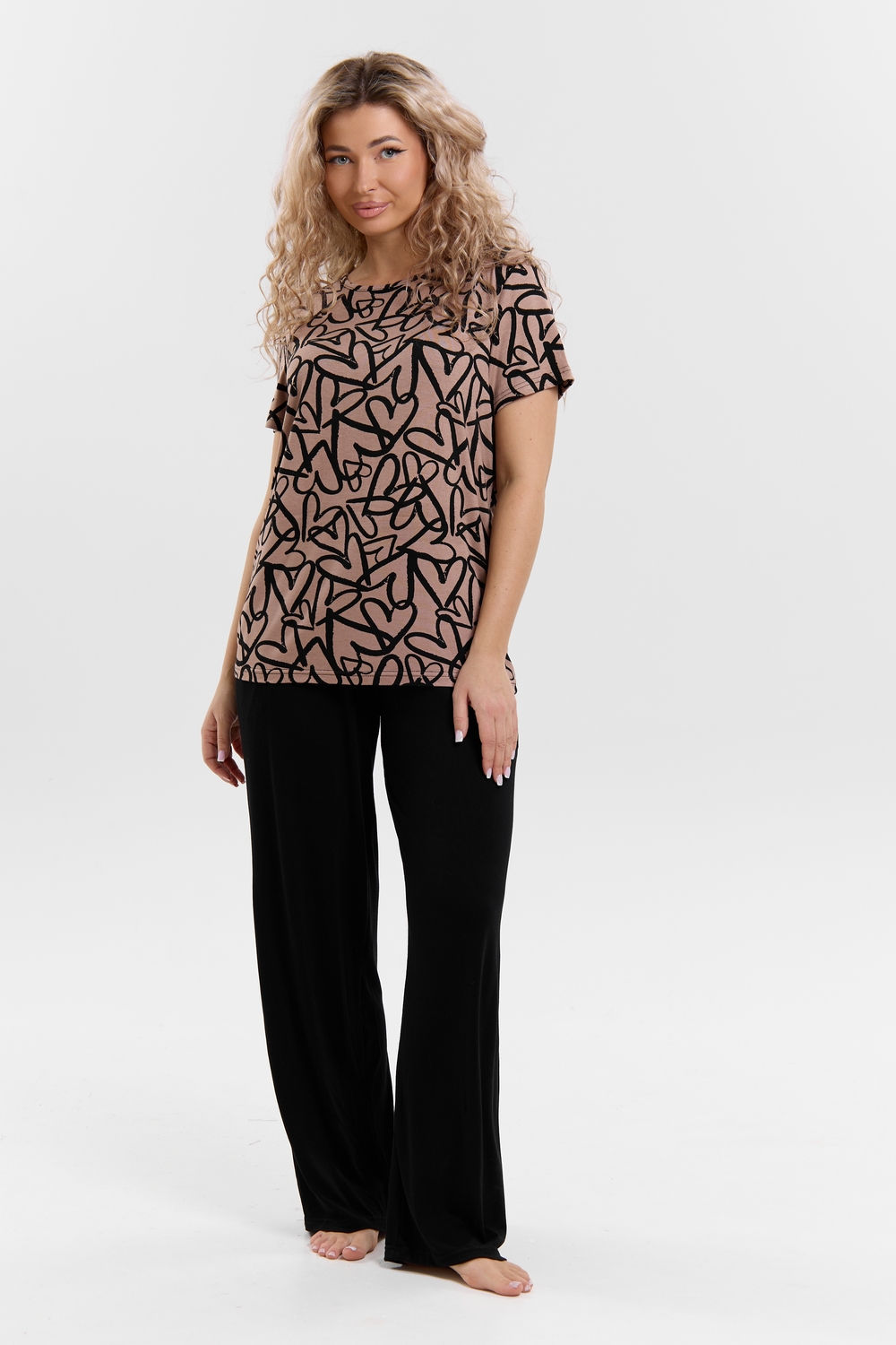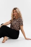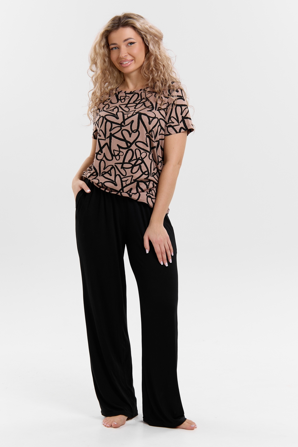 Стань воплощением уюта и стиля! Женский костюм из мягкой ткани — идеальное решение для домашнего отдыха, прогулок и даже лёгких занятий спортом. Яркий верх с оригинальным принтом добавляет настроения, а свободные однотонные брюки обеспечивают максимум комфорта. В таком костюме ты всегда будешь чувствовать себя уверенно и привлекательно — где бы ты ни была!