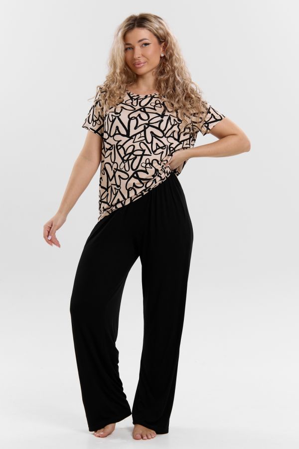 Стань воплощением уюта и стиля! Женский костюм из мягкой ткани — идеальное решение для домашнего отдыха, прогулок и даже лёгких занятий спортом. Яркий верх с оригинальным принтом добавляет настроения, а свободные однотонные брюки обеспечивают максимум комфорта. В таком костюме ты всегда будешь чувствовать себя уверенно и привлекательно — где бы ты ни была!