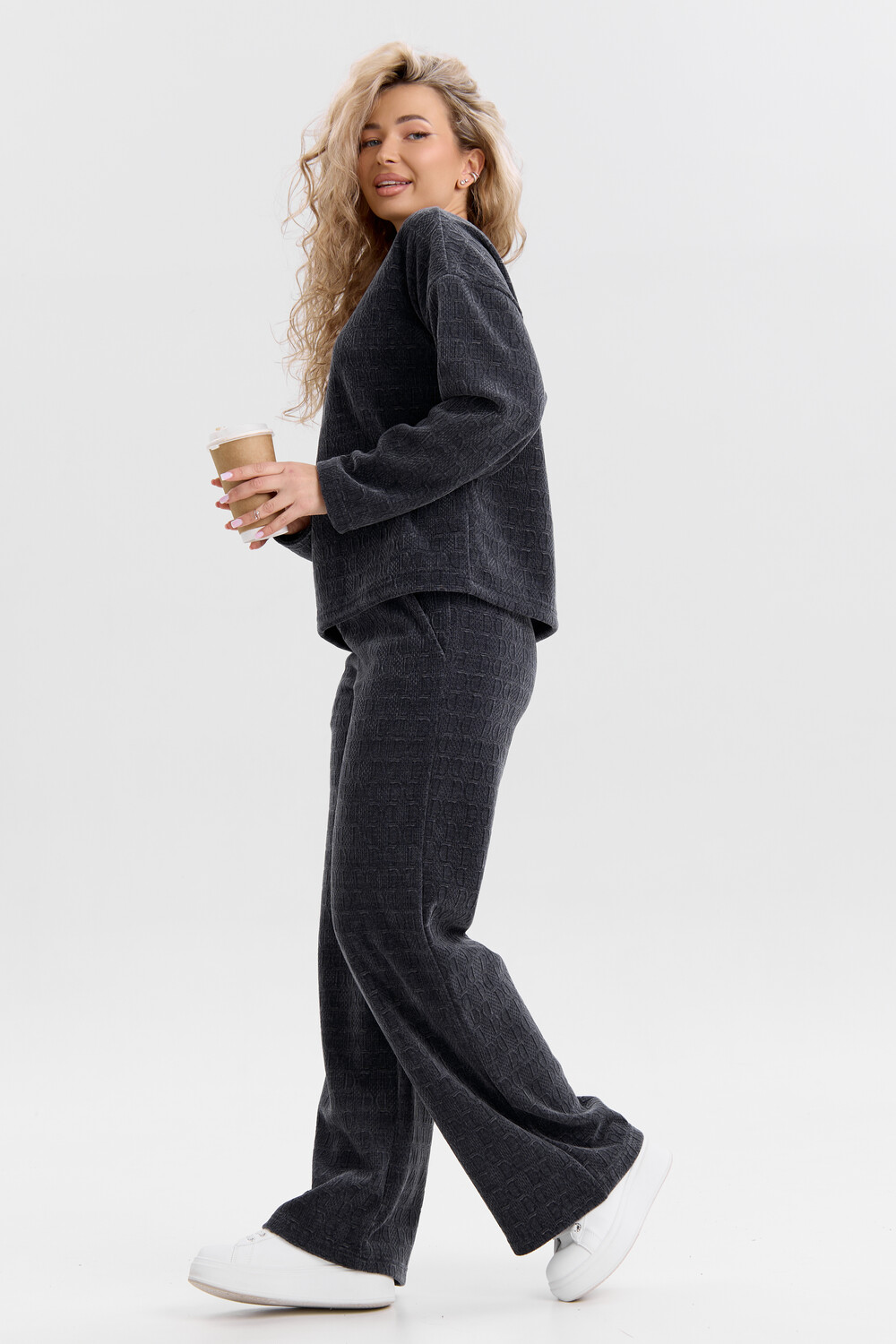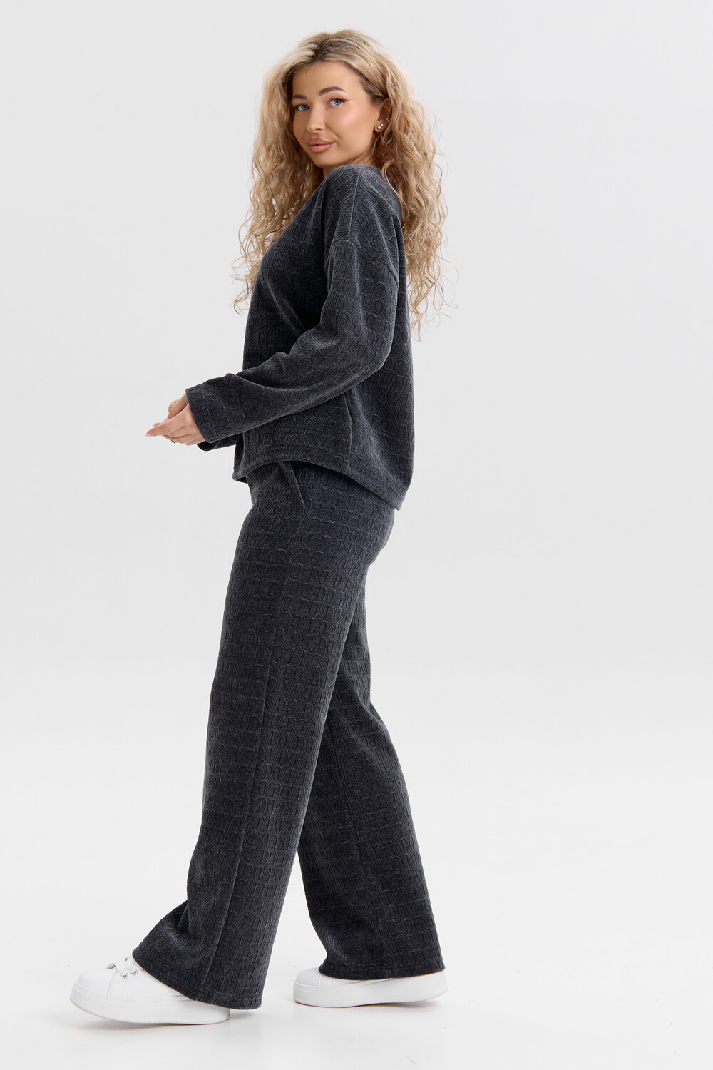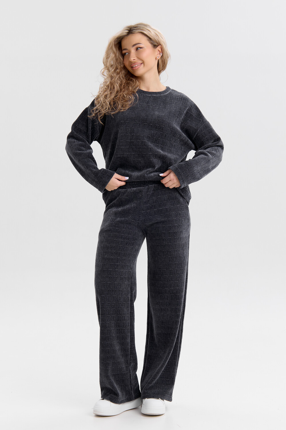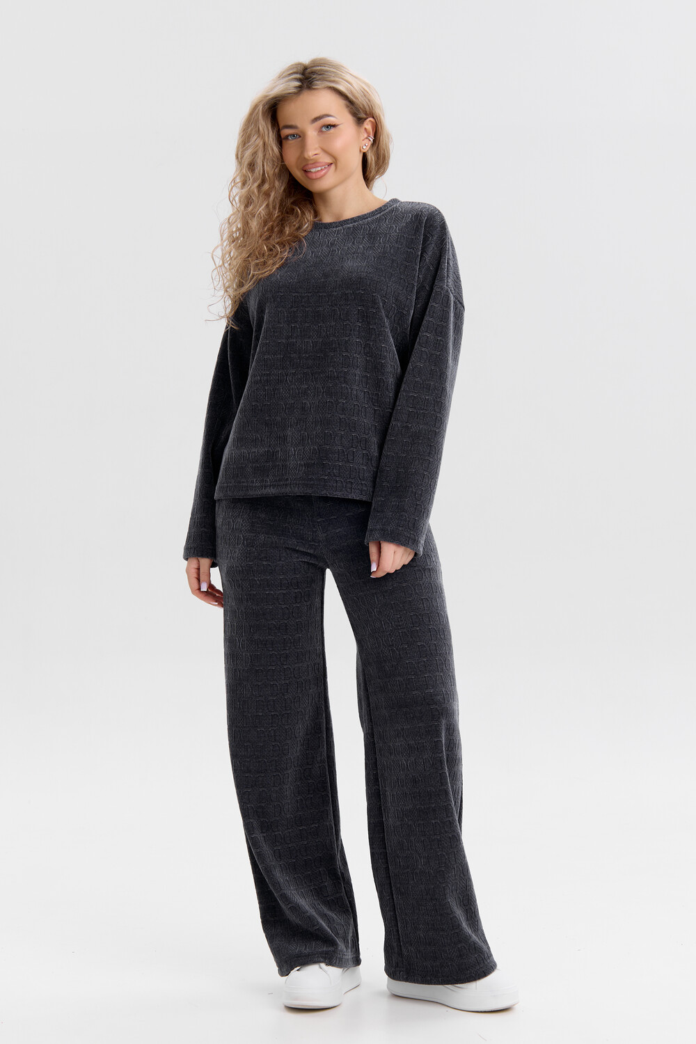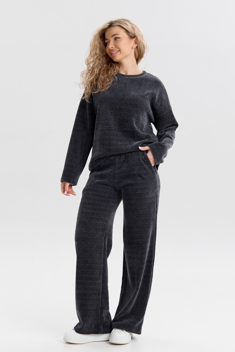 Женский костюм выполнен из жаккарда высокого качества. Жаккард - высокотехнологичный материал, прошедшей особую обработку. Ткань отличается высокими теплозащитными свойствами, при этом является дышащей. По своим характеристикам она не уступает шерстяным полотнам. И даже в сыром состоянии удерживает тепло у тела. Материал прочный, эластичный, влагостойкий. Воздухопроницаемая гигроскопичная ткань создает для тела комфортный микроклимат. Изделия из жаккарда легкие, не мнутся, не деформируются, не вытягиваються.В такой одежде удобно и комфортно. Эластичность материала позволяет легко двигаться. Костюм состоит из лонгслива и брюк. Лонг в стиле OVERSIZE ( одежда свободного кроя ) - это свобода самовыражения, позволяющая чувствовать себя комфортно и стильно одновременно. Горловина свитшота выполнена с обтачкой. Линия плеча спущена, длинный рукав. Женские стильные брюки - трубы представлены с вместительными боковыми карманами. Пояс выполнен на специализированной круговой поясной машине, что делает швы ровными и качественными. А профессиональные закрепки на поясе, придают изделию законченный вид и качество. Свободный крой прекрасно будет смотреться на дамах с любыми формами. Костюм такого плана представлен в широкой размерной сетке, что позволяет выбрать его как девушке, так и женщине. Костюм модных расцветок, будет удачным выбором для поездок в отпуск, на пикник, для школы, для активного отдыха и прогулок по городу. Будет гармонично сочетаться как с кроссовками, так и с ботинками. Используя эту модель в качестве домашнего костюма, Вы поймёте, что это именно тот самый идеальный вариант, в котором будете себя чувствовать удобно, комфортно и современно. Костюм с брюками - это настоящая находка для тех, кто ценит свою индивидуальность! Уход: -температура воды не более 40°С (лучше 30°С); -допустима ручная и автоматическая стирка; -Одежду не выкручивают, а развешивают на плечики, давая воде стечь. -сушка в стиральной машине недопустима; Ориентируясь по таблице замеров, обратите внимание, что замеры длины рукава проводились от точки основания шеи.