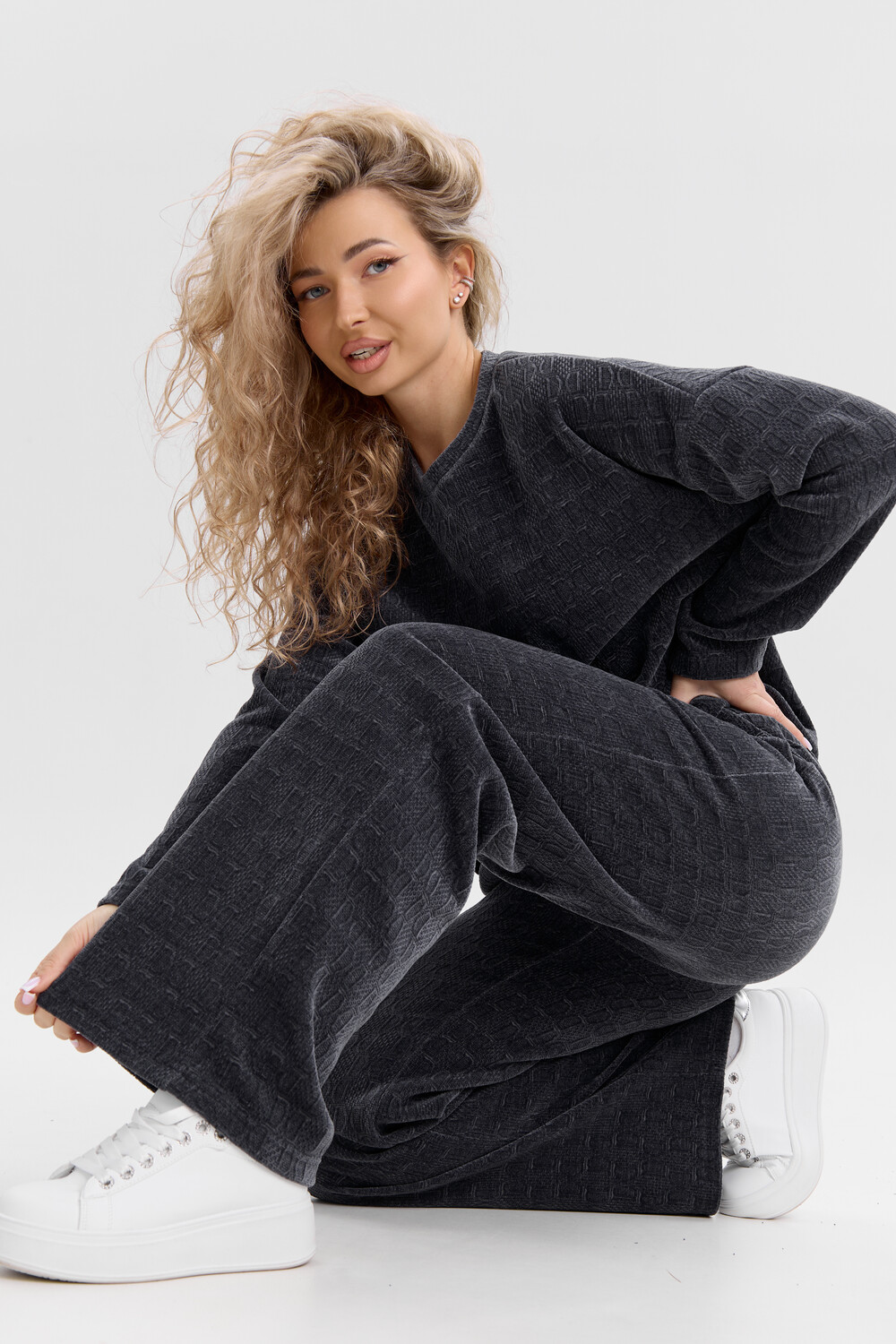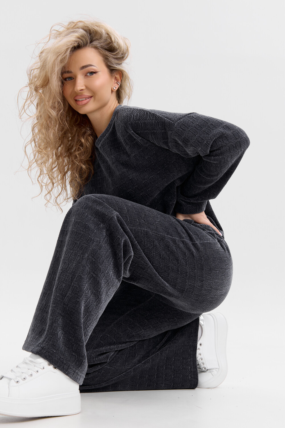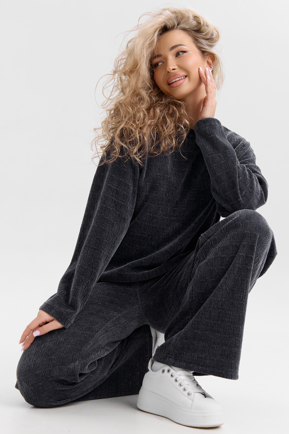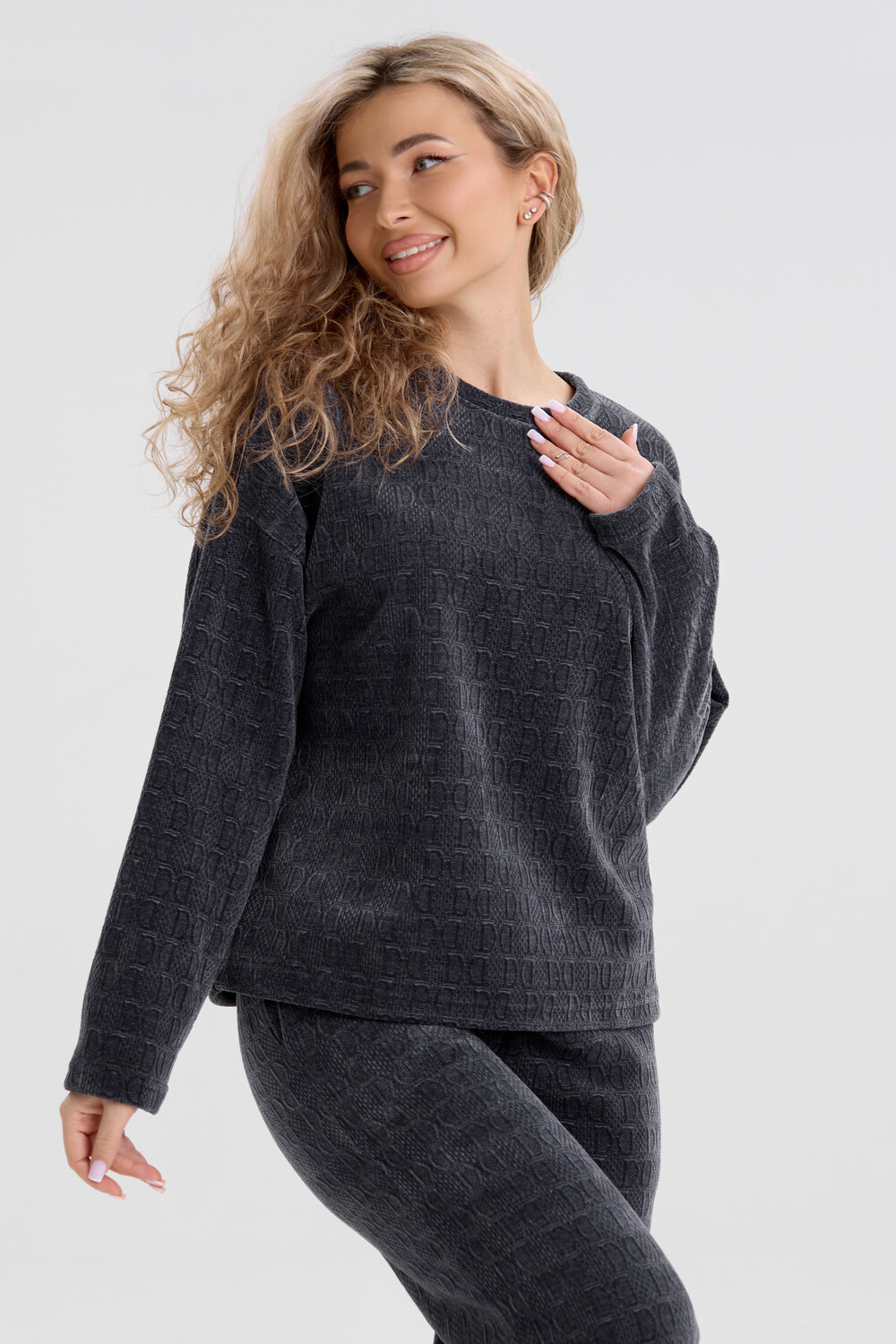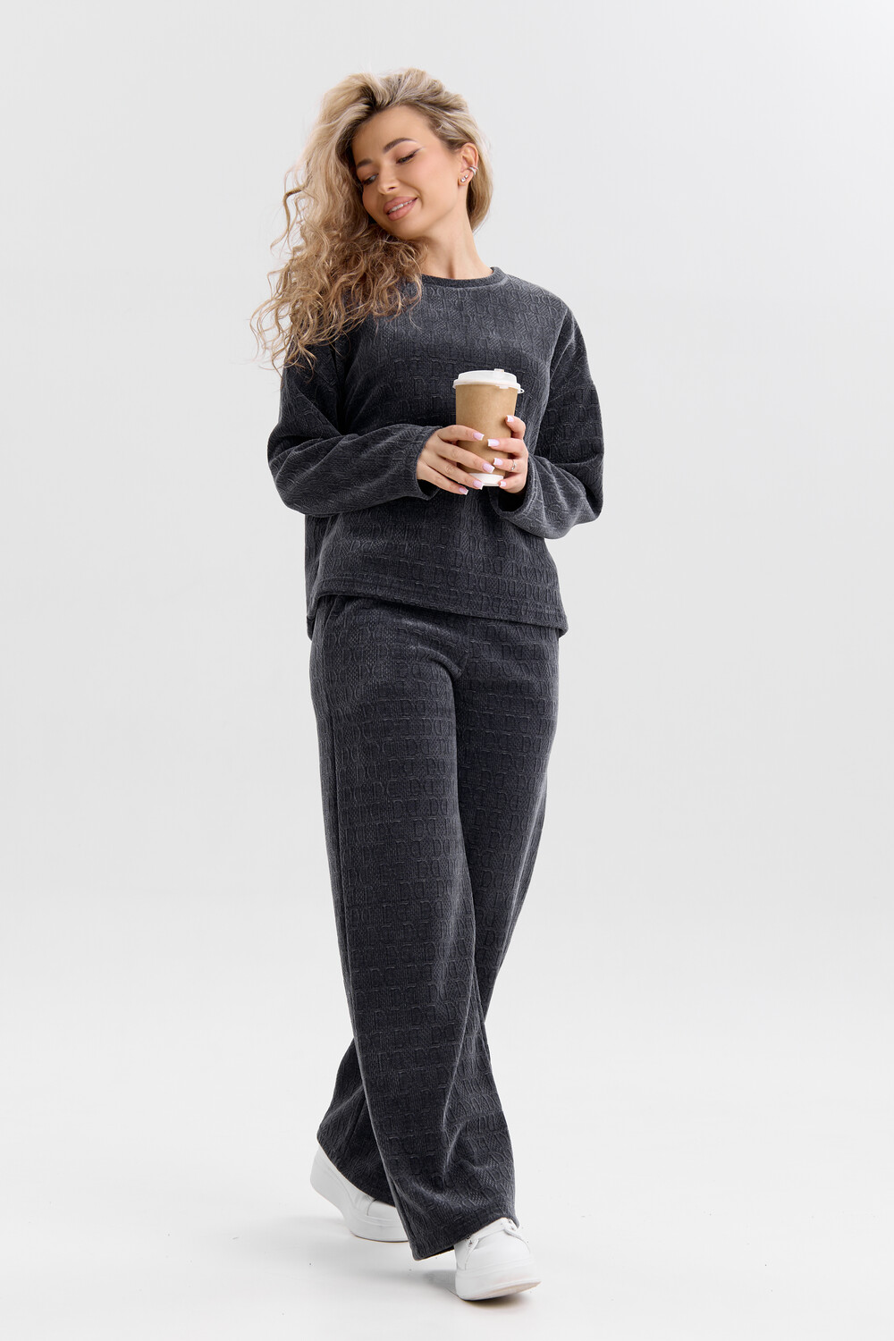Женский костюм выполнен из жаккарда высокого качества. Жаккард - высокотехнологичный материал, прошедшей особую обработку. Ткань отличается высокими теплозащитными свойствами, при этом является дышащей. По своим характеристикам она не уступает шерстяным полотнам. И даже в сыром состоянии удерживает тепло у тела. Материал прочный, эластичный, влагостойкий. Воздухопроницаемая гигроскопичная ткань создает для тела комфортный микроклимат. Изделия из жаккарда легкие, не мнутся, не деформируются, не вытягиваються.В такой одежде удобно и комфортно. Эластичность материала позволяет легко двигаться. Костюм состоит из лонгслива и брюк. Лонг в стиле OVERSIZE ( одежда свободного кроя ) - это свобода самовыражения, позволяющая чувствовать себя комфортно и стильно одновременно. Горловина свитшота выполнена с обтачкой. Линия плеча спущена, длинный рукав. Женские стильные брюки - трубы представлены с вместительными боковыми карманами. Пояс выполнен на специализированной круговой поясной машине, что делает швы ровными и качественными. А профессиональные закрепки на поясе, придают изделию законченный вид и качество. Свободный крой прекрасно будет смотреться на дамах с любыми формами. Костюм такого плана представлен в широкой размерной сетке, что позволяет выбрать его как девушке, так и женщине. Костюм модных расцветок, будет удачным выбором для поездок в отпуск, на пикник, для школы, для активного отдыха и прогулок по городу. Будет гармонично сочетаться как с кроссовками, так и с ботинками. Используя эту модель в качестве домашнего костюма, Вы поймёте, что это именно тот самый идеальный вариант, в котором будете себя чувствовать удобно, комфортно и современно. Костюм с брюками - это настоящая находка для тех, кто ценит свою индивидуальность! Уход: -температура воды не более 40°С (лучше 30°С); -допустима ручная и автоматическая стирка; -Одежду не выкручивают, а развешивают на плечики, давая воде стечь. -сушка в стиральной машине недопустима; Ориентируясь по таблице замеров, обратите внимание, что замеры длины рукава проводились от точки основания шеи.
