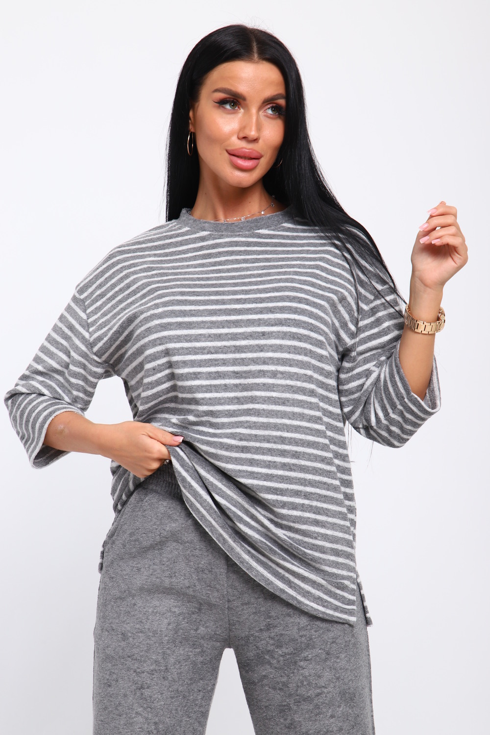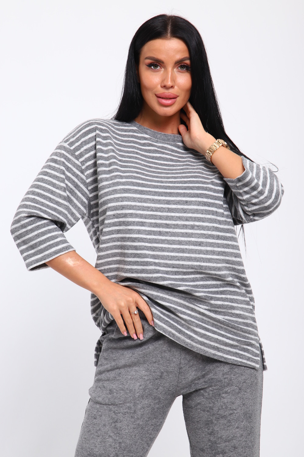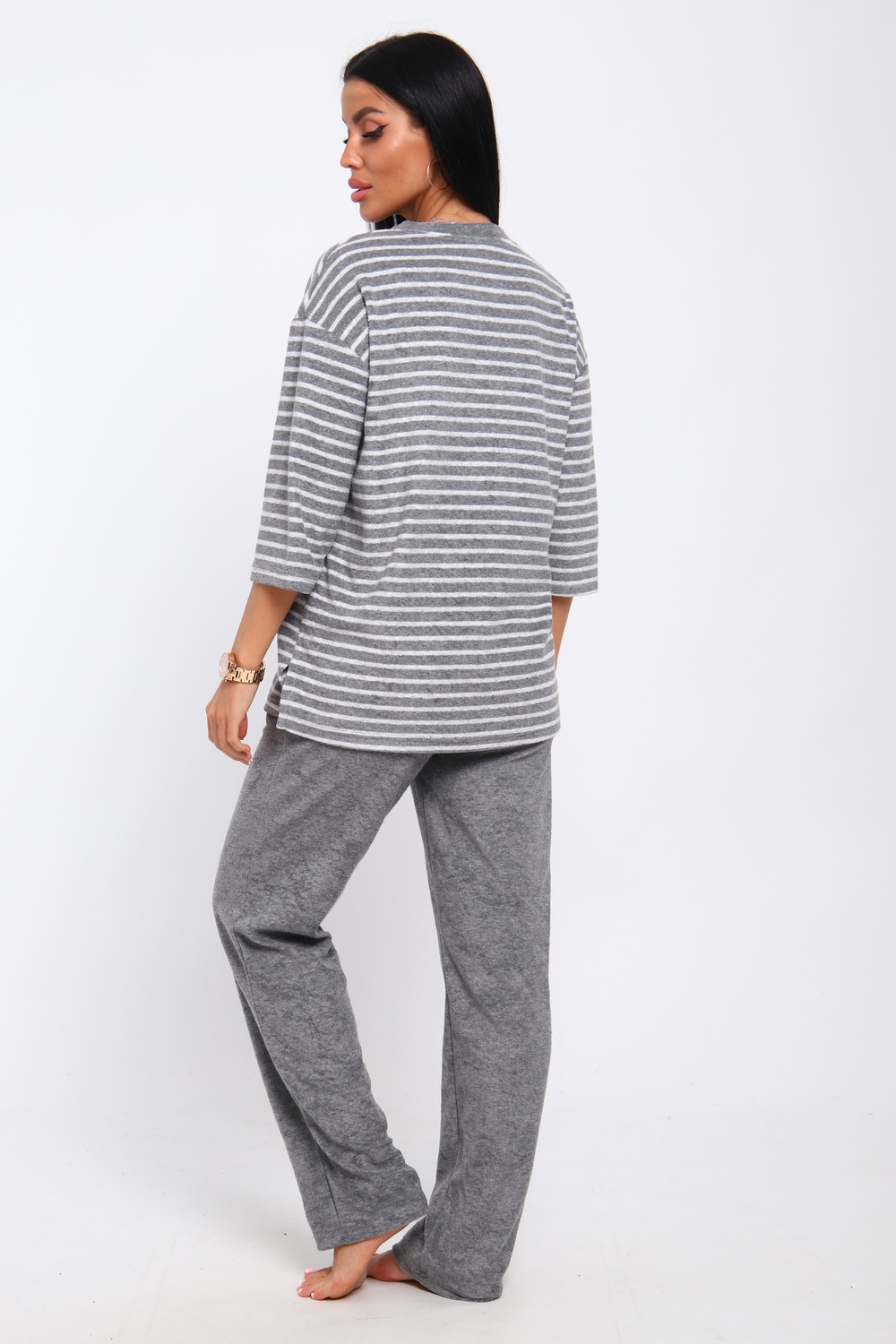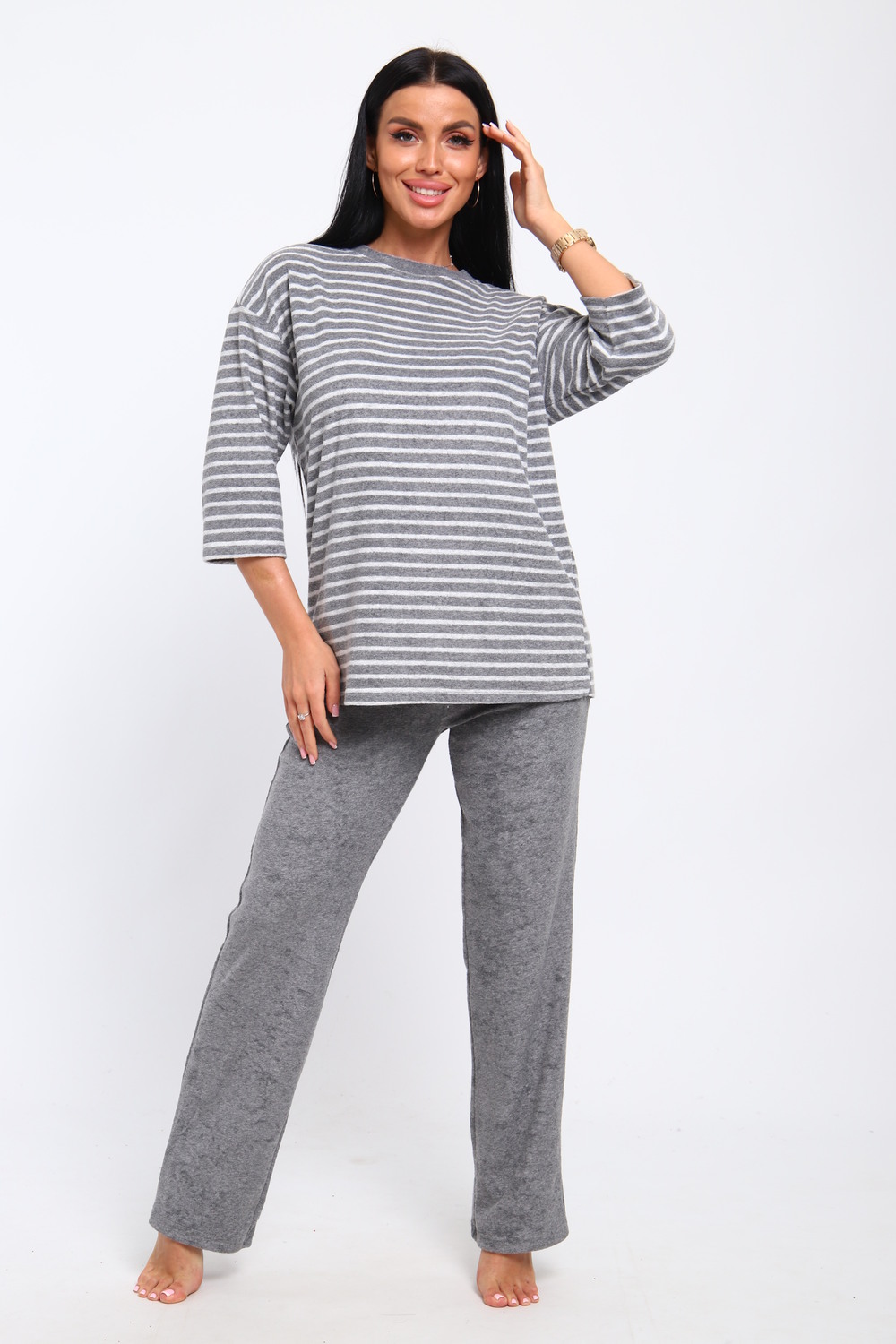 Костюм женский больших размеров, который станет идеальным выбором для уютных вечеров дома и активных дней. Этот домашний махровый костюм, выполненный из высококачественной приятной ткани, надежно согреет вас в холодную погоду. Мягкая махра дарит невероятный комфорт, а свободный крой позволяет чувствовать себя уверенно, независимо от ваших занятий: будь то отдых, прогулка с друзьями или поход в магазин. Стильный зимний костюм включает лонгслив оверсайз в полоску с округлым вырезом и брюки, создавая гармоничный и универсальный наряд. Широкая размерная сетка, начиная от 58 до 70, делает этот комплект доступным для девушек и женщин любого размера. А оригинальный принт полоска и базовый свитшот, легко комбинирующийся с другими вещами, добавляют вашему образу модный акцент. Махровый костюм легко заменит ночную пижаму зимой. Не переживайте за внешний вид: костюм сохранит свою форму даже после многократных стирок, а дышащая ткань предотвращает перегрев. Этот комплект двойка отлично подходит как для беременных и кормящих женщин, так и для занятий спортом, ведь он свободно облегает фигуру и не сковывает движений. Костюм женский теплый украсит вас на пижамной вечеринке или семейной фотосессии. Пижама махровая в полоску - милый подарок для жены или дочери на Новый год или 8 марта. Подарите себе или своим близким этот уютный костюм, который обеспечит комфорт в любое время года — весной, летом, осенью и зимой. Будьте стильными и уверенными в своих нарядах в каждой ситуации! Состав костюма: 80% хлопок, 20% полиэстер.