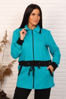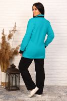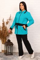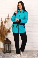 Спортивный женский костюм, состоит из кофты и брюк. Брюки прямого силуэта на резинке. Кофта удлиненная на молнии, на кулиске со шнурком. Два боковых кармана. Рукав длинный на манжете.