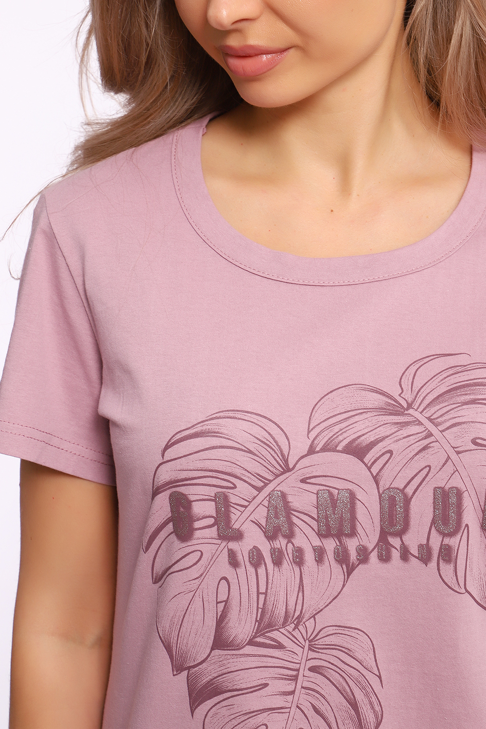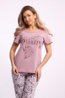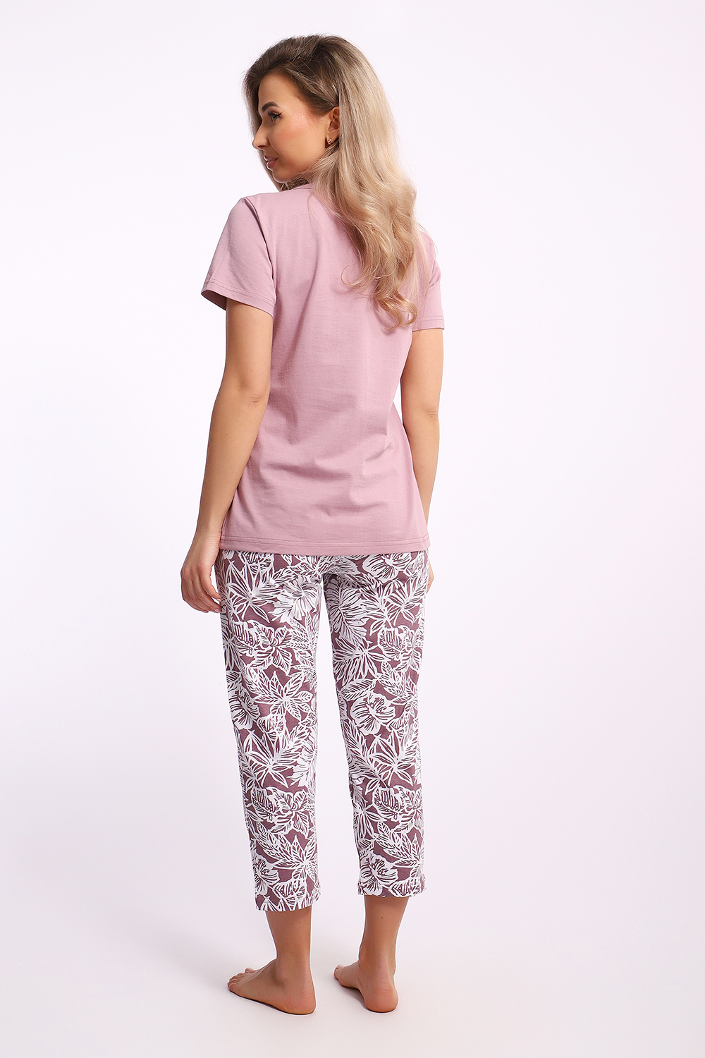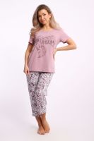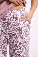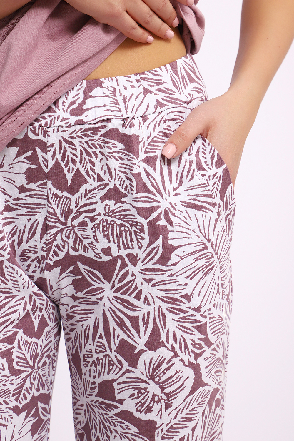 Костюм футболка+ капри. Изумительно нежное сочетание цвета какао на футболке и растительного рисунка брюк. Натуральный хлопок.