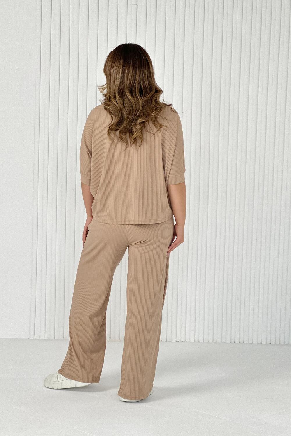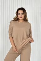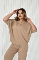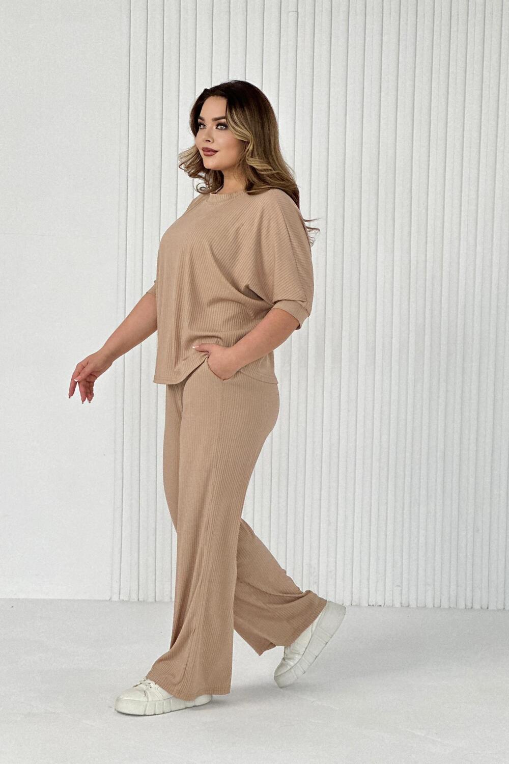 Стильный женский трикотажный костюм из ткани лапши. Комплект состоит из футболки - летучая мышь и брюк широкого кроя с поясом на резинке и карманами по бокам. Модель подойдет для вечернего и повседневного образа, отлично сочетается как с кроссовками, так и с туфлями. Костюм отлично подходит для прогулки, выезда на природу или похода в ресторан. Удобный свободный вверх отличный вариант на лето, приятные к телу штаты удобны и практичны. Длина рукава указана от горловины, а футболка костюма достаточно свободная, поэтому подойдет на любую фигуру. Важно! Подбирая для себя нужный размер, смотрите на замеры брюк.?