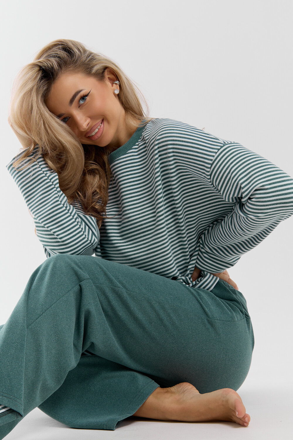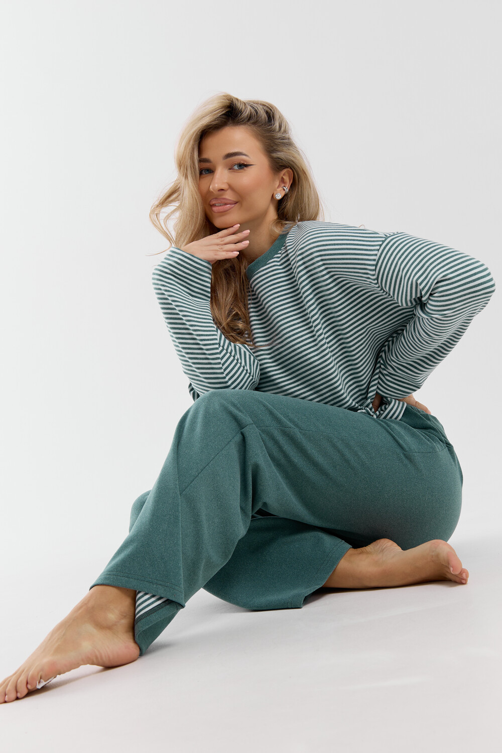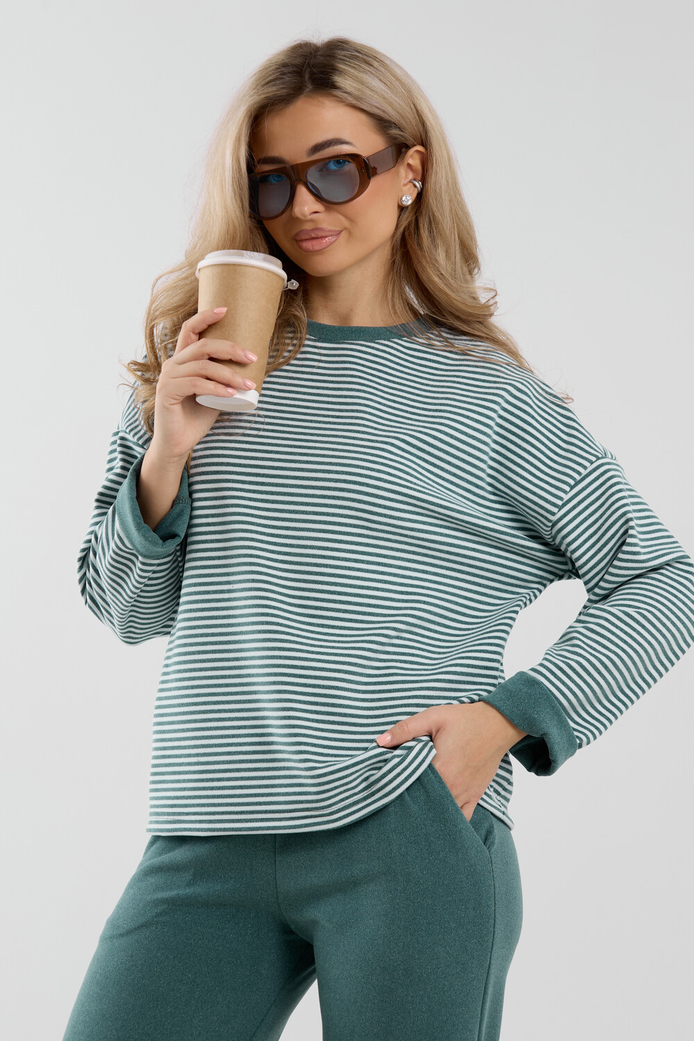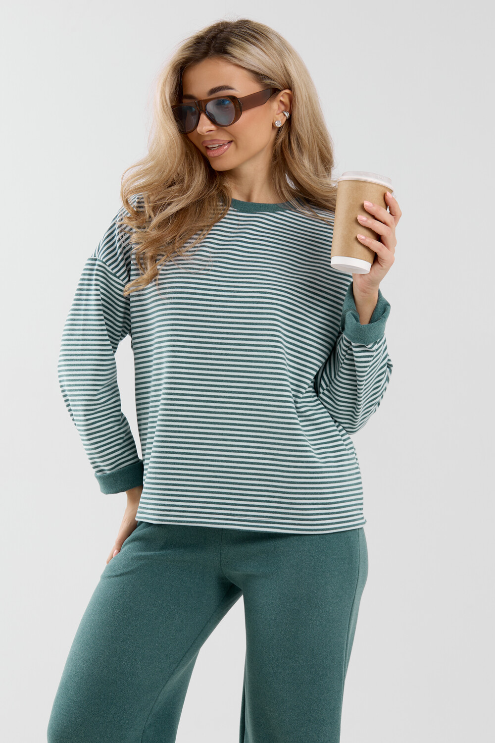 Женский костюм выполнен из двухстороннего флис полара высокого качества. Флис полар - высокотехнологичный материал, прошедшей особую обработку. Ткань отличается высокими теплозащитными свойствами, при этом является дышащей. По своим характеристикам она не уступает шерстяным полотнам. И даже в сыром состоянии удерживает тепло у тела. Материал прочный, эластичный, влагостойкий. Воздухопроницаемая гигроскопичная ткань создает для тела комфортный микроклимат. Материал гипоаллергенный, подходит для изготовления одежды детям, в том числе новорожденным. Изделия из флиса легкие, не мнутся, не деформируются, не вытягиваються.В такой одежде удобно и комфортно. Эластичность материала позволяет легко двигаться. Костюм состоит из лонгслива и брюк. Лонг в стиле OVERSIZE ( одежда свободного кроя ) - это свобода самовыражения, позволяющая чувствовать себя комфортно и стильно одновременно. Горловина футболки выполнена с обтачкой. Линия плеча спущена, длинный рукав. Женские стильные брюки - трубы представлены с вместительными боковыми карманами. Пояс выполнен на специализированной круговой поясной машине, что делает швы ровными и качественными. А профессиональные закрепки на поясе, придают изделию законченный вид и качество. Свободный крой прекрасно будет смотреться на дамах с любыми формами. Костюм такого плана представлен в широкой размерной сетке, что позволяет выбрать его как девушке, так и женщине. Костюм модных расцветок с полосой, будет удачным выбором для поездок в отпуск, на пикник, для школы, для активного отдыха и прогулок по городу. Будет гармонично сочетаться как с кроссовками, так и с ботинками. Используя эту модель в качестве домашнего костюма, Вы поймёте, что это именно тот самый идеальный вариант, в котором будете себя чувствовать удобно, комфортно и современно. Костюм с брюками - это настоящая находка для тех, кто ценит свою индивидуальность! Уход: -температура воды не более 40°С (лучше 30°С); -допустима ручная и автоматическая стирка; -Одежду не выкручивают, а развешивают на плечики, давая воде стечь. -сушка в стиральной машине недопустима; Ориентируясь по таблице замеров, обратите внимание, что замеры длины рукава проводились от точки основания шеи.
