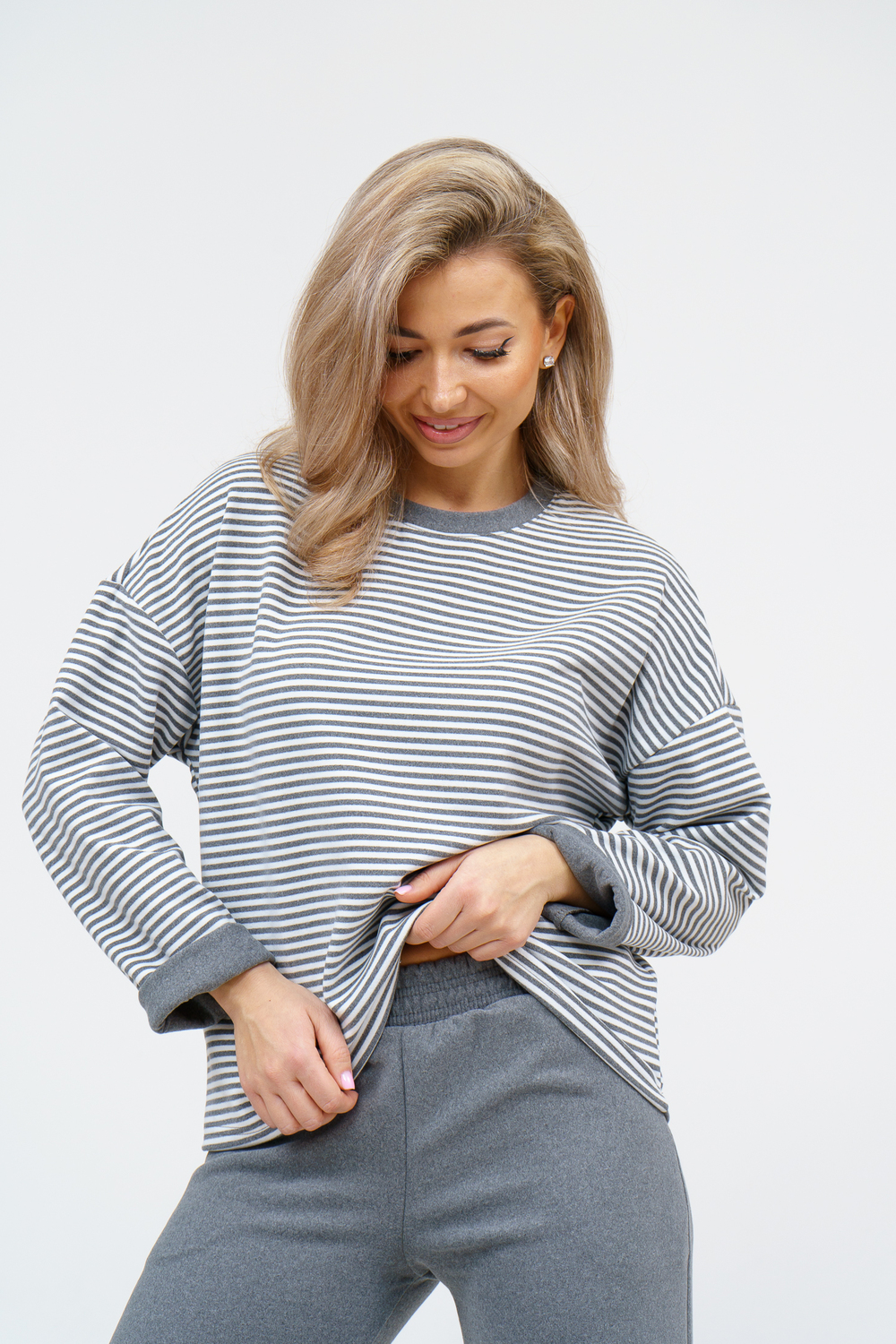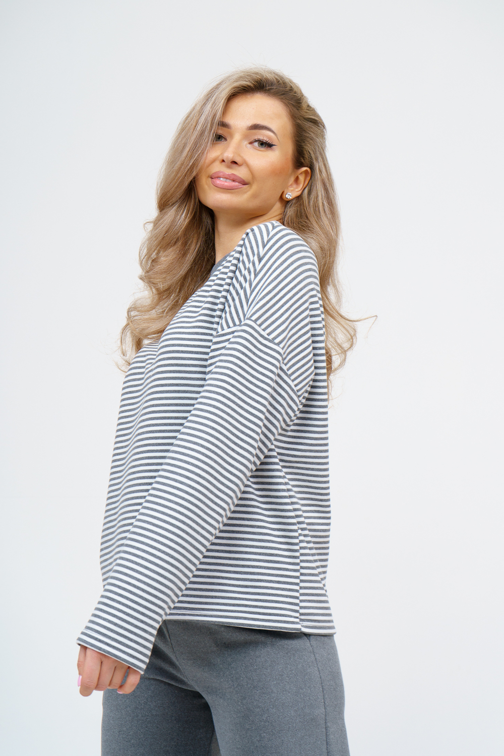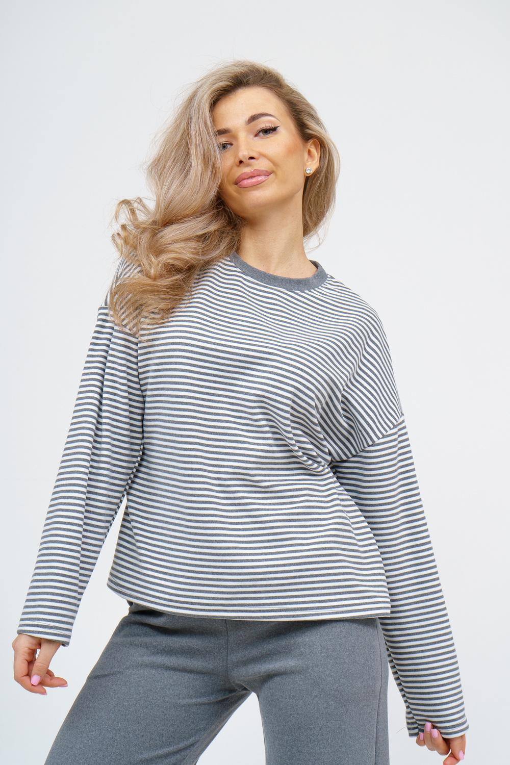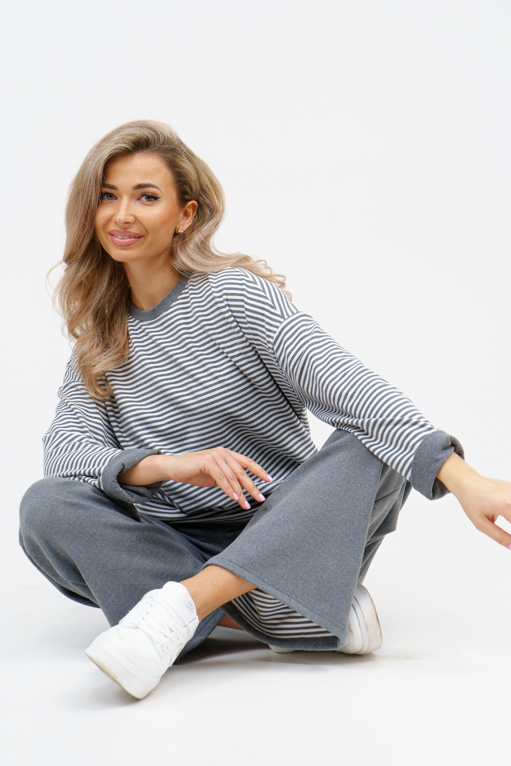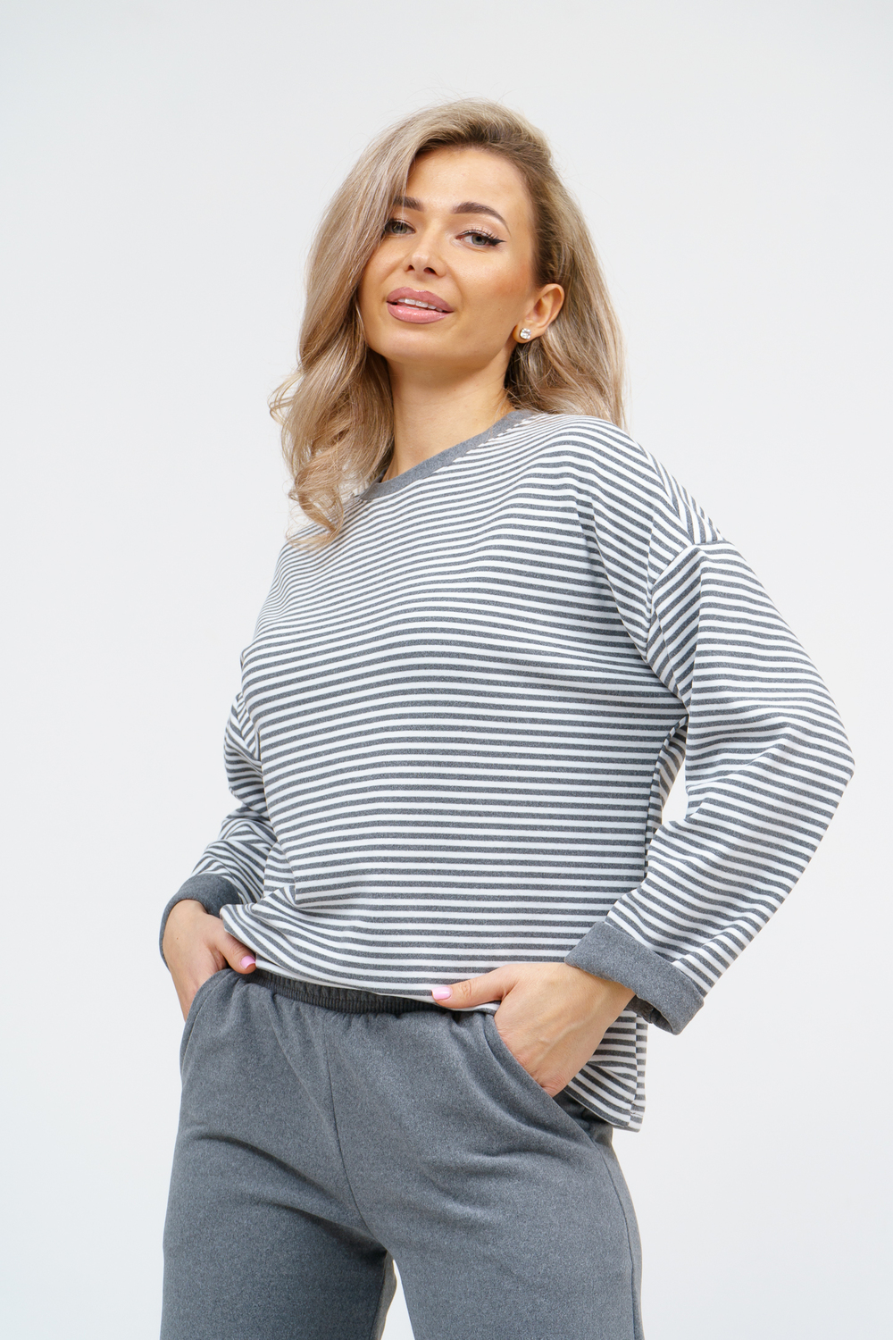 Женский костюм выполнен из двухстороннего флис полара высокого качества. Флис полар - высокотехнологичный материал, прошедшей особую обработку. Ткань отличается высокими теплозащитными свойствами, при этом является дышащей. По своим характеристикам она не уступает шерстяным полотнам. И даже в сыром состоянии удерживает тепло у тела. Материал прочный, эластичный, влагостойкий. Воздухопроницаемая гигроскопичная ткань создает для тела комфортный микроклимат. Материал гипоаллергенный, подходит для изготовления одежды детям, в том числе новорожденным. Изделия из флиса легкие, не мнутся, не деформируются, не вытягиваються.В такой одежде удобно и комфортно. Эластичность материала позволяет легко двигаться. Костюм состоит из лонгслива и брюк. Лонг в стиле OVERSIZE ( одежда свободного кроя ) - это свобода самовыражения, позволяющая чувствовать себя комфортно и стильно одновременно. Горловина футболки выполнена с обтачкой. Линия плеча спущена, длинный рукав. Женские стильные брюки - трубы представлены с вместительными боковыми карманами. Пояс выполнен на специализированной круговой поясной машине, что делает швы ровными и качественными. А профессиональные закрепки на поясе, придают изделию законченный вид и качество. Свободный крой прекрасно будет смотреться на дамах с любыми формами. Костюм такого плана представлен в широкой размерной сетке, что позволяет выбрать его как девушке, так и женщине. Костюм модных расцветок с полосой, будет удачным выбором для поездок в отпуск, на пикник, для школы, для активного отдыха и прогулок по городу. Будет гармонично сочетаться как с кроссовками, так и с ботинками. Используя эту модель в качестве домашнего костюма, Вы поймёте, что это именно тот самый идеальный вариант, в котором будете себя чувствовать удобно, комфортно и современно. Костюм с брюками - это настоящая находка для тех, кто ценит свою индивидуальность! Уход: -температура воды не более 40°С (лучше 30°С); -допустима ручная и автоматическая стирка; -Одежду не выкручивают, а развешивают на плечики, давая воде стечь. -сушка в стиральной машине недопустима; Ориентируясь по таблице замеров, обратите внимание, что замеры длины рукава проводились от точки основания шеи.