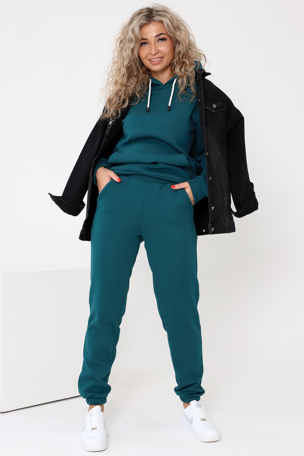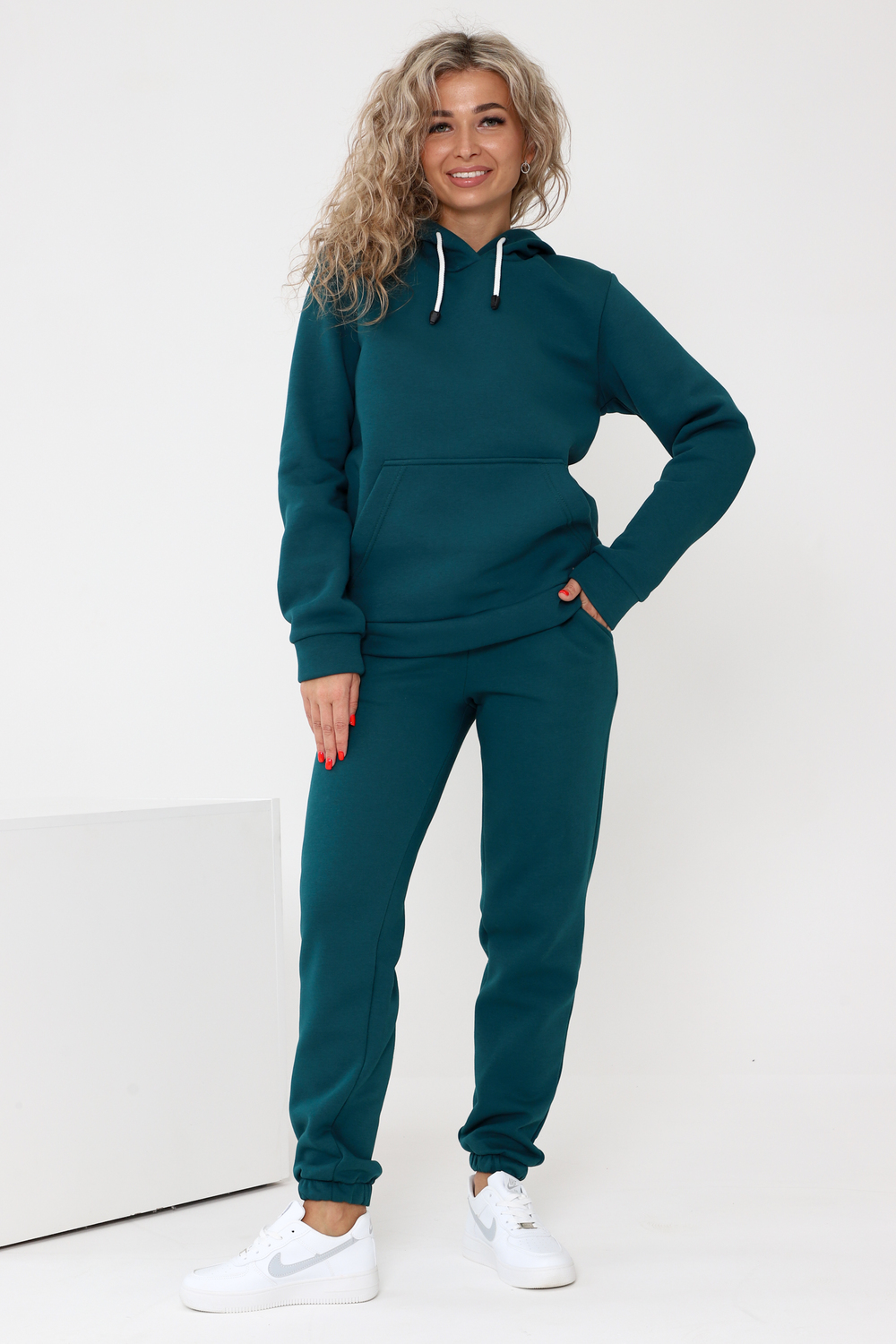 Теплый женский костюм толстовка + брюки. Толстовка с капюшоном, на животе карманы, рукава и низ отделаны манжетами. Брюки с карманами, внизу с манжетами. Несколько вариантов расцветки. Размеры от 44 до 58.