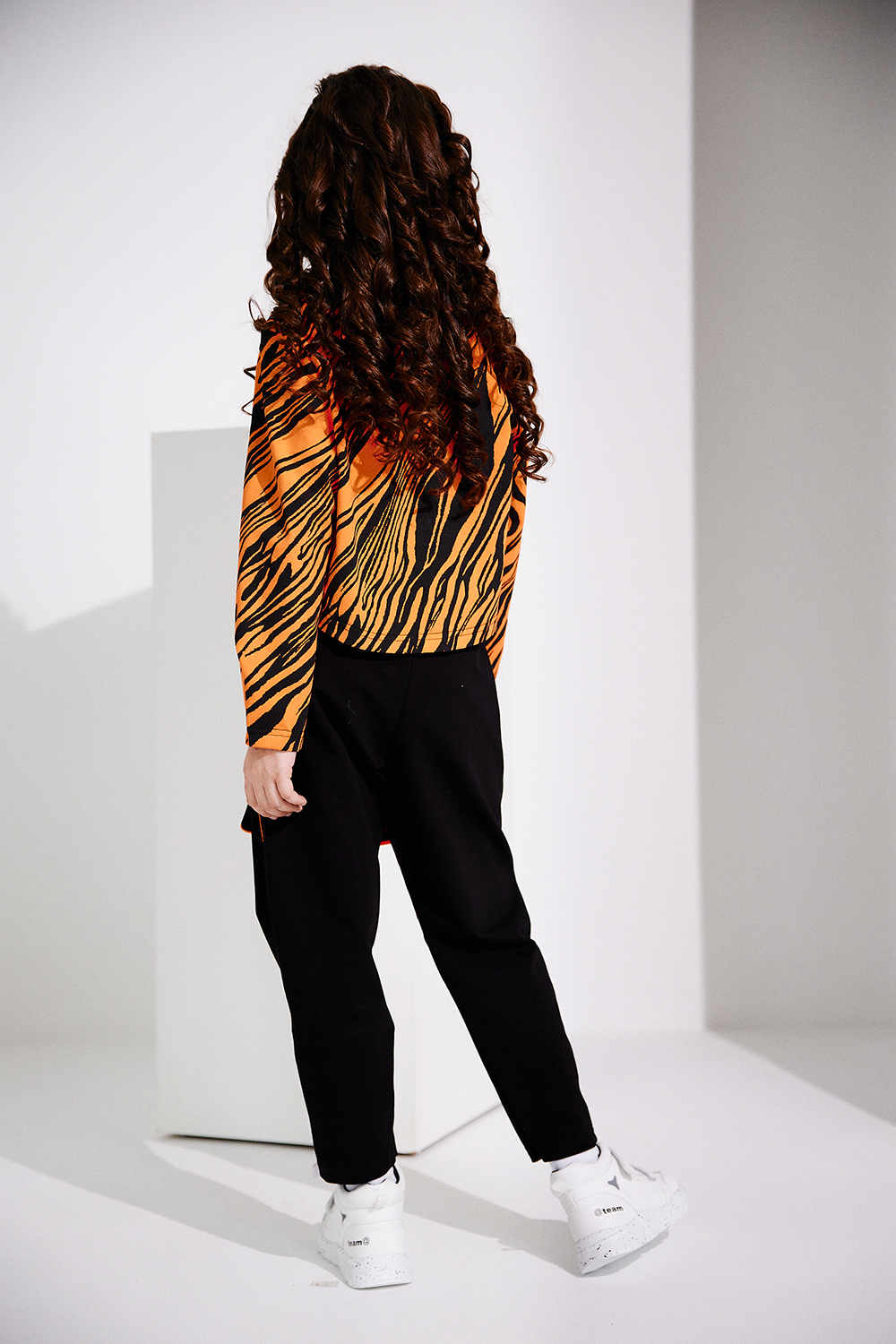 Стильный детский спортивный костюм для девочек(весна-лето), состоит из майки, лонгслива и брюк (джоггеров). Лонгслив укороченный свободного кроя с длинными рукавами, дополняется удлинённой майкой с ярким печатным принтом. Штаны - джоггеры свободного кроя на широком эластичном поясе. На передних половинках брюк накладные карманы с клапанами. Боковые швы и низ клапанов оформлены ярким кантом. Комфортный костюм, удобен в носке и подойдет на каждый день для повседневного использования, активного отдыха и спорта. Рекомендована деликатная стирка не выше 30 градусов. Состав по тканям: футер 2-х нитка с лайкрой хлопок 72%, ПЭ 20%, эластан 8%, кашкорсе: вискоза 92% лайкра 8%; кулирка с лайкрой: хлопок 95% лайкра 5%