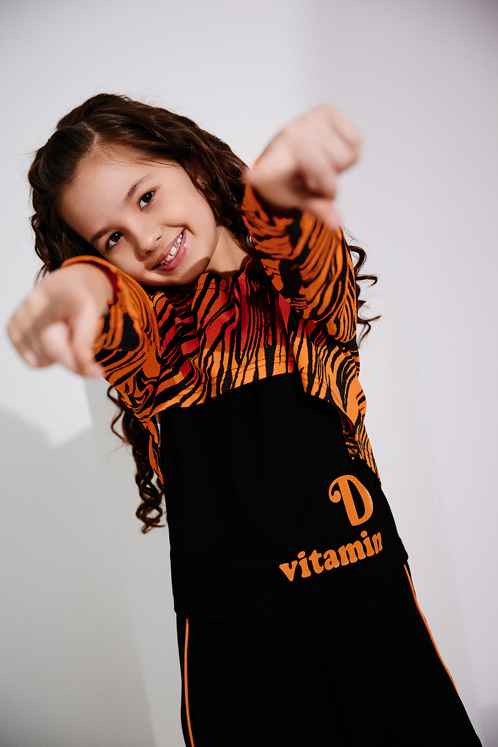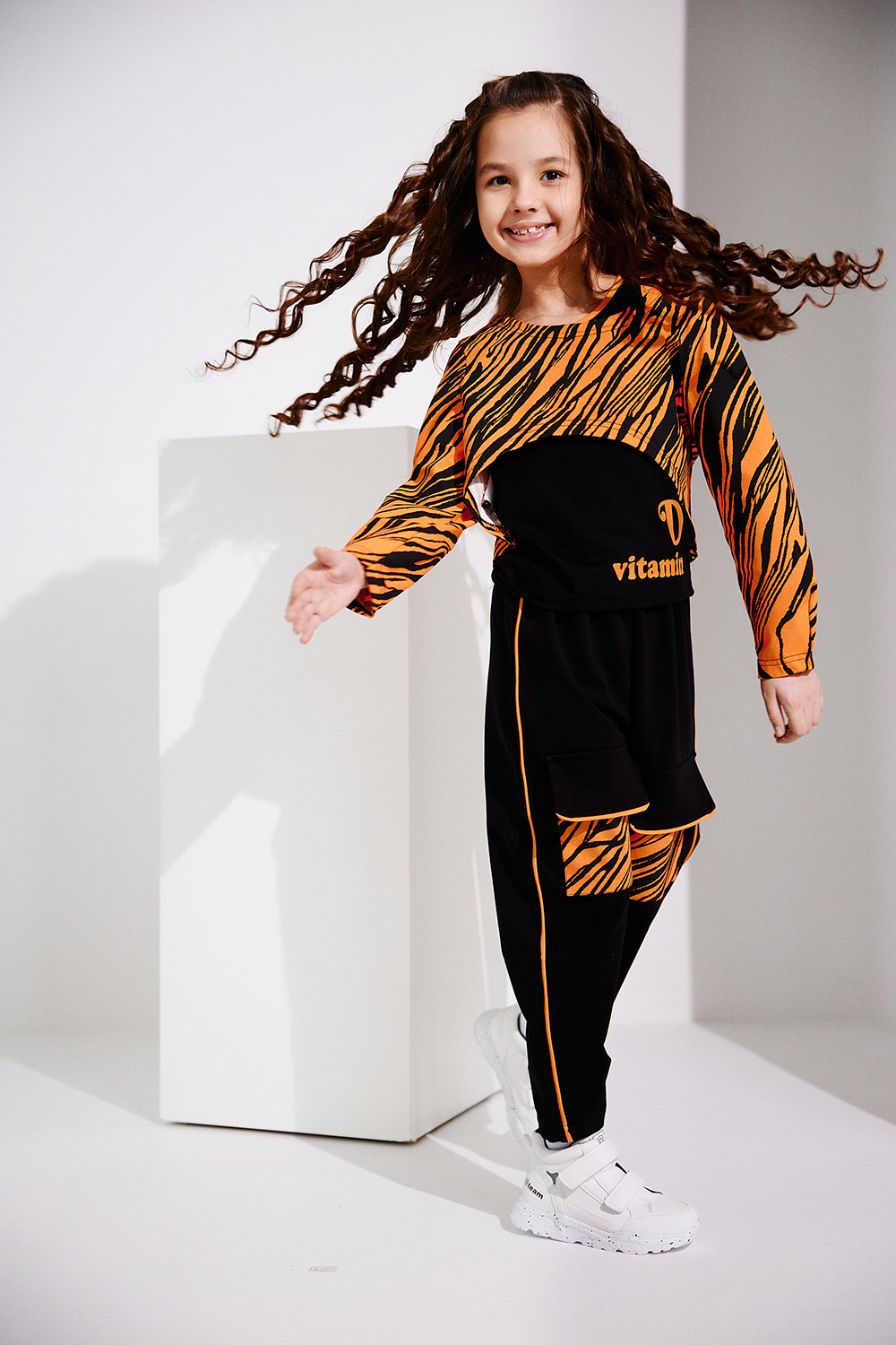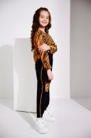 Стильный детский спортивный костюм для девочек(весна-лето), состоит из майки, лонгслива и брюк (джоггеров). Лонгслив укороченный свободного кроя с длинными рукавами, дополняется удлинённой майкой с ярким печатным принтом. Штаны - джоггеры свободного кроя на широком эластичном поясе. На передних половинках брюк накладные карманы с клапанами. Боковые швы и низ клапанов оформлены ярким кантом. Комфортный костюм, удобен в носке и подойдет на каждый день для повседневного использования, активного отдыха и спорта. Рекомендована деликатная стирка не выше 30 градусов. Состав по тканям: футер 2-х нитка с лайкрой хлопок 72%, ПЭ 20%, эластан 8%, кашкорсе: вискоза 92% лайкра 8%; кулирка с лайкрой: хлопок 95% лайкра 5%