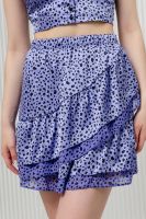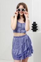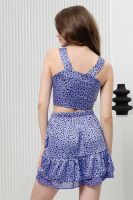 Стильный женский костюм состоит из юбки и топа. Выполнен из качественного негнущегося материала шелка и шифона. Топ укороченный на широких бретелях с застежкой на маленькие пуговки. Юбка мини на запах с широкой оборкой по низу. Костюм женский подойдет для девушек и девочек, подростков. Идеален для пляжного отдыха, для прогулок и встреч с друзьями.