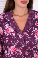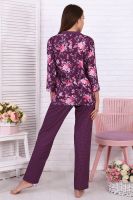 Женский костюм-пижама, состоящий из рубашки и брюк. Комплект сшит из трикотажного полотна нового поколения с цифровой печатью, которая не меняет цвет рисунка в процессе стирки. Содержание полиэстера в ткани позволяет изделию не менять свою форму в процессе носки и практически не мнется. Усадка костюма минимальна. Жакет-рубашка на пуговицах, воротник в английском стиле из ткани компаньона. Рукав 3/4, низ с имитацией манжета. Брюки на широкой резинке, низ брюк выполнен с имитацией манжета. Широкий размерный ряд с 44 по 56, большой ассортимент ярких расцветок на любой вкус. Можно носить, как домашний костюм и как пижаму. Рубашка свободного кроя для удобства домашнего ношения. Любителям носить в обтяжку рекомендуется брать на размер меньше (см. параметры в сантиметрах). Рекомендована стирка при 30-40 градусах в стиральной машине. Отличный подарок любимым женщинам.