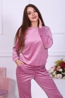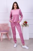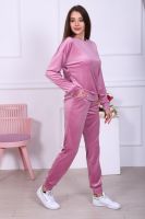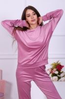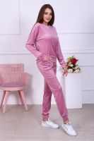 Женский домашний костюм, состоящий из джемпера с длинным рукавом и брюк. Брюки с карманами в боковых швах со скошенным входом для удобства, с широким притачным поясом на резинке, отделан декоративной отстрочкой. Низ брюк на притачной манжете из основной ткани. Джемпер свободного покроя с округлой горловиной чуть зауженный внизу манжетой за счет небольшой сборки. Рукав втачной, низ рукава на притачной манжете шириной 6 см. Костюм выполнен из нежной на ощупь бархатной ткани - иконвелюра, который переливается на свету и очень приятен на ощупь. Изделие не мнется, не требует глажки, что очень удобно в использовании. Можно носить дома, как домашний комплект, как пижаму для сна, а также на выход, как костюм для прогулок в холодное время года, как спортивный костюм, на дачу, для школы и т. д. Большой выбор нежных и насыщенных расцветок на любой вкус! Отличный подарок самым любимым!