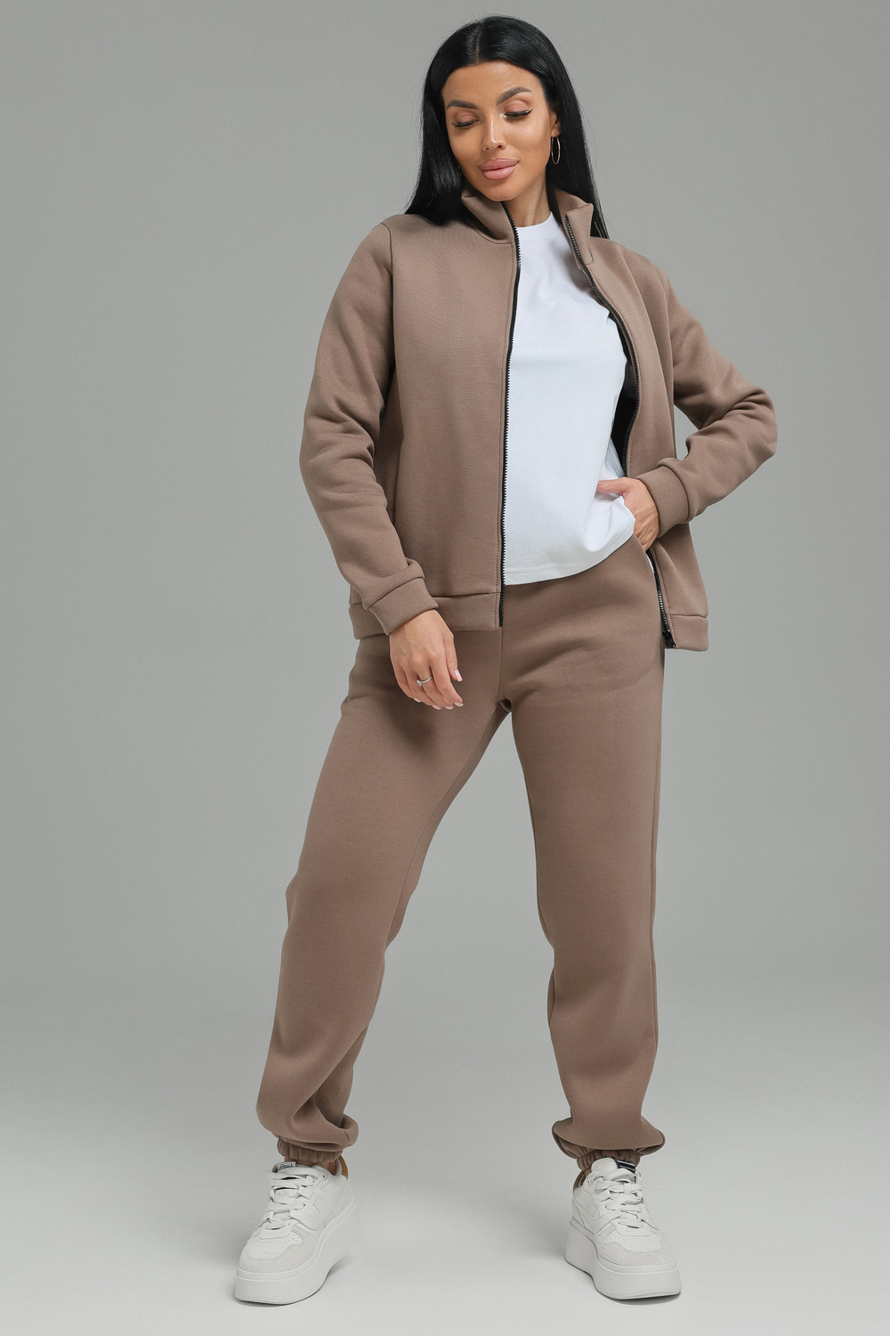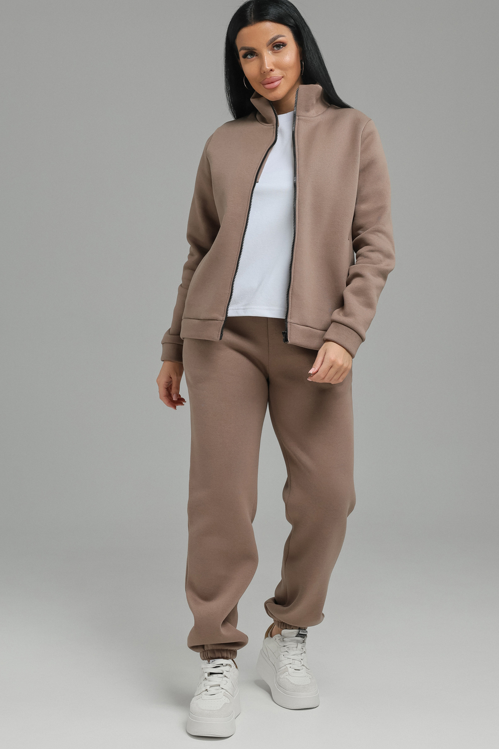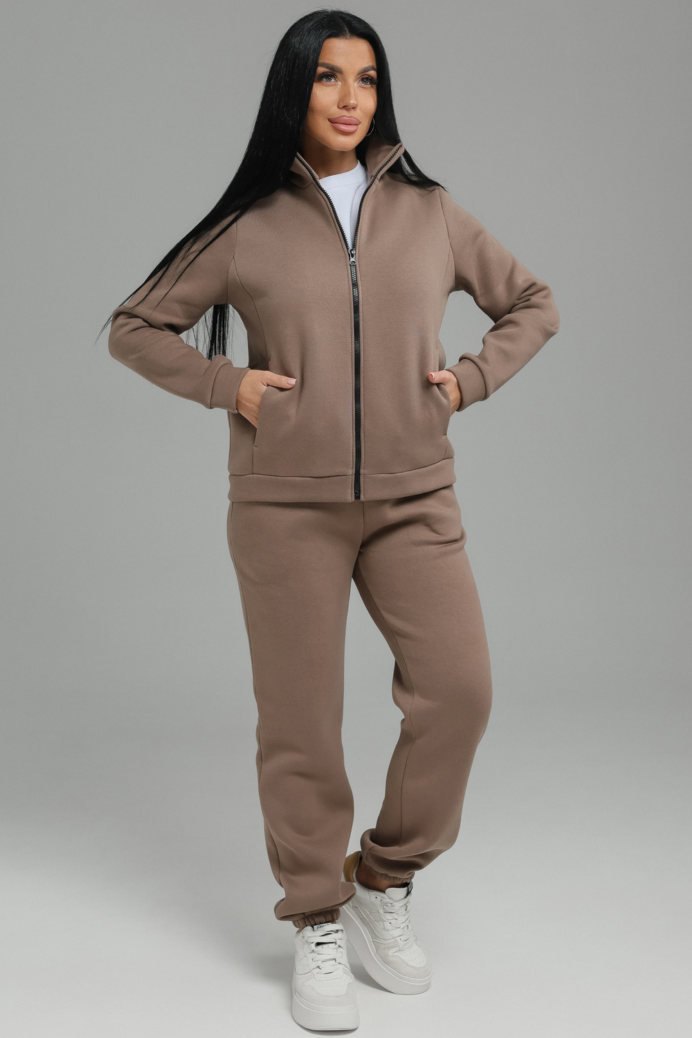 Спортивный костюм женский. Хит сезона, костюм отлично подойдет на весну, осень и зиму. В нем вы всегда будете чувствовать себя тепло и уютно. Костюм женский выполнен из футера 3-нитки премиум качества, с начесом. В комплекте брюки и кофта на замке с воротником -стойка. На полочках толстовки выполнены рельефы, в которых расположены карманы. В модели широкий размерный ряд с 50р по 60р.