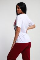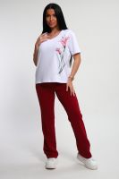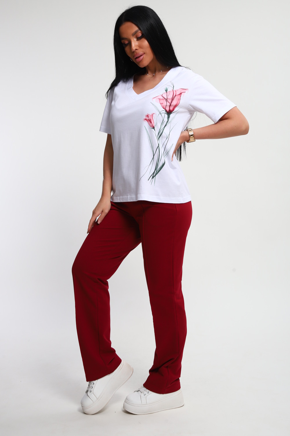 Костюм женский – это стильный и идеальный предмет гардероба ,идеально подходящий для дома и отдыха на любой период :весенний ,осенний, летний и зимний . Комплект состоит из футболки с красочным принтом и брюки в контрастном цвете. В составе ткани 100% хлопок . Хлопковый материал очень комфортный и лёгкий в носке . Брюки с удобной посадкой придадут вашему образу стильный и модный вид . Базовый современный костюмчик – популярный повседневный выбор на каждый день : на работу , для прогулок , праздников и на дачу . Универсальный стиль позволит вам создавать разнообразные образы , подходящие для любого события.