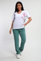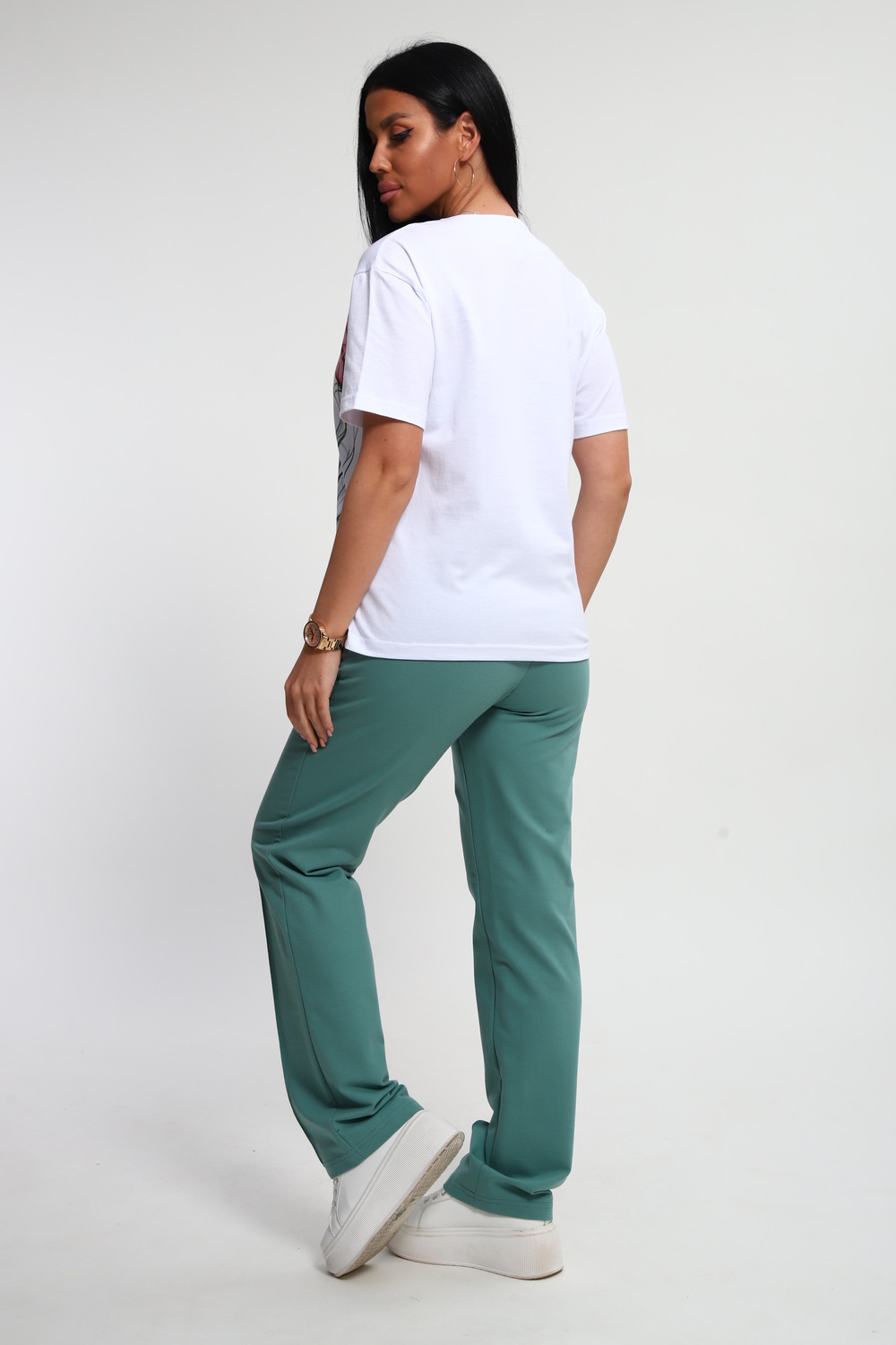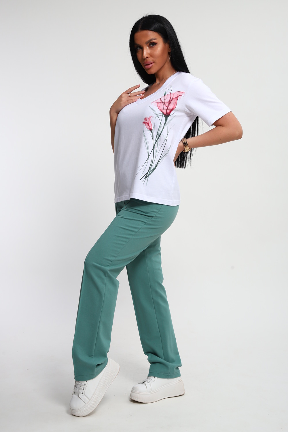 Костюм женский – это стильный и идеальный предмет гардероба ,идеально подходящий для дома и отдыха на любой период :весенний ,осенний, летний и зимний . Комплект состоит из футболки с красочным принтом и брюки в контрастном цвете. В составе ткани 100% хлопок . Хлопковый материал очень комфортный и лёгкий в носке . Брюки с удобной посадкой придадут вашему образу стильный и модный вид . Базовый современный костюмчик – популярный повседневный выбор на каждый день : на работу , для прогулок , праздников и на дачу . Универсальный стиль позволит вам создавать разнообразные образы , подходящие для любого события.