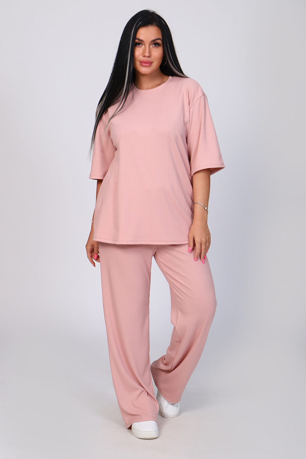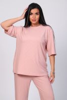 Костюм женский с широкими брюками. Кофта оверсайз удлинённая, рукав до локтя, горловина обработана обтачкой. Брюки длинные, широкие с карманами. Большой размерный ряд. На модели 48 размер.