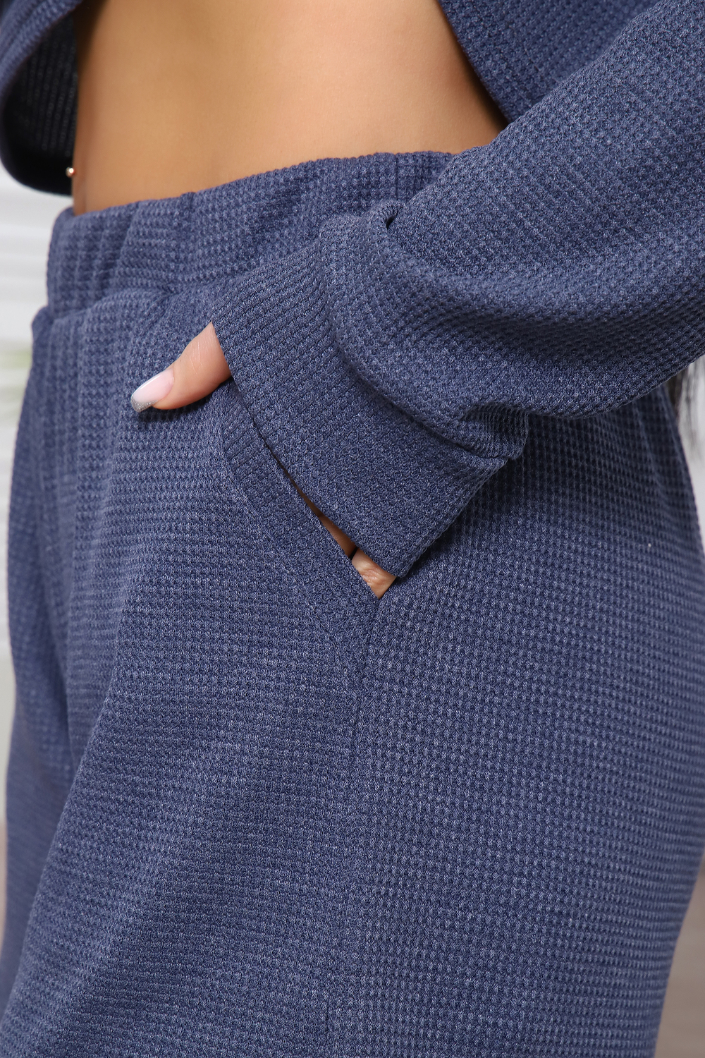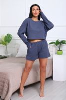 Костюм домашний с шортами из мягкого трикотажа СОТЫ. Комфортный комплект состоит из стильного, укороченного лонгслива с длинным рукавом на манжете и шорт с удобными боковыми карманами. Оригинальный 3Д рисунок, образованный путём сложного переплетения волокон, внешне напоминает пчелиные соты. Полотно мягкое, эластичное и прочное, легко стирается, практически не мнётся, не деформируется. Длина рукава в таблице измерений указана от начала горловины.