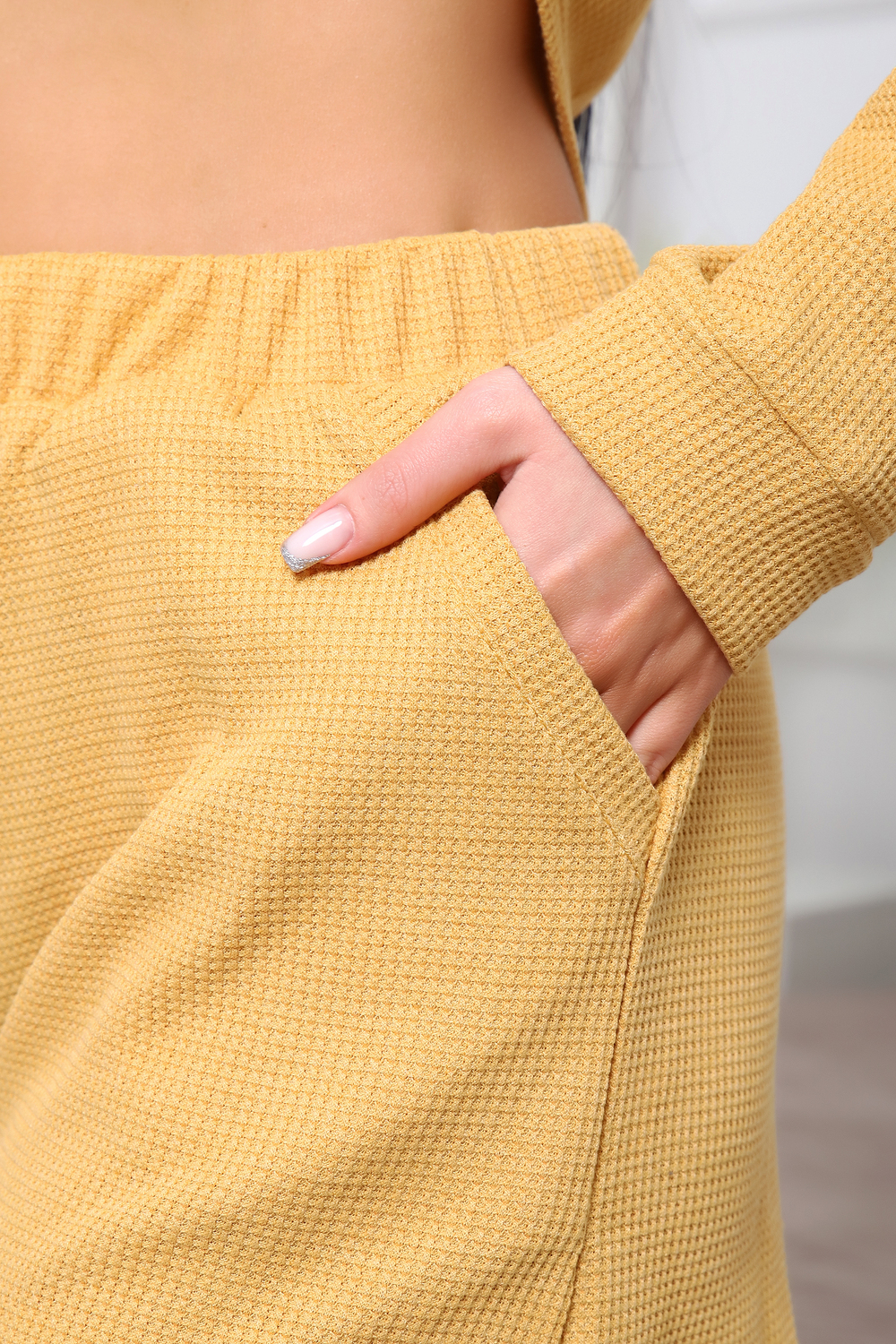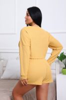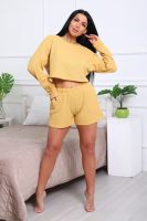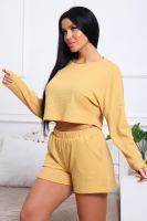 Костюм домашний с шортами из мягкого трикотажа СОТЫ. Комфортный комплект состоит из стильного, укороченного лонгслива с длинным рукавом на манжете и шорт с удобными боковыми карманами. Оригинальный 3Д рисунок, образованный путём сложного переплетения волокон, внешне напоминает пчелиные соты. Полотно мягкое, эластичное и прочное, легко стирается, практически не мнётся, не деформируется. Длина рукава в таблице измерений указана от начала горловины.