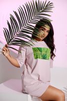 Костюм женский - свободные шорты с футболкой выполнен из кулирки с лайкрой. Спереди на футболке оригинальный принт. Горловина обработана бейкой, края подшиты, пояс на эластичной резинке. Костюм очень удобный и приятный к телу, идеально подойдет как для дома, так и для отдыха и прогулок.
