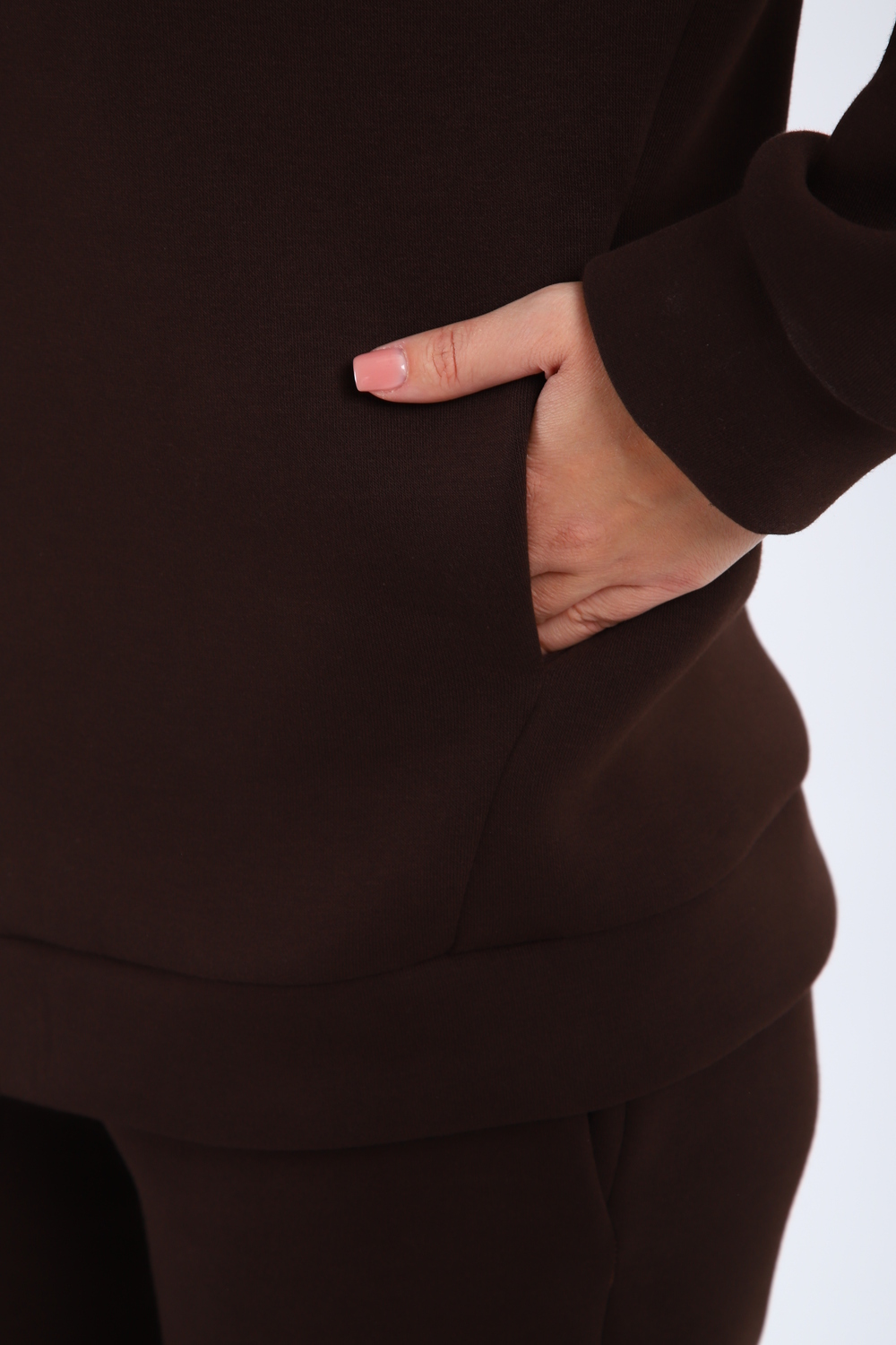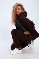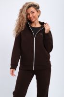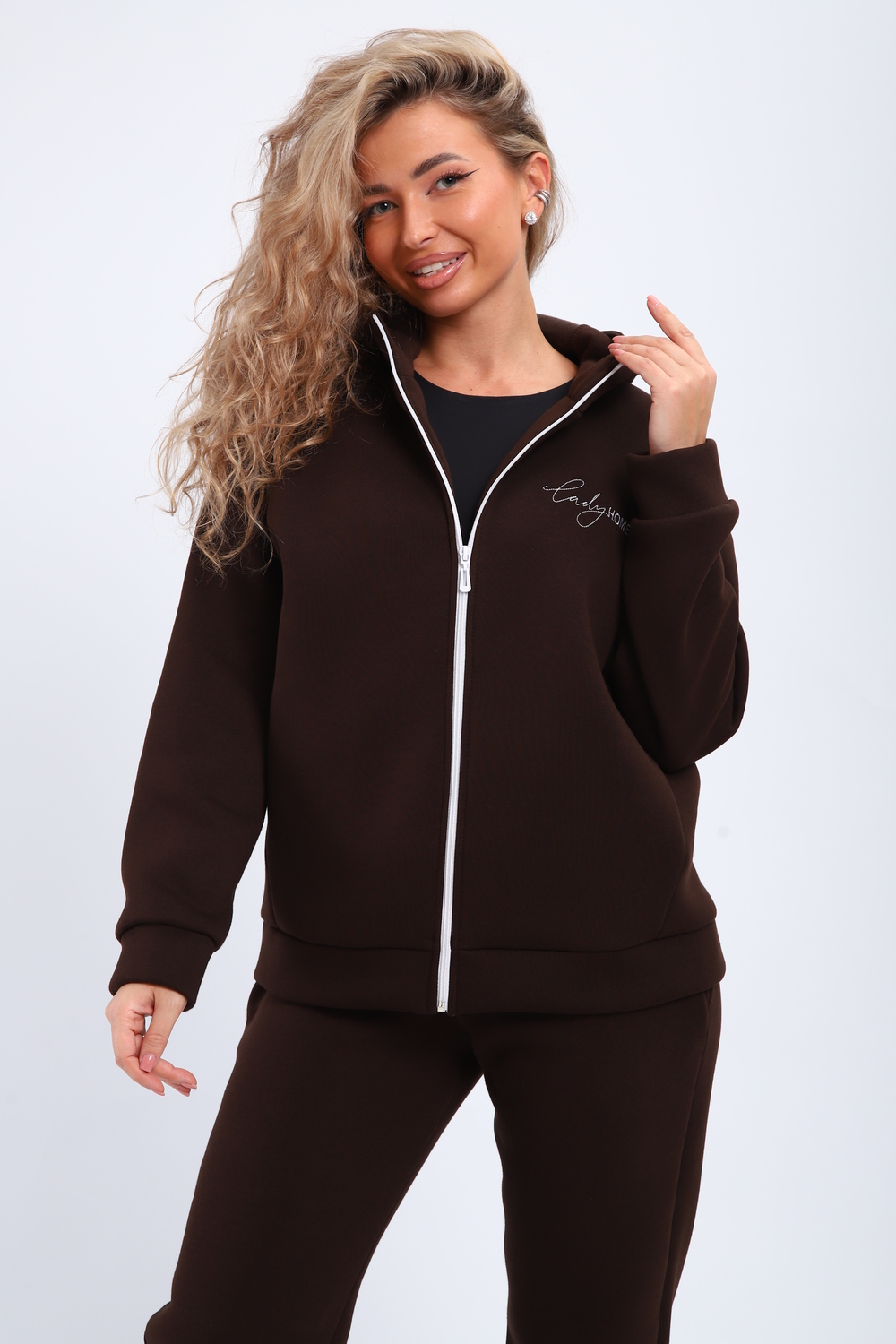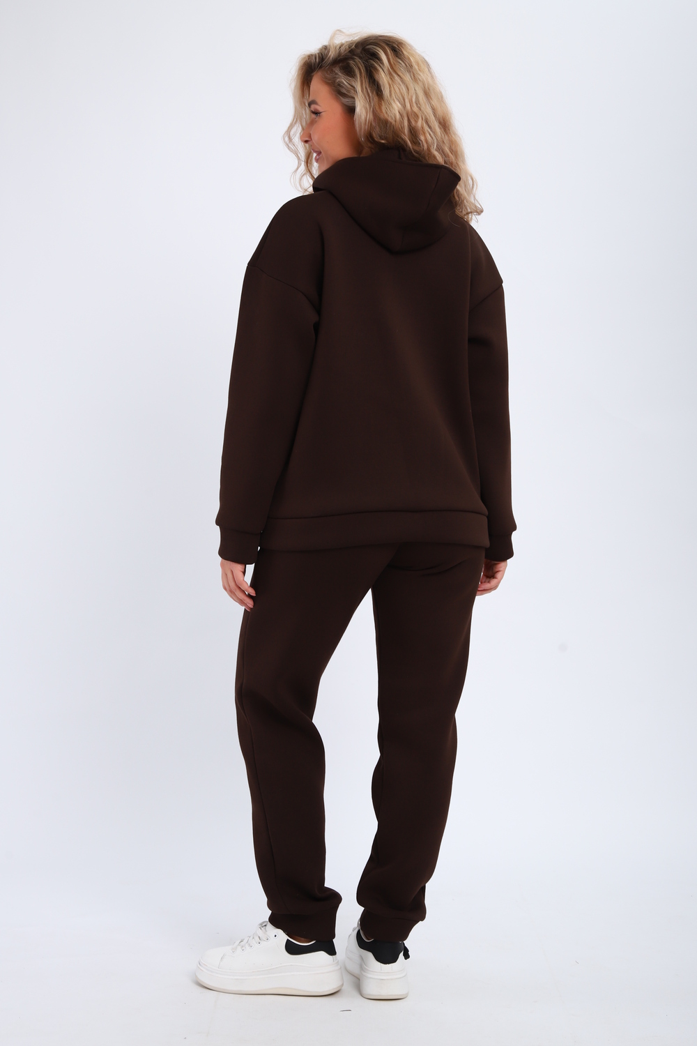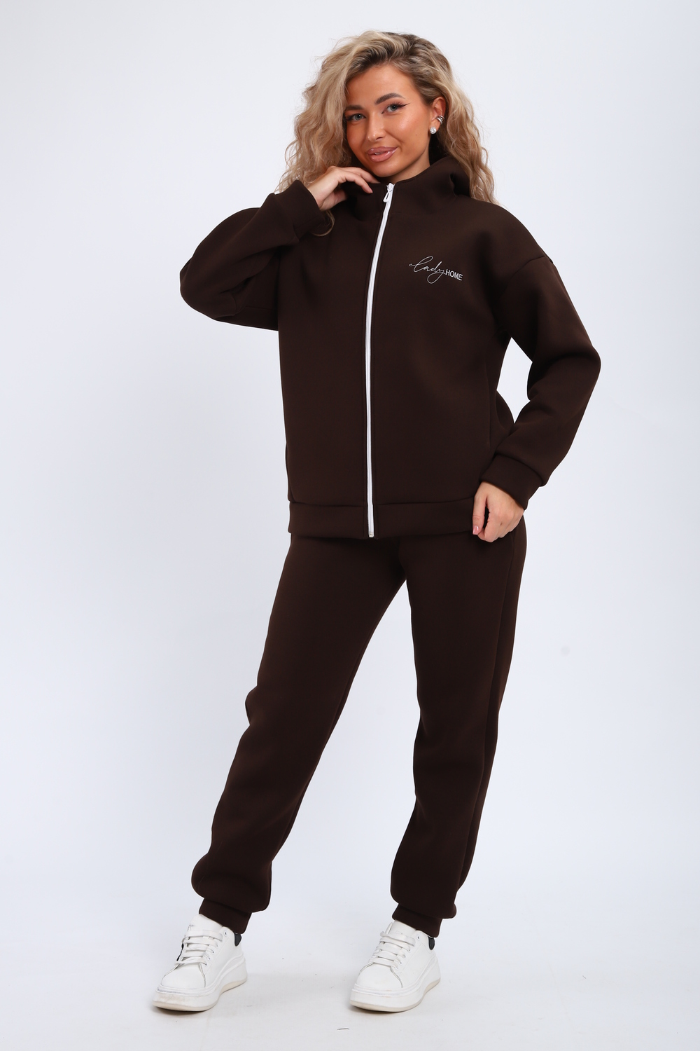 Женский костюм из футера 3-х нитки с начесом. Костюм состоит из толстовки и брюк. Толстовка свободная на молнии с капюшоном, на полочке оригинальная вышивка Lady HOME, по боковому шву в шве карман. Толстовка со спущенным рукавом на манжете. Брюки свободные. По боковому шву карман в шве, низ брюк на манжете. Пояс обработан на поясной машине, что делает брюки практичными при носке – резинка не скручивается. Костюм теплый, удобный, комфортный. Идеальное решение для повседневной носки в прохладную погоду!