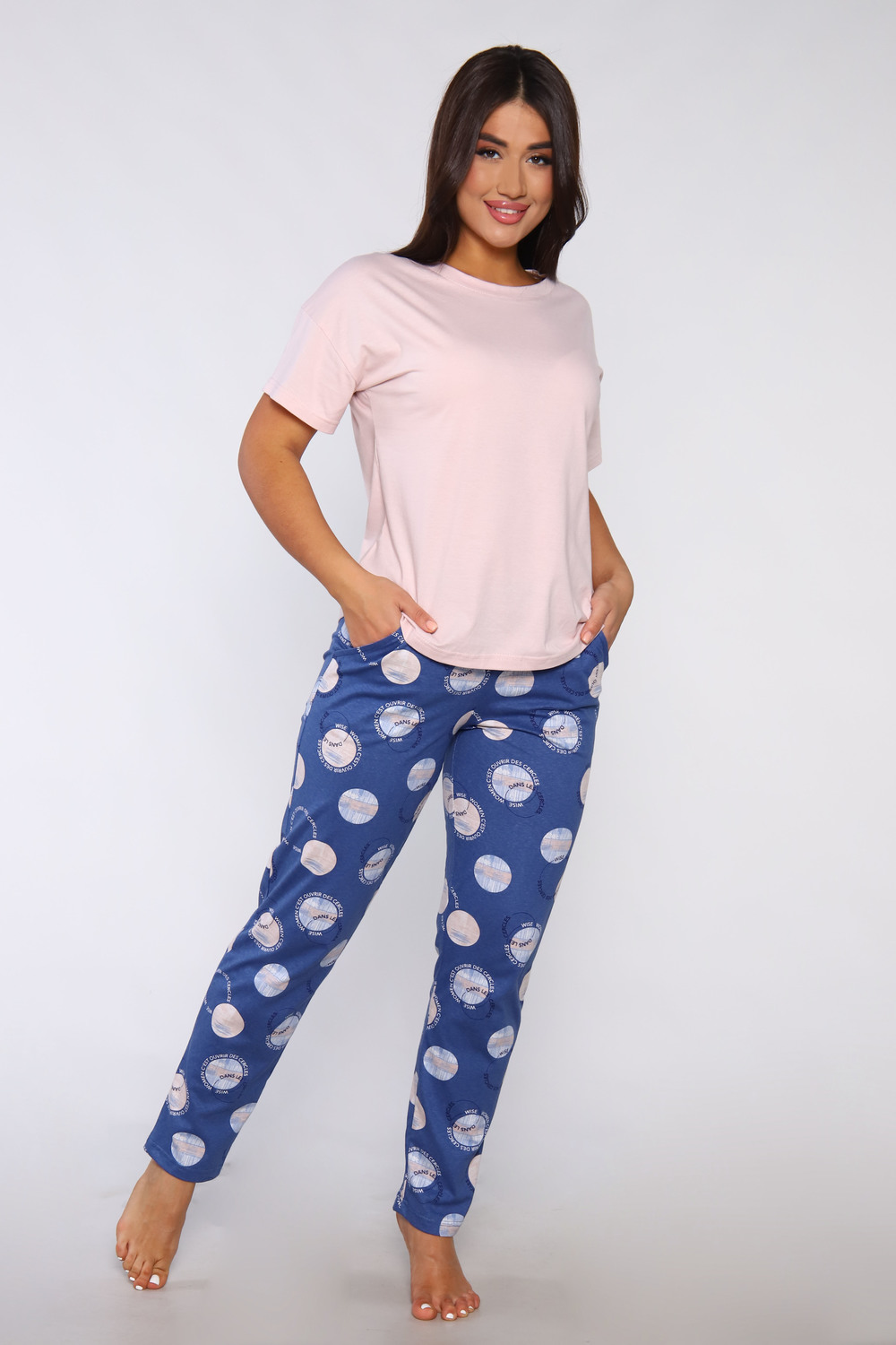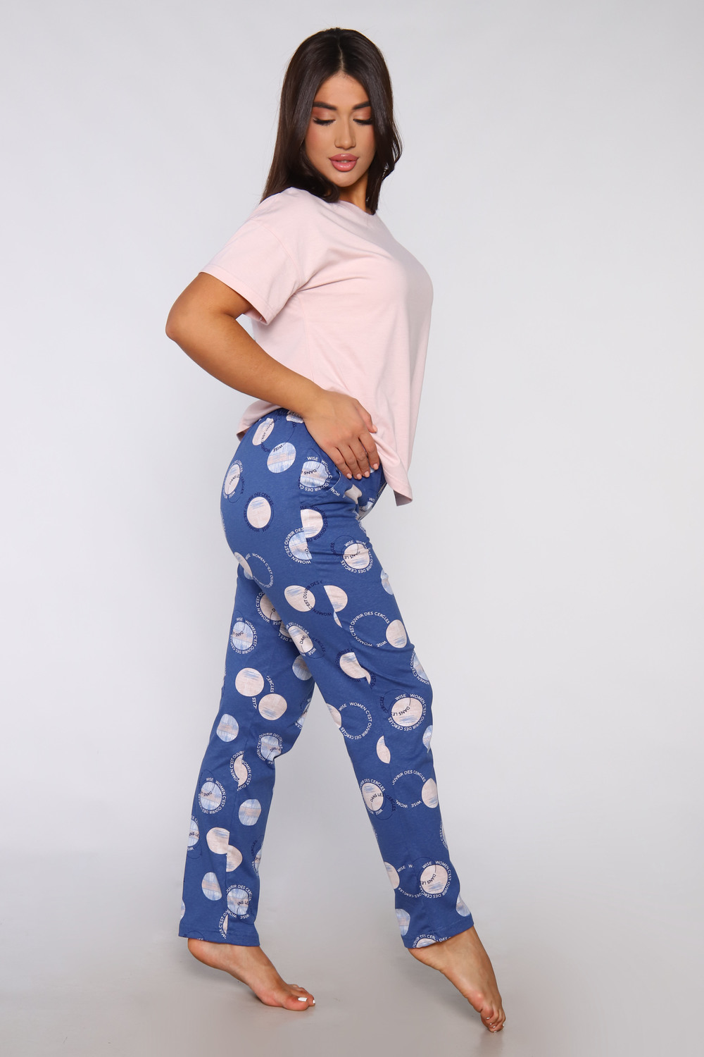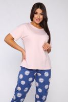 Костюм женский с брюками. Данная модель выполнена из трикотажного полотна кулирка (хлопок 100%). Футболка в стиле оверсайз с коротким рукавом. Брюки свободного покроя с боковыми карманами и вшивным поясом с тройной отстрочкой. Отличная модель для домашнего отдыха.