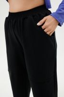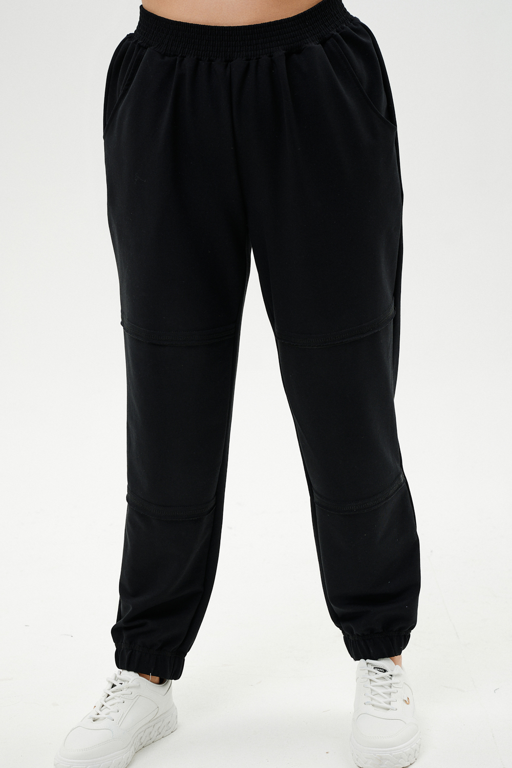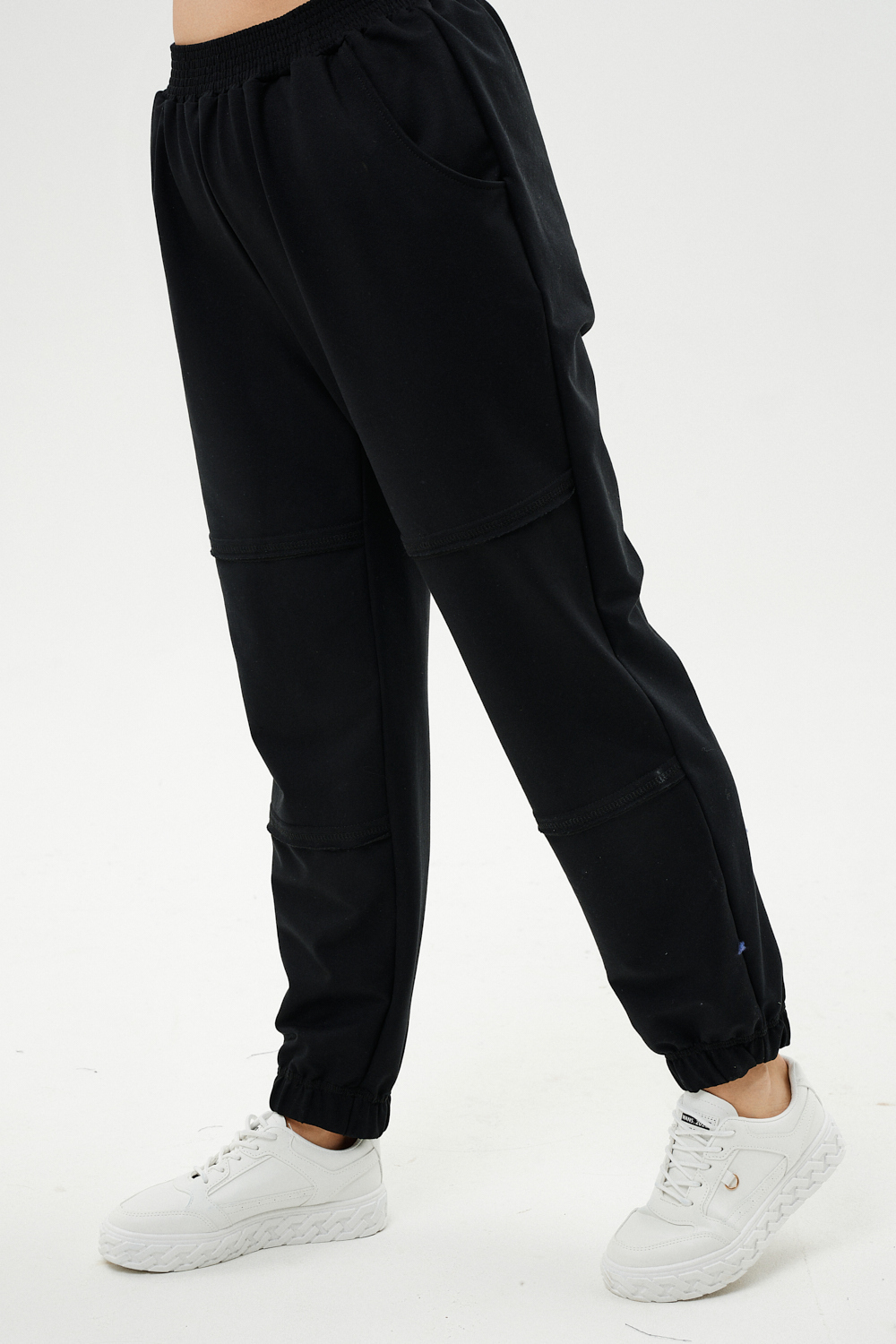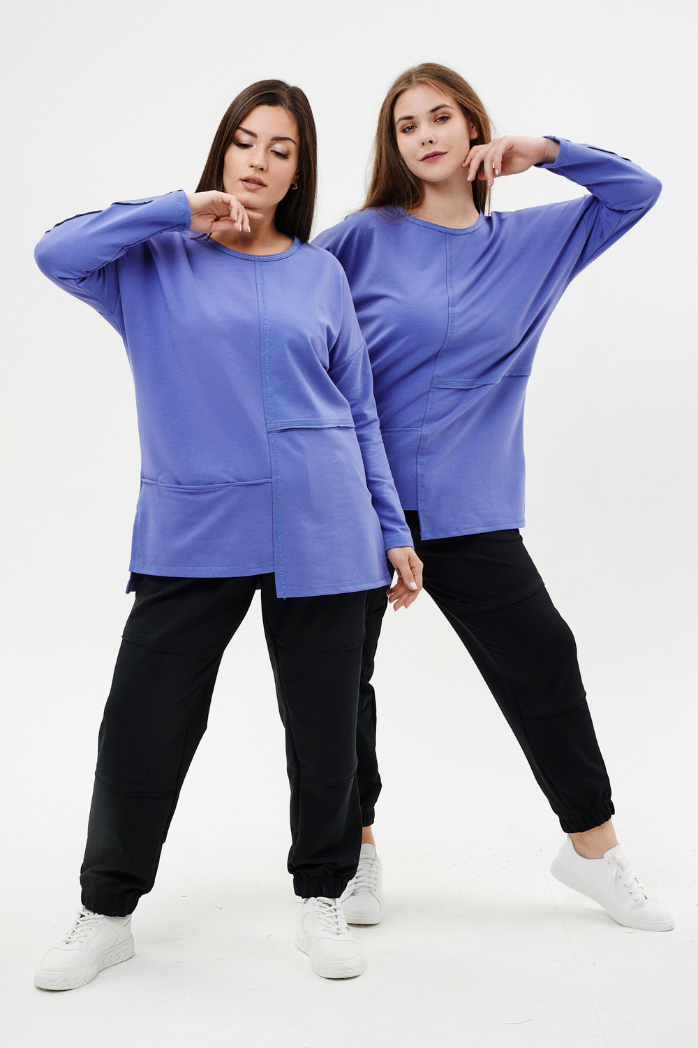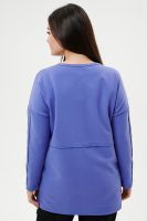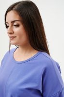 Костюм женский: туника и брюки. Туника прямого силуэта, горловина круглая, рукав длинный, цельнокроеный со швом., состоит из передней и задней частей. Полочка из четырех частей: на правой части внутренний горизонтальный карман в шве, на левой горизонтальный шов с открытыми срезами, аналогичный шов на спинке и на передней части брюк. В боковых швах разрезы. Брюки свободные по бедрам, зауженные к низу, на передней части брюк внутренние карманы. Пояс выполнен на многоигольной машине.