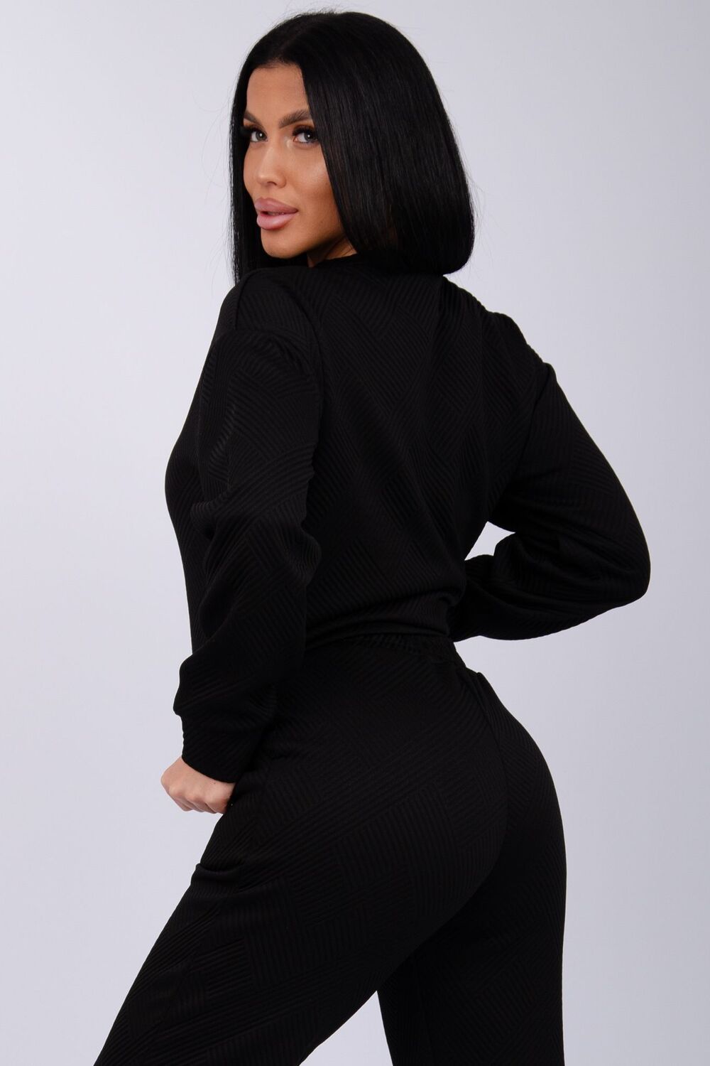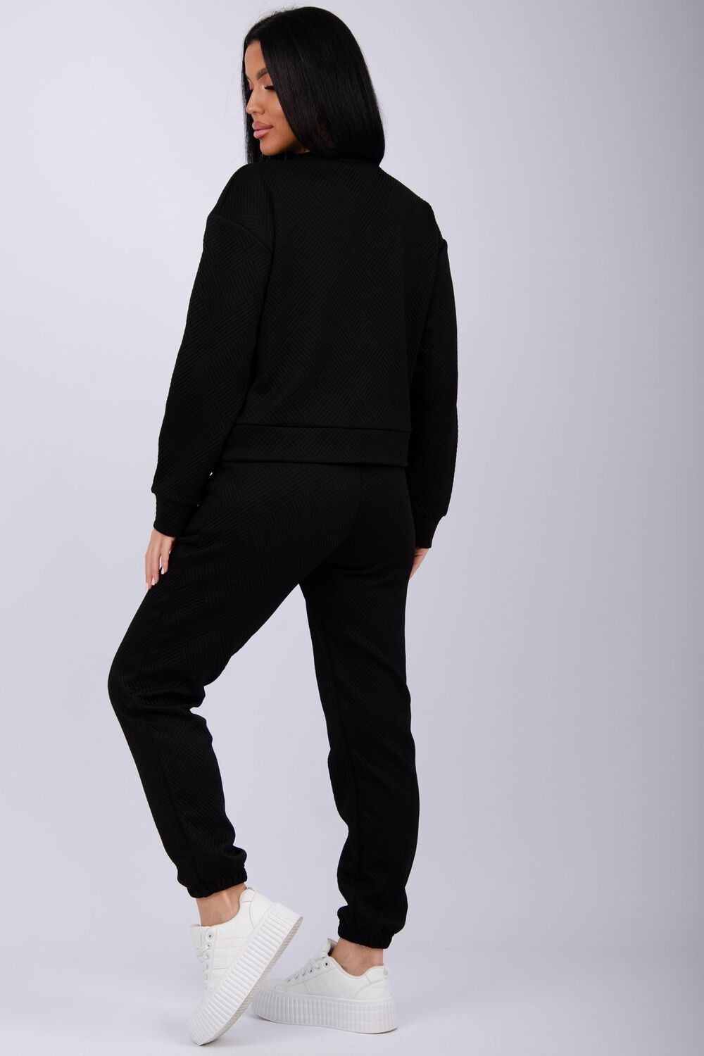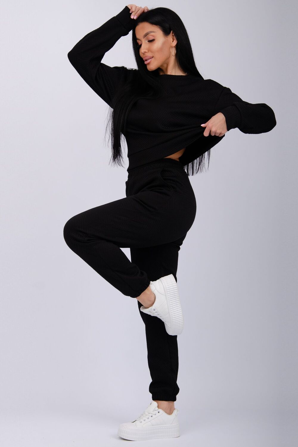 Удобный костюм для повседневной носки и активного отдыха и выхода в свет. Варианты цветов вас приятно удивят: глубокий черный, шоколадный коричневый, серый графит и милый молочный. Верх: джемпер с манжетами на рукавах, низ: прямые брюки на резинке. Приятная фактурная ткань с объёмным геометрическим узором придаст элегантность вашему образу. Костюм легко комбинировать с кроссовками и ботинками. Отличный выбор для осени и зимы.