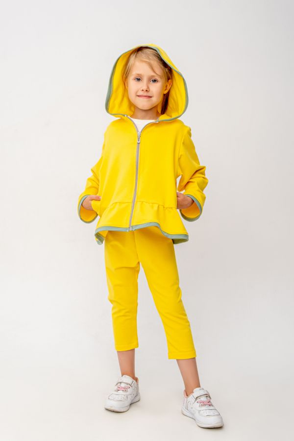Костюм из мягкого футера двунитки качества пенье. Свободный крой, худи с капюшоном, карманом, на молнии, бриджи прямые. Подходит для прогулок, для садика, для дома. Легкий в уходе, после стирки не линяет, не деформируется, не пилингуется.