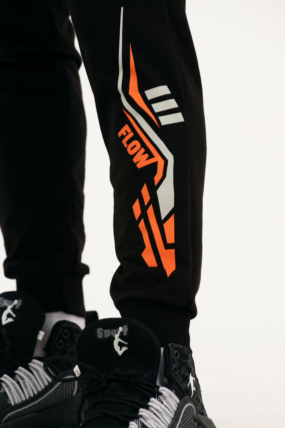 Костюм свободного кроя выполнен из футера 2-х нитки. Состоит из толстовки и брюк. Толстовка с манжетами и поясом из эластичного трикотажа. Рукав втачной со спущенной линией плеча. Брюки свободной посадки с карманами и манжетами из эластичного трикотажа.