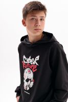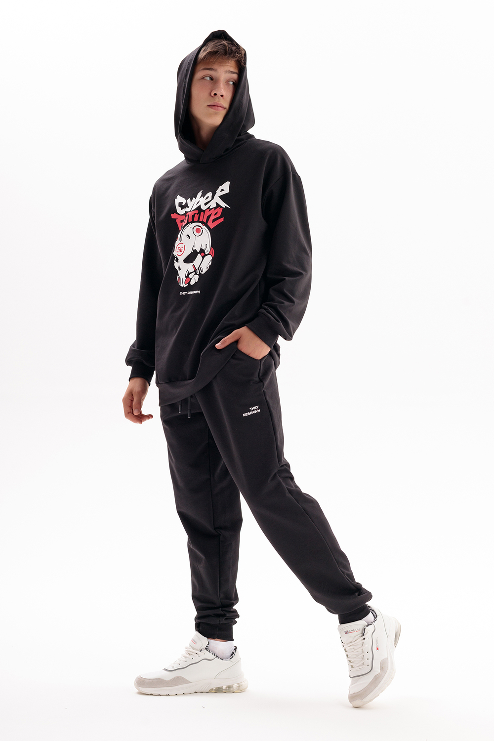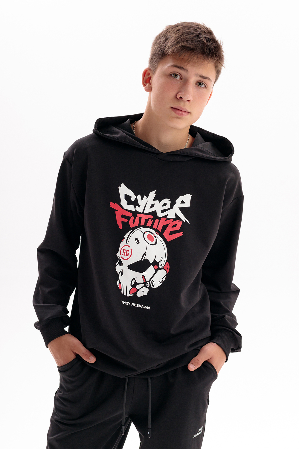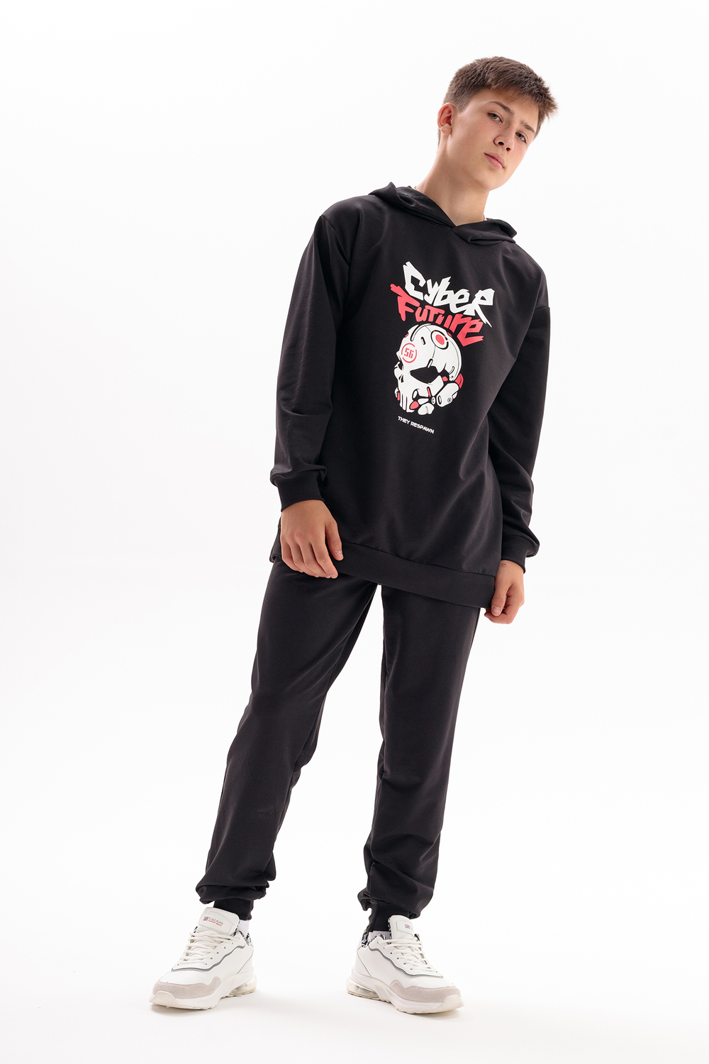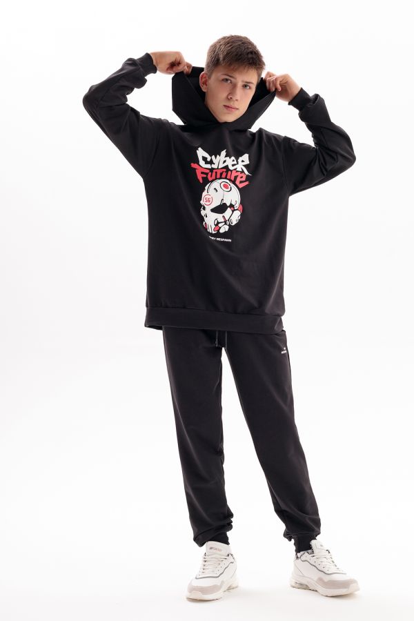 Спортивный костюм с брюками джоггерами для вашего подростка. Откройте новые горизонты комфорта и стиля для вашего ребенка с оригинальным спортивным костюмом, состоящим из удлиненной толстовки с глубоким капюшоном и джоггеров. Этот костюм, выполненный в оверсайз стиле, станет идеальным дополнением к гардеробу любого мальчика или подростка, ценящего удобство и модные тенденции. Изготовленный из дышащего материала на основе хлопка 75%, костюм обеспечивает комфорт в теплую осень и лето, будь то активные занятия спортом, игра в баскетбол, катание на велике, скейте или самокате. Модный спортивный костюм для мальчиков является отличным вариантом школьной формы для физкультуры. Этот костюм идеально подойдет для повседневного использования, включая прогулки с друзьями, в поход, вещи в лагерь или отпуск на море. Черный цвет добавляет универсальности, позволяя сочетать костюм с различными элементами гардероба для создания уникальных луков на каждый день. Оверсайз толстовка худи и штаны с идеальной посадкой не сковывают движения, делая костюм удобным для активного отдыха и спорта. Принт на толстовке добавляет образу оригинальности и подчеркивает индивидуальность, делая вашего мальчика заметным на фоне сверстников. Этот комплект станет незаменимым выбором для тех, кто ищет сочетание комфорта, стиля и универсальности в одежде для подростков. Таким образом, выбирая наш детский спортивный костюм, вы обеспечиваете вашего мальчика или подростка идеальным решением для каждого дня – будь то для занятий спортом, прогулок или повседневного ношения.