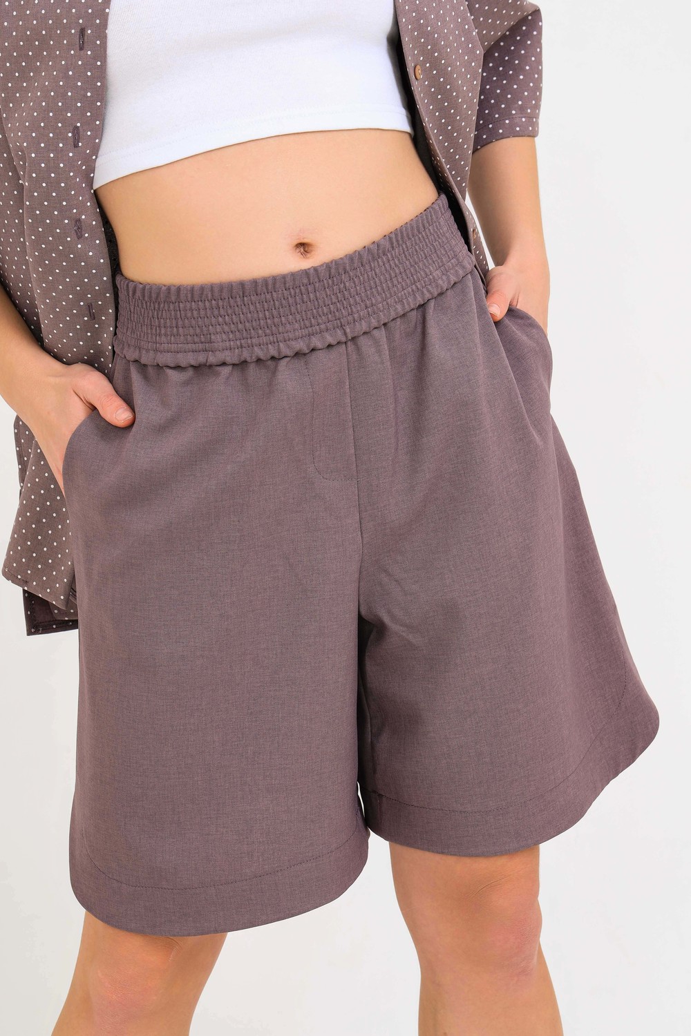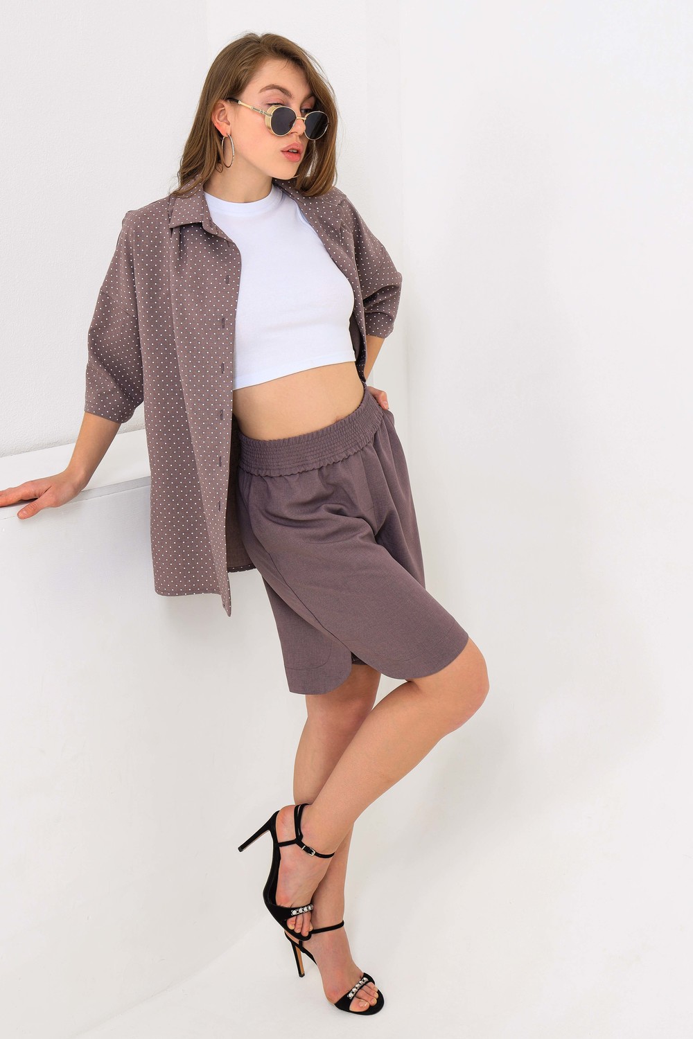 Костюм Лен рубашка + шорты 1252 [горох мелкий кофейный]