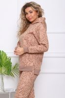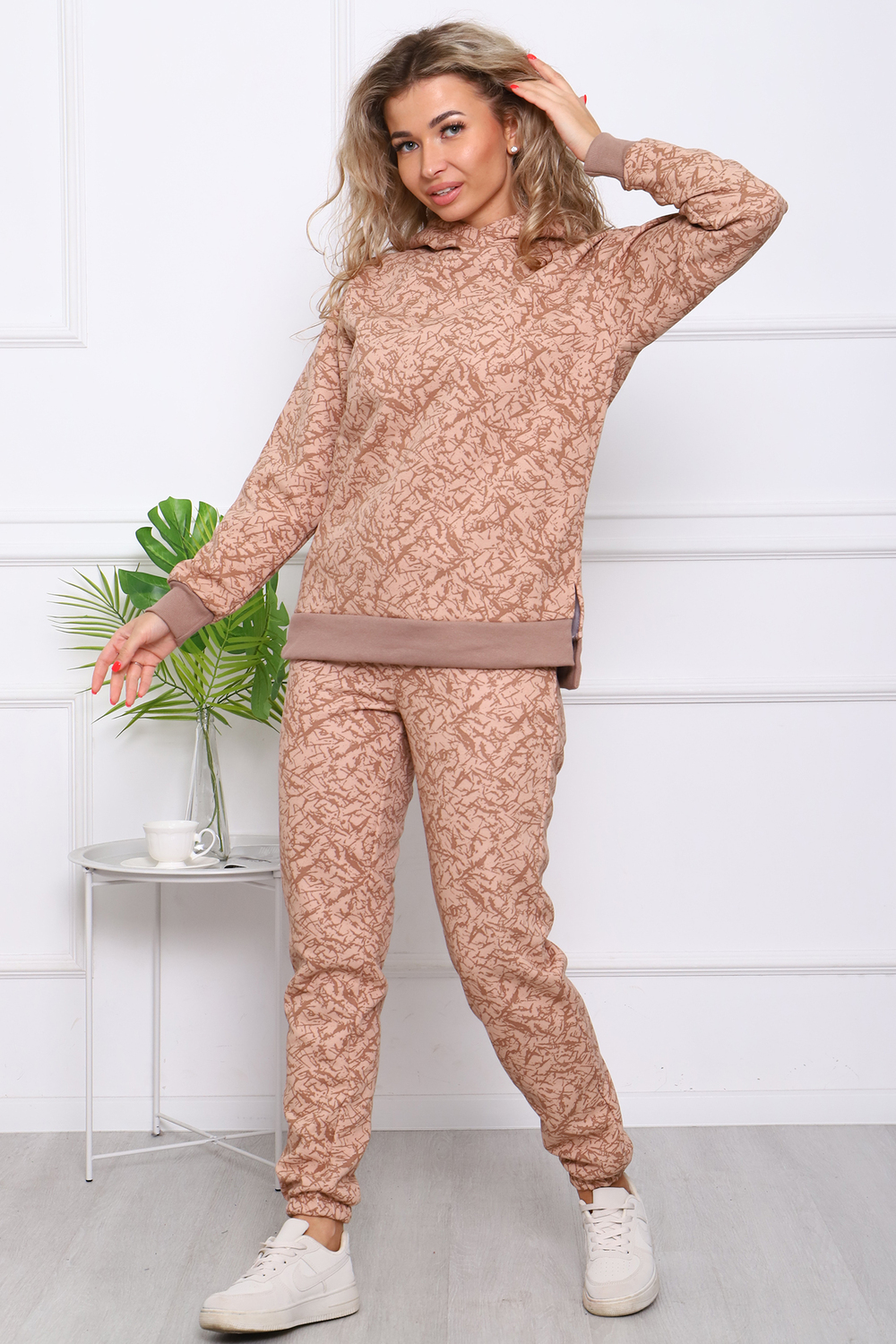 Костюм женский. Куртка со спущенным рукавом на манжете, двойным капюшоном, в боковых швах разрезы. Брюки на притачном поясе с резинкой, по низу изделия резинка.