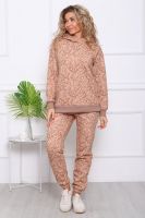 Костюм женский. Куртка со спущенным рукавом на манжете, двойным капюшоном, в боковых швах разрезы. Брюки на притачном поясе с резинкой, по низу изделия резинка.