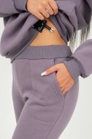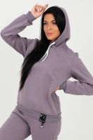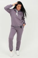 Костюм состоит из толстовки с капюшоном и брюк, выполненных их плотного хлопкового трикотажа - футер 3х-нитка с начесом. Капюшон фиксируется шнуром. Пояс и манжет рукава толстовки выполнен из кашкорсе. Низ декорирован шевроном. Брюки с высокой посадкой, на резинке, с боковыми карманами, манжеты из кашкорсе. Отличный вариант для домашнего гардероба, спортивного, повседневного образа. Такая модель особенно удобна и комфортна в прохладное время года. Футер 3-х нитка с начесом очень приятен и мягок на ощупь.