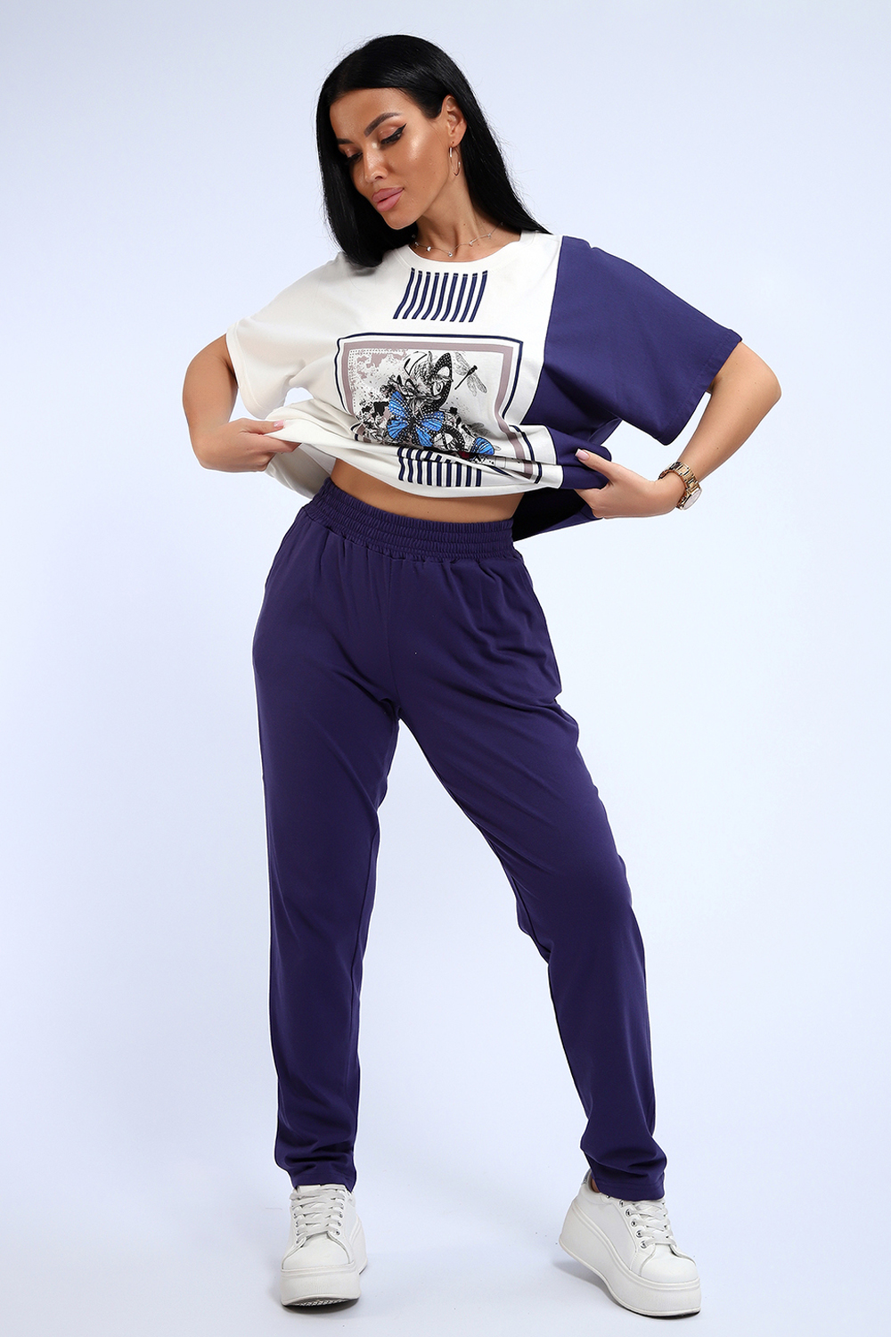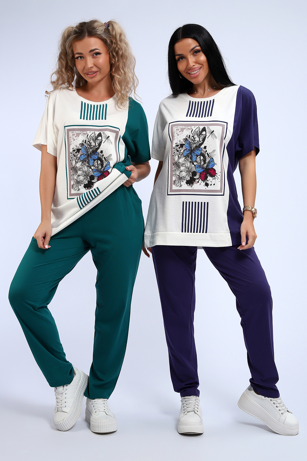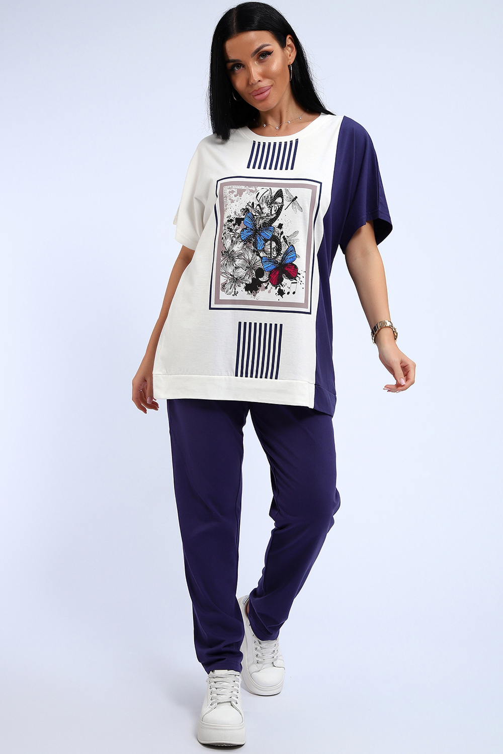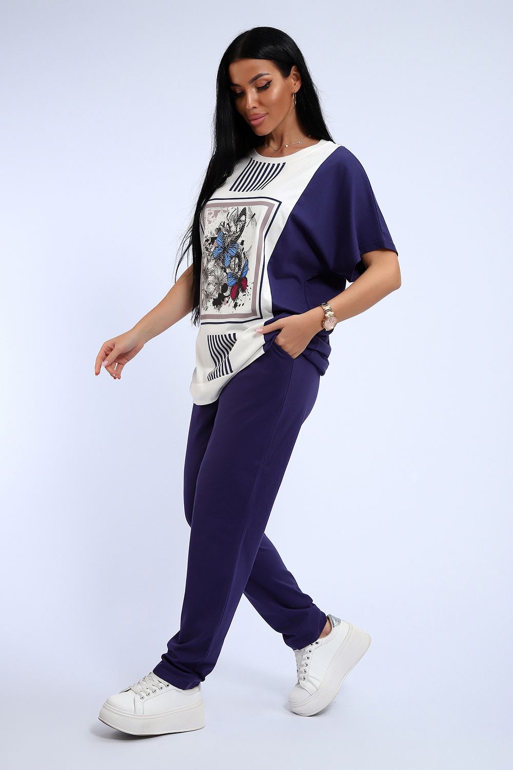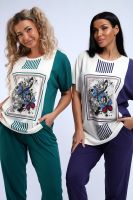 Эффектный костюм в спортивном стиле из трикотажного полотна ярких оттенков. В комплекте представлена кофта свободного кроя со спущенным рукавом и узкие, но не обтягивающие брюки. Изюминкой костюма является сочетание контрастных оттенков в дизайне кофты, украшенная яркими цветами. Трикотажные костюмы стали одним из самых популярных и востребованных атрибутов в гардеробе современных женщин, так как не только подчеркивают стиль и индивидуальность, но и обеспечивают комфорт и удобство в повседневной жизни.