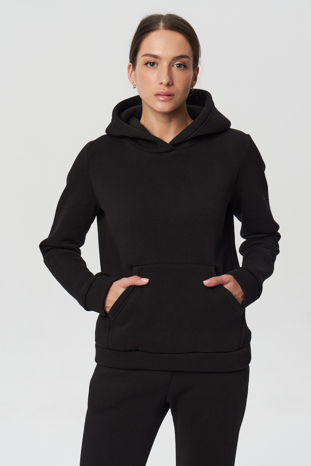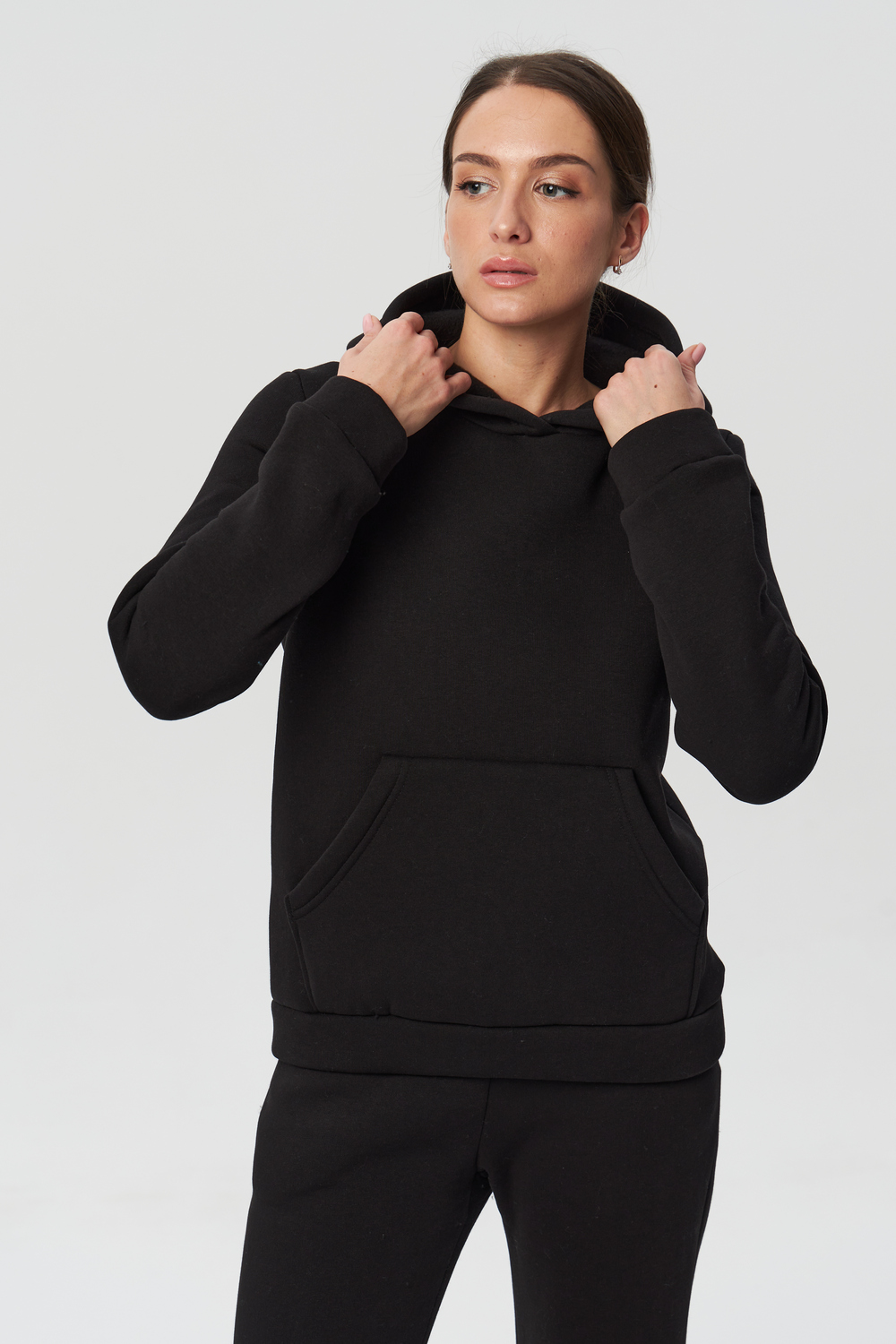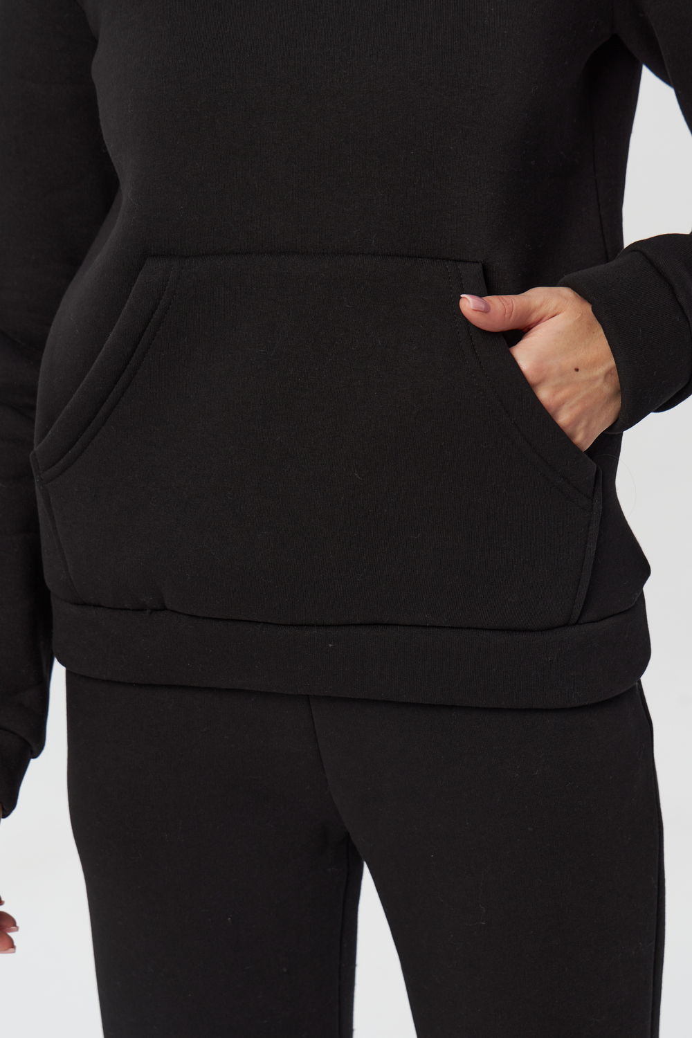 Костюм с начёсом -прекрасный вариант повседневной одежды для осени и зимы. Толстовка прямого кроя, имеет классическую пройму с втачным рукавом с притачными манжетами и поясом из ткани верха. На полочке расположен карман –кенгуру. Капюшон однослойный, он прекрасно защитит голову в прохладную погоду. Брюки на резинке, с боковыми наклонными карманами, по низу штанины вшита внутрь резинка. На изделиях с начесом возможно образование катышек на внутренней стороне. После 1-2стирок образование катышек прекратится. До этого времени рекомендуется носить изделия на футболки/топы цвета худи. Рекомендации по уходу: :-режимы «деликатная стирка» температура не выше 35градусов. -не использовать режимы «сушка» и «отжим» -использовать кондиционер при стирке -сушить на горизонтальной поверхности , не развешивать -не гладить полотно в мокром виде.