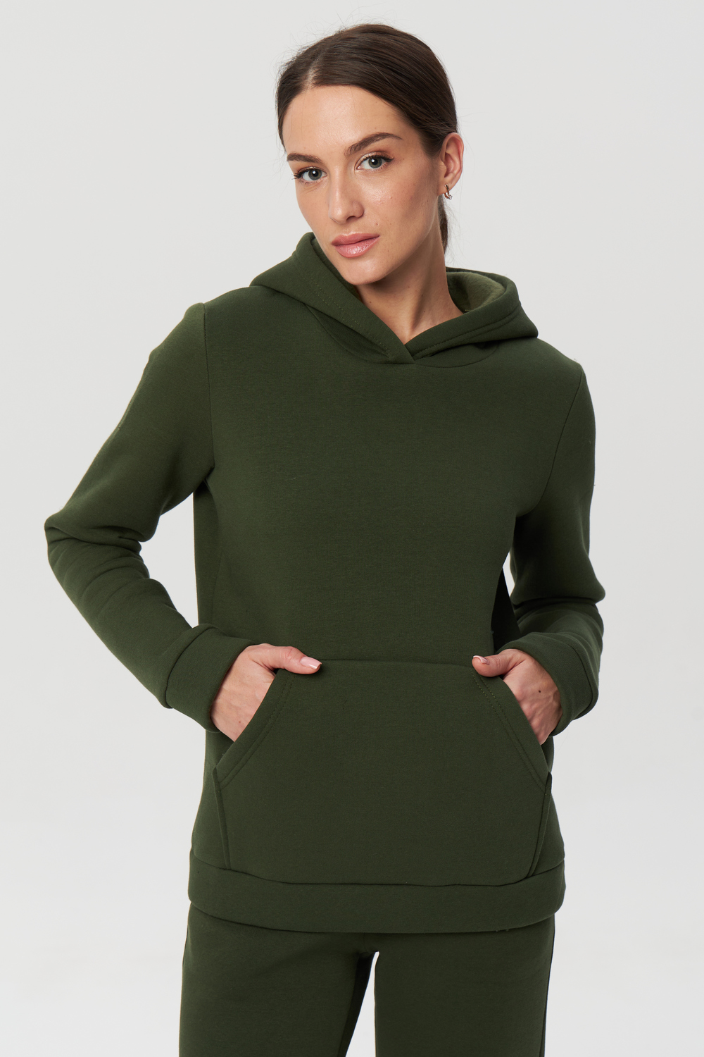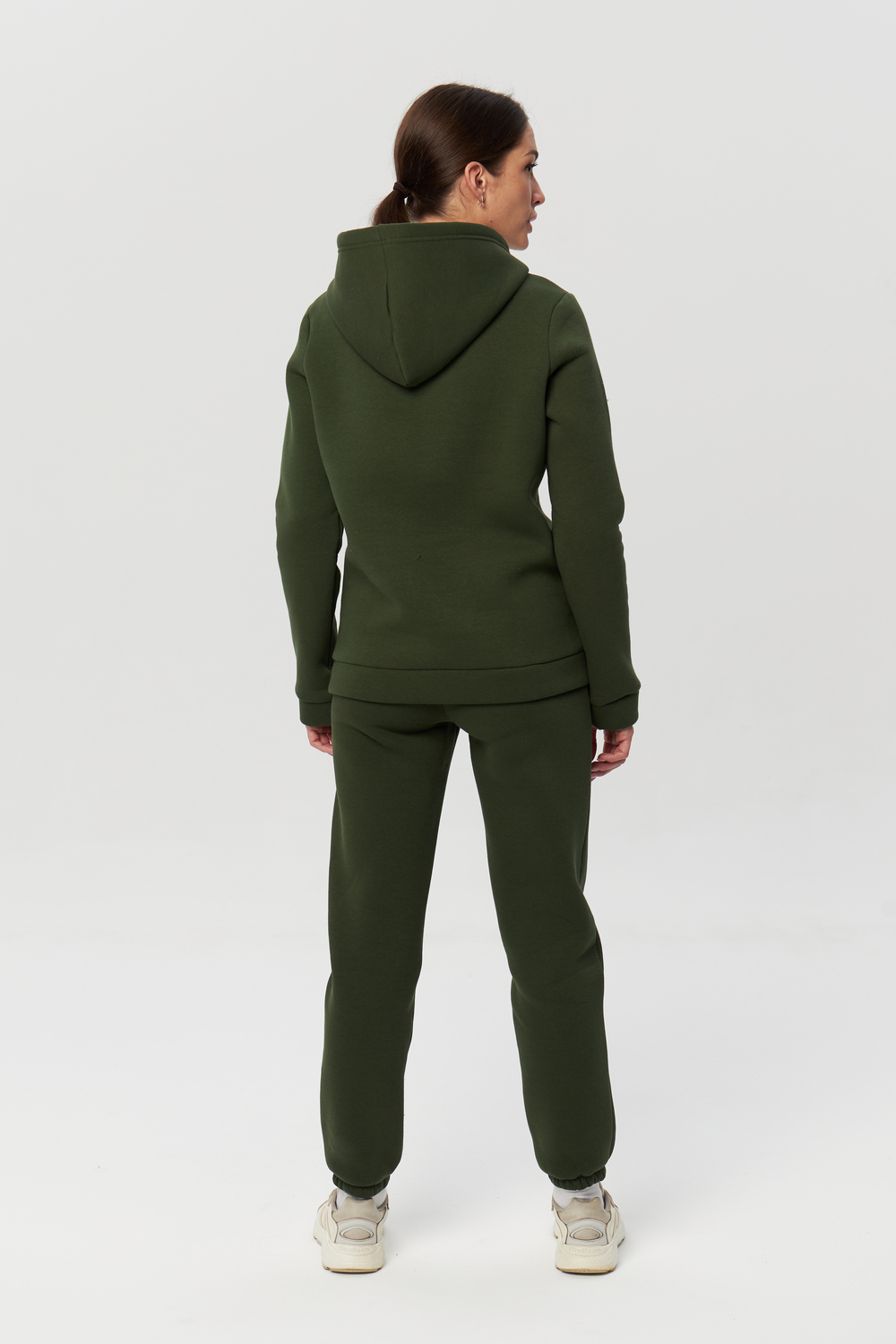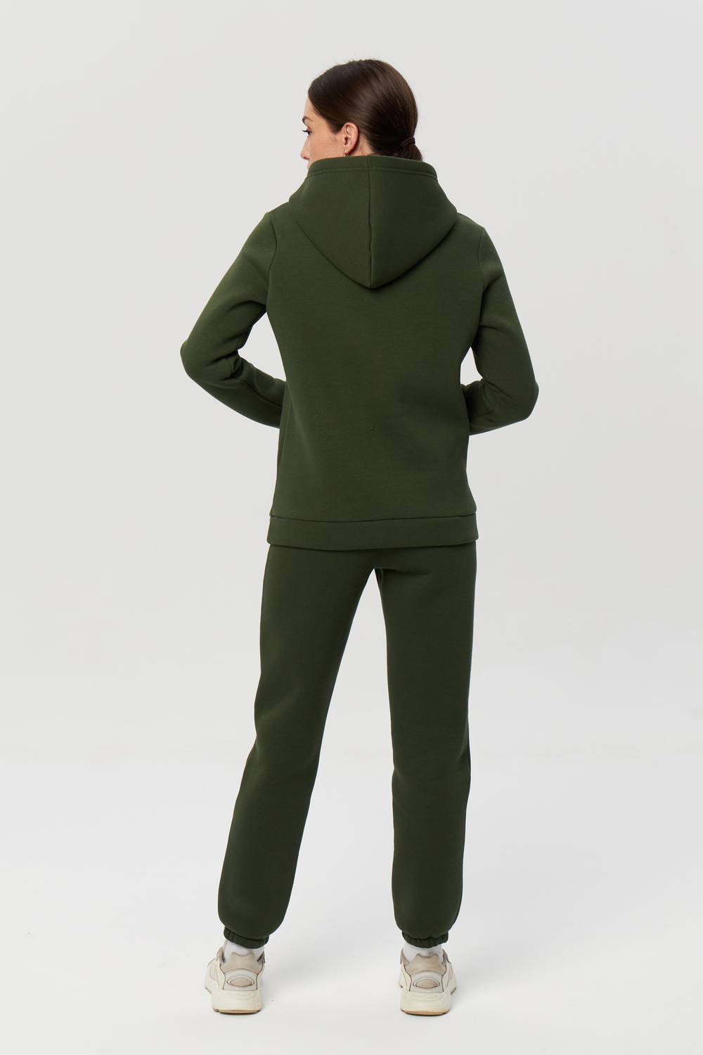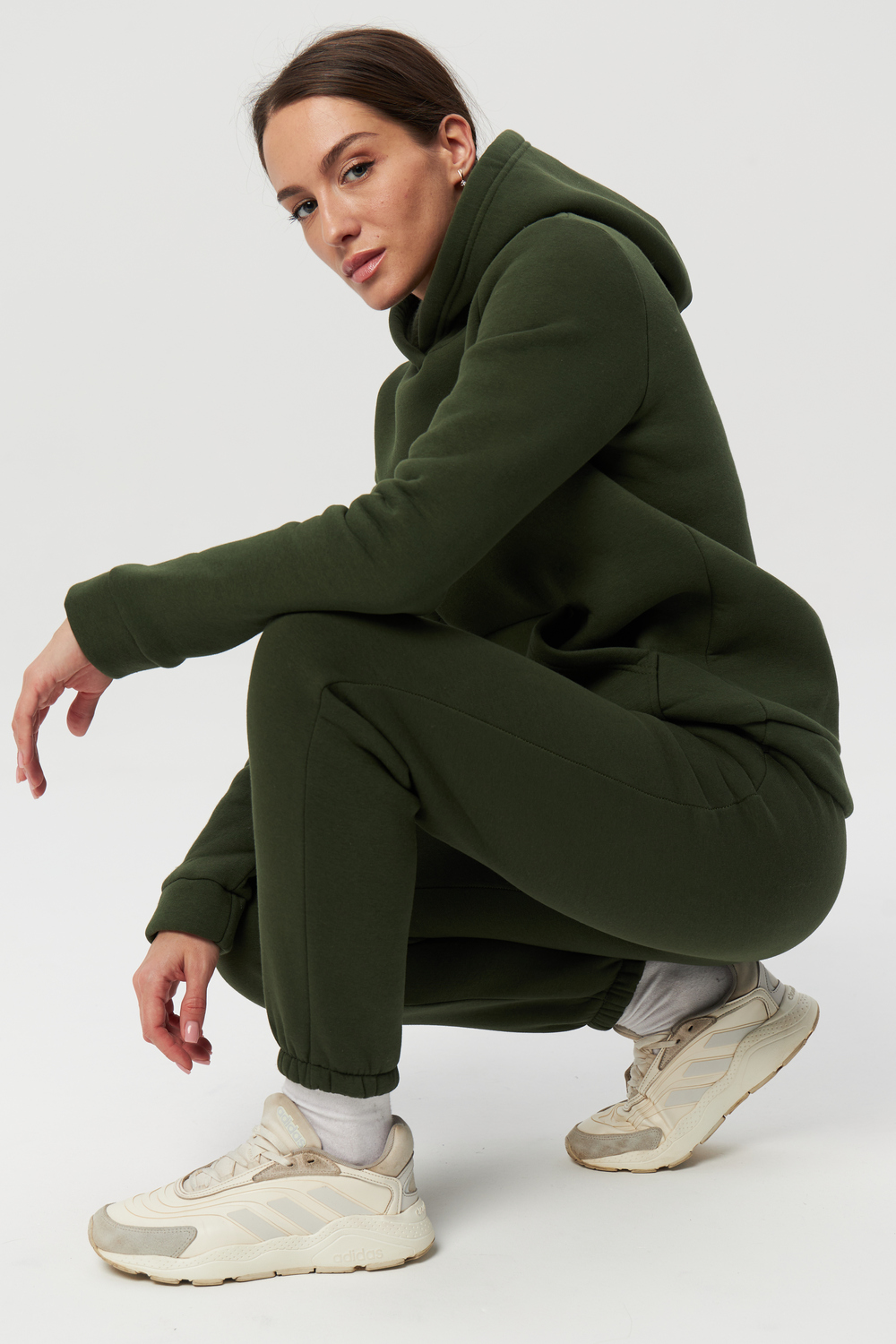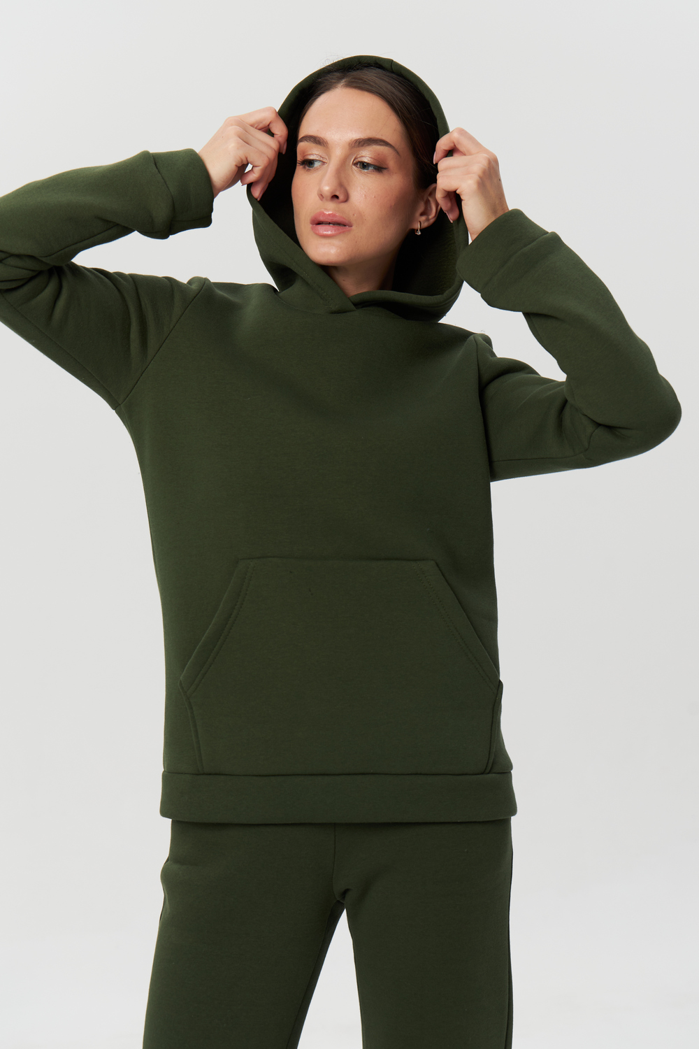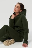 Костюм с начёсом -прекрасный вариант повседневной одежды для осени и зимы. Толстовка прямого кроя, имеет классическую пройму с втачным рукавом с притачными манжетами и поясом из ткани верха. На полочке расположен карман –кенгуру. Капюшон однослойный, он прекрасно защитит голову в прохладную погоду. Брюки на резинке, с боковыми наклонными карманами, по низу штанины вшита внутрь резинка. На изделиях с начесом возможно образование катышек на внутренней стороне. После 1-2стирок образование катышек прекратится. До этого времени рекомендуется носить изделия на футболки/топы цвета худи. Рекомендации по уходу: :-режимы «деликатная стирка» температура не выше 35градусов. -не использовать режимы «сушка» и «отжим» -использовать кондиционер при стирке -сушить на горизонтальной поверхности , не развешивать -не гладить полотно в мокром виде.