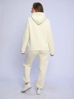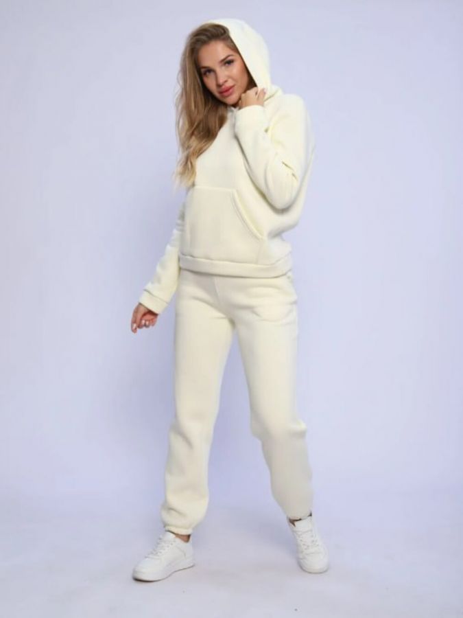 Костюм с начёсом -прекрасный вариант повседневной одежды для осени и зимы. Толстовка прямого кроя, имеет классическую пройму с втачным рукавом с притачными манжетами и поясом из ткани верха. На полочке расположен карман –кенгуру. Капюшон однослойный, он прекрасно защитит голову в прохладную погоду. Брюки на резинке, с боковыми наклонными карманами, по низу штанины вшита внутрь резинка. На изделиях с начесом возможно образование катышек на внутренней стороне. После 1-2стирок образование катышек прекратится. До этого времени рекомендуется носить изделия на футболки/топы цвета худи. Рекомендации по уходу: :-режимы «деликатная стирка» температура не выше 35градусов. -не использовать режимы «сушка» и «отжим» -использовать кондиционер при стирке -сушить на горизонтальной поверхности , не развешивать -не гладить полотно в мокром виде.