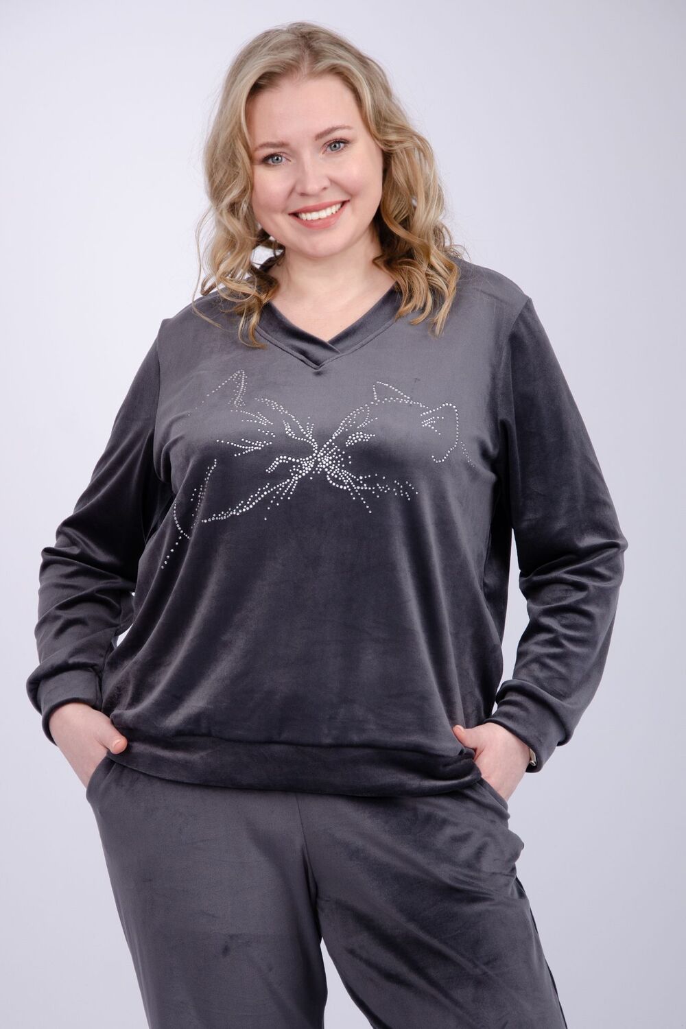 Женский велюровый костюм - это идеальное сочетание стиля, комфорта и практичности для повседневной жизни. Трикотажный комплект-двойка состоит из свитшота и брюк, которые будут отлично сочетаться с другими вещами из вашего гардероба. Высокая посадка и широкий размерный ряд, включая большие размеры, позволит подобрать комплект для разных типов фигур. Демисезонный костюм идеально подходит для круглогодичной носки, он прекрасно сохраняет тепло. Для осенне-зимнего сезона и для прохладных весенних и летних дней. Неважно, занимаетесь вы спортом или ищете удобную одежду, этот бархатный костюм станет отличным выбором для прогулок, путешествий и вечерних встреч с друзьями.
