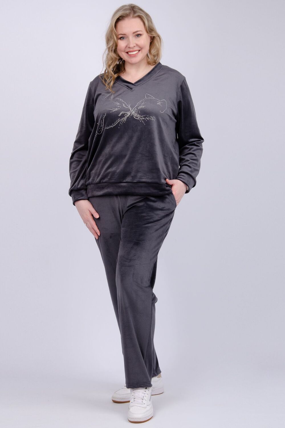 Женский велюровый костюм - это идеальное сочетание стиля, комфорта и практичности для повседневной жизни. Трикотажный комплект-двойка состоит из свитшота и брюк, которые будут отлично сочетаться с другими вещами из вашего гардероба. Высокая посадка и широкий размерный ряд, включая большие размеры, позволит подобрать комплект для разных типов фигур. Демисезонный костюм идеально подходит для круглогодичной носки, он прекрасно сохраняет тепло. Для осенне-зимнего сезона и для прохладных весенних и летних дней. Неважно, занимаетесь вы спортом или ищете удобную одежду, этот бархатный костюм станет отличным выбором для прогулок, путешествий и вечерних встреч с друзьями.