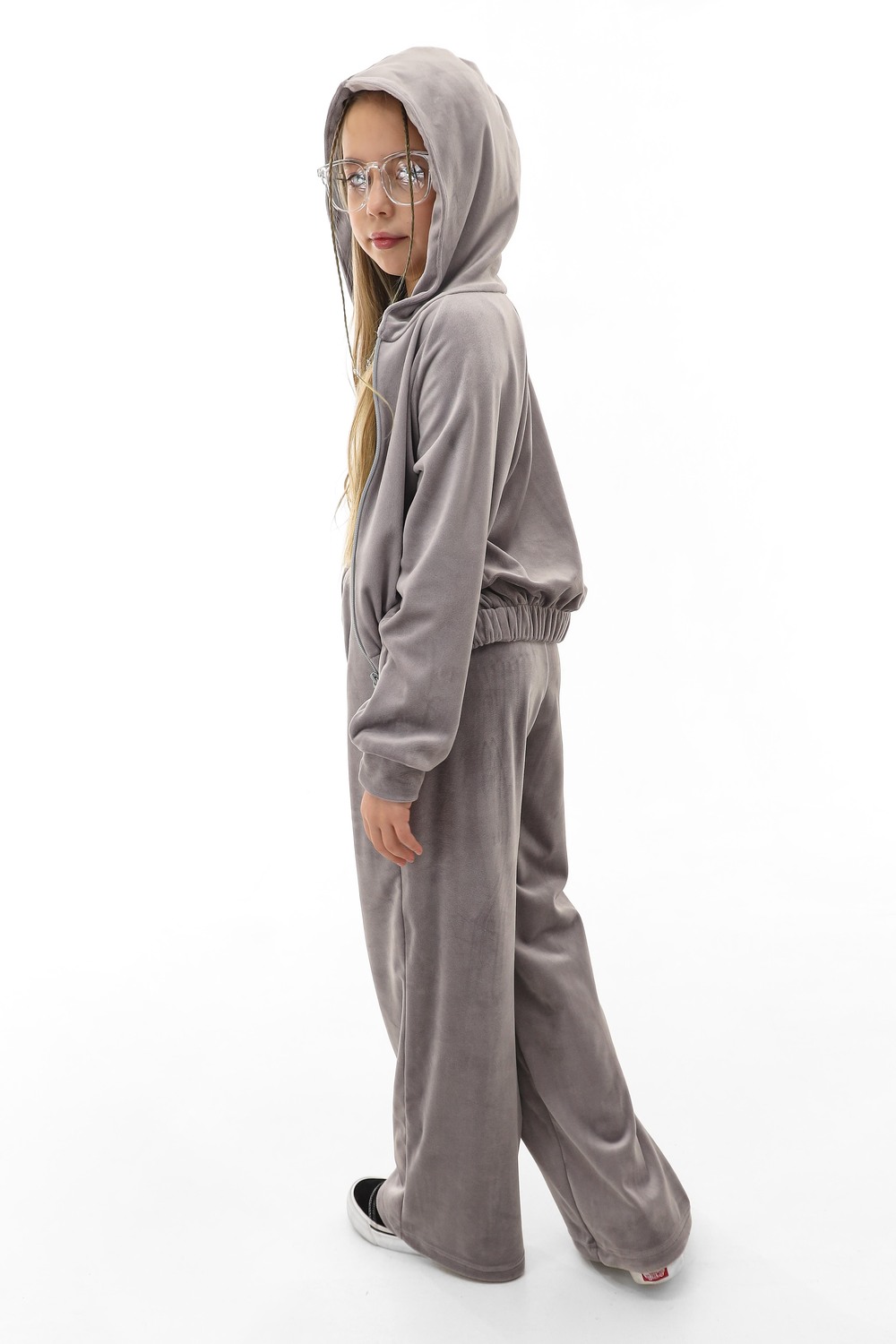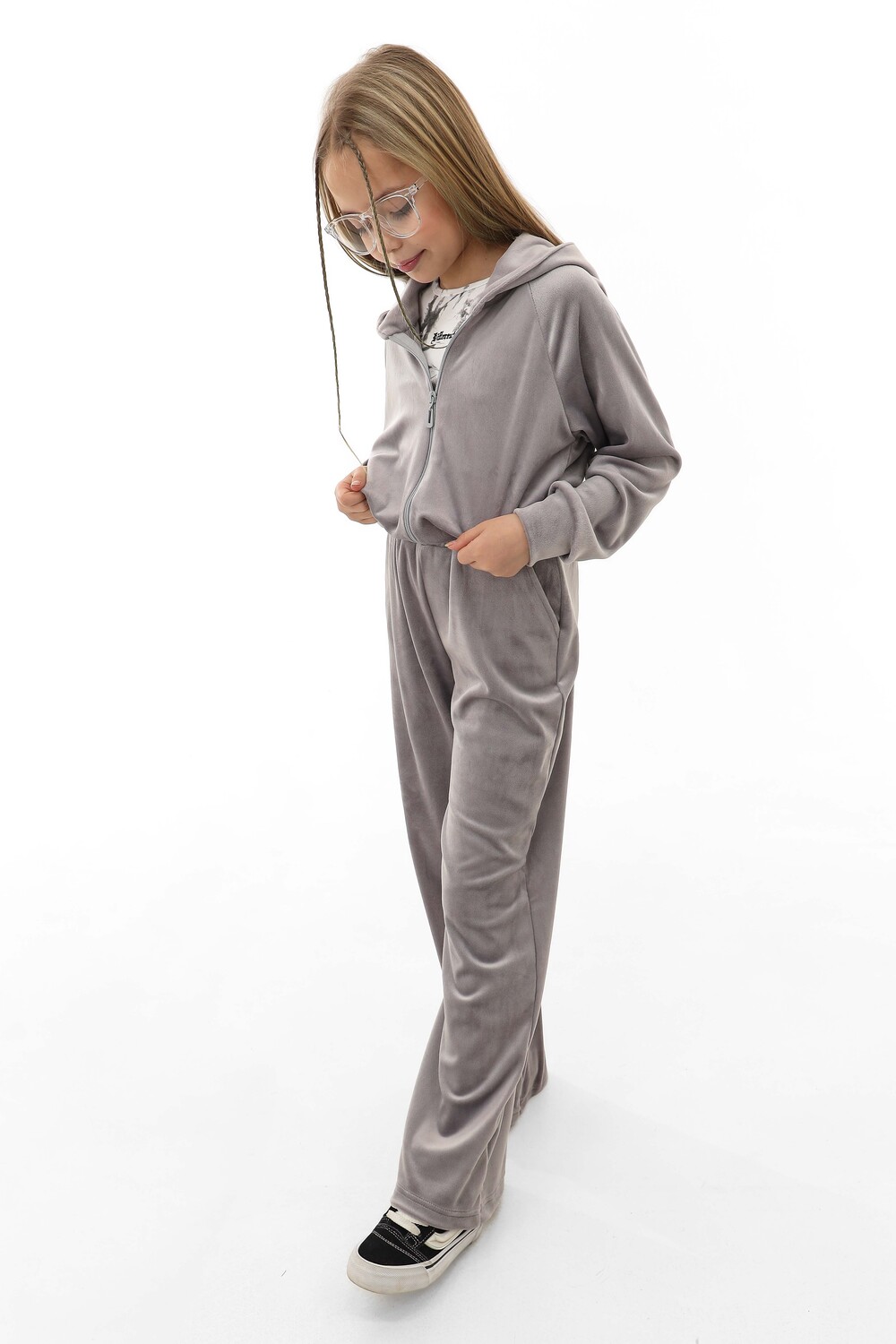 Мягкий велюровый костюм на молнии и с капюшоном, что очень удобно. Подойдет и для прогулок, а также как домашний костюм.