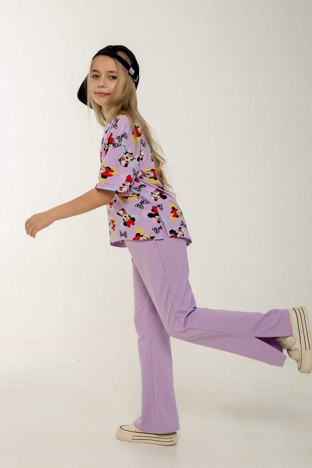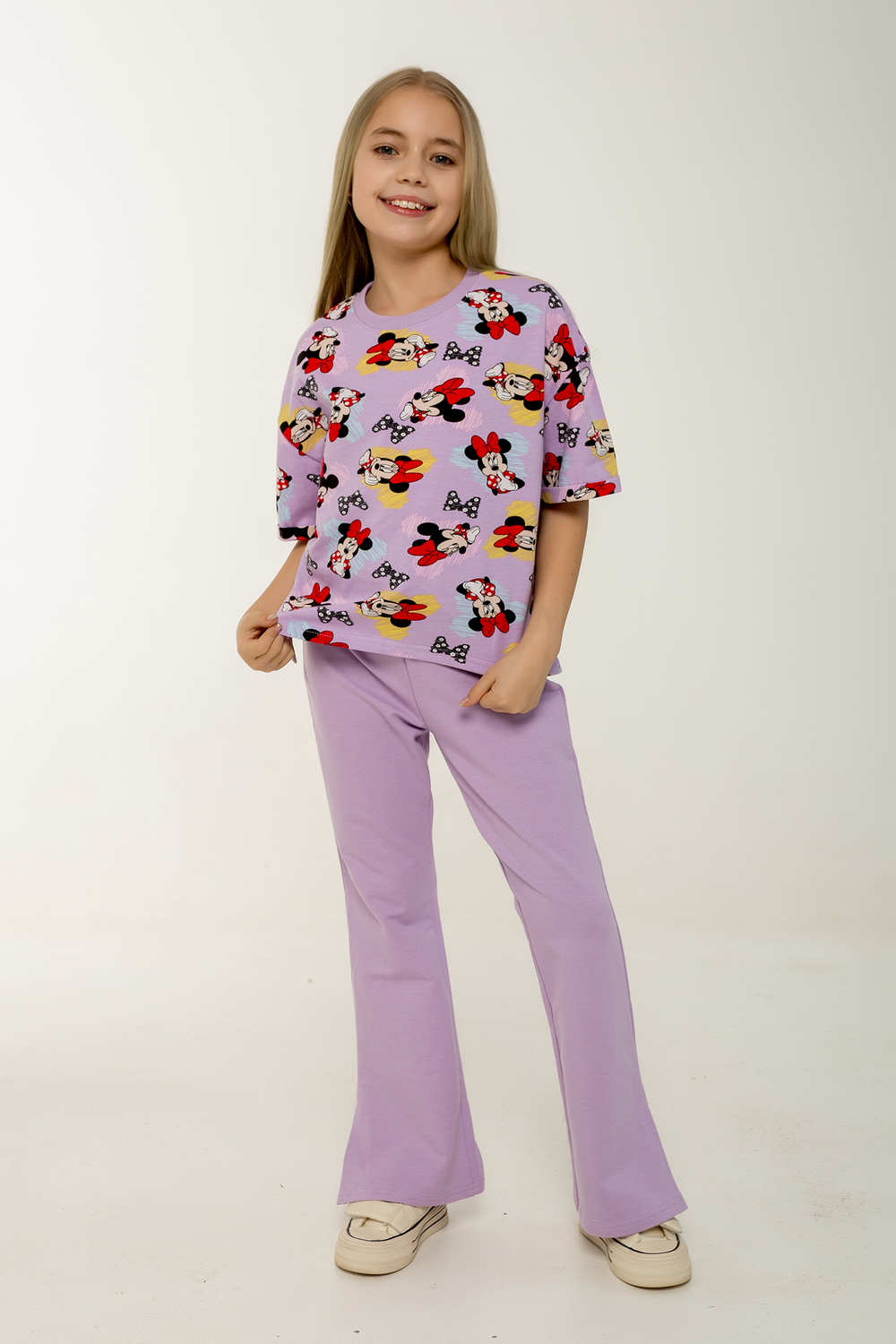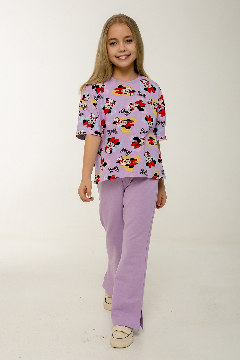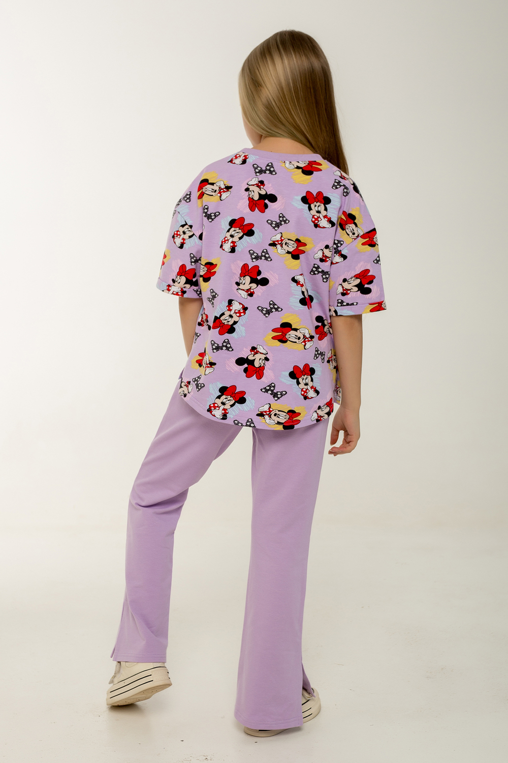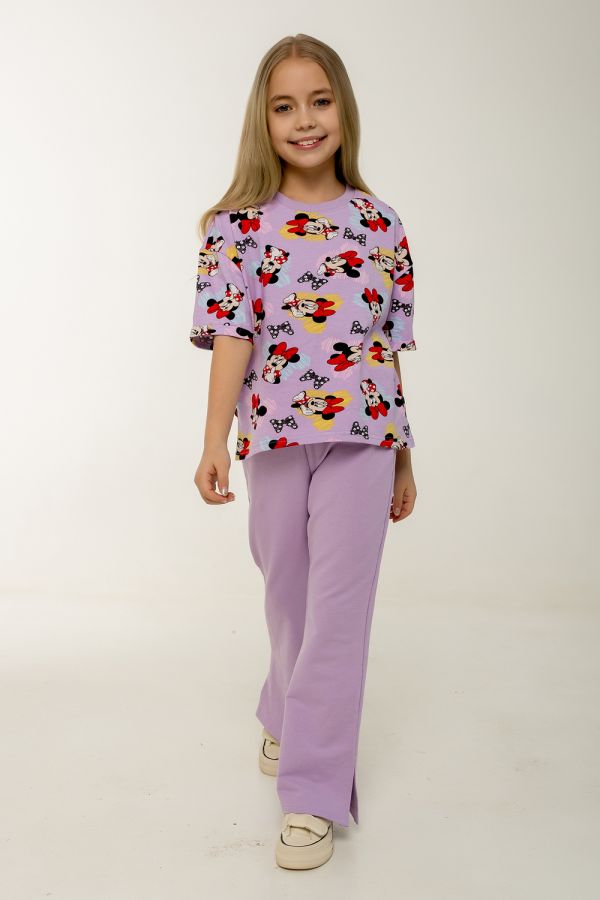 Этот стильный и удобный костюм-двойка станет замечательным выбором для активной малышки! В комплекте идет футболка с коротким рукавом и брюки, оба изделия выполнены из петельчатого футера, который обеспечивает комфорт и свободу движений. Футболка украшена модным рисунком с изображением Минни Маус, имеет короткие рукава и боковые разрезы, что добавляет оригинальности и удобства. Брюки выполнены в однотонном исполнении, без карманов, с боковыми разрезами внизу, что делает их идеальными для активных игр. Костюм прекрасно подходит для повседневного ношения, посещения детского сада или использования в качестве домашнего комплекта. Продукция сертифицирована и произведена на фабрике "Мариша", что гарантирует высокое качество и безопасность материалов.