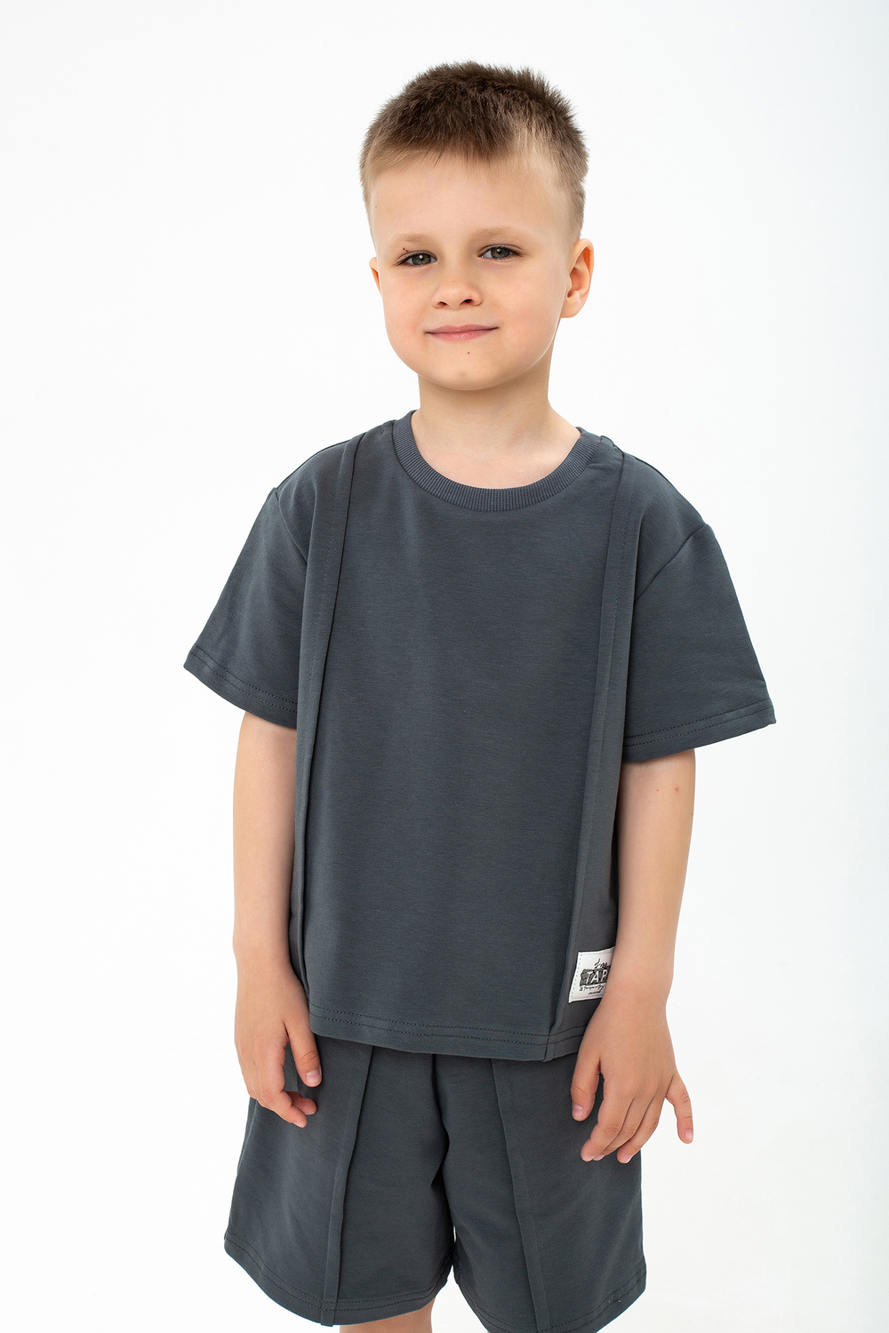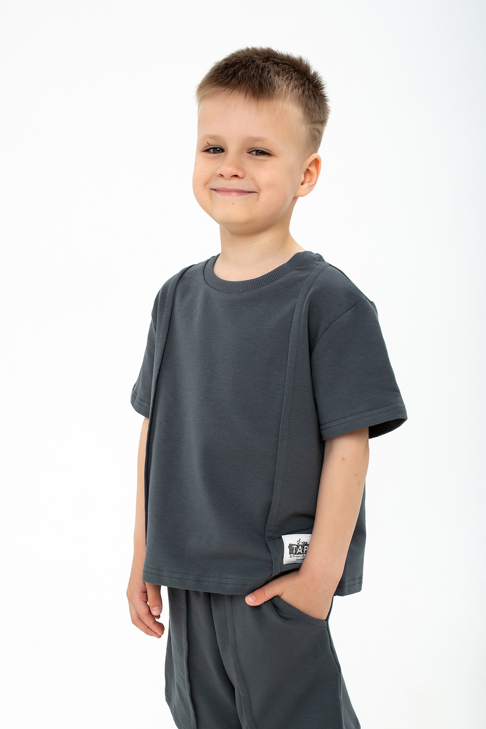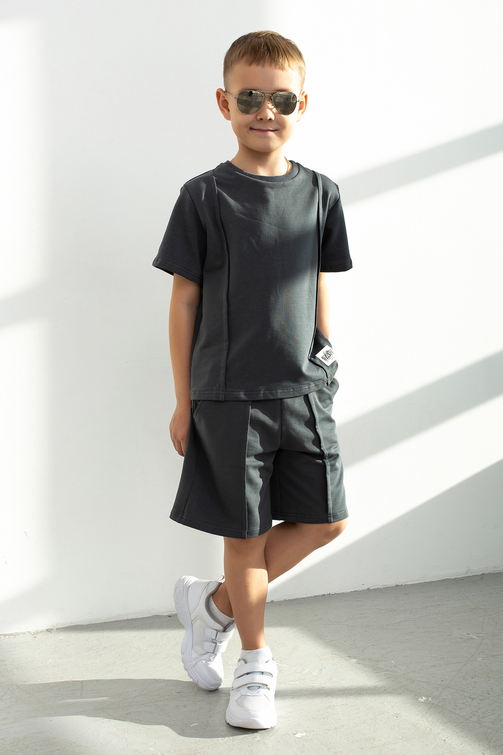 Предлагаем вашему вниманию стильный детский костюм для мальчиков, который подарит малышу максимум удобства и удовольствия от каждого дня! Набор состоит из уютной футболки и удобных шорт, выполненных из натурального петельчатого футера приятной фактуры. Главной особенностью комплекта является оригинальный декор: футболка и шорты украшены элегантными строчками-стрелками на передней части, подчёркивая спортивный характер образа и придавая комплекту свежий, динамичный вид. Футболка оснащена короткими рукавами и свободно сидит на теле, позволяя ребенку активно двигаться и играть без ограничений. А шорты с мягким поясом на резинке обеспечивают идеальный комфорт и дополнительную свободу действий, а вместительные боковые карманы удобно разместят мелкие игрушки и необходимые мелочи. Благодаря сдержанной и универсальной расцветке костюм подойдет как мальчикам, так и девочкам, становясь незаменимым элементом гардероба на прогулках, отдыхе, занятиях спортом и домашней обстановке. Мы гордимся качеством нашего продукта: продукция изготовлена на фабрике «Мариша», сертифицирована и абсолютно безопасна для детей всех возрастов. Приобретите этот универсальный и модный детский костюм — пусть ваш малыш чувствует себя уверенно и счастливо каждый день!