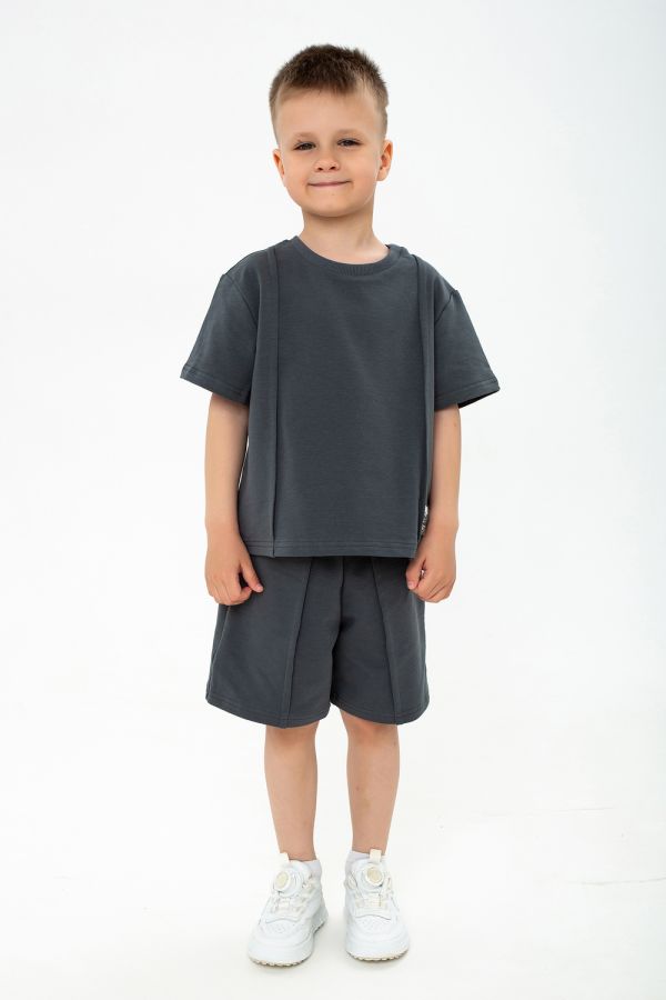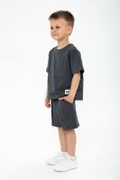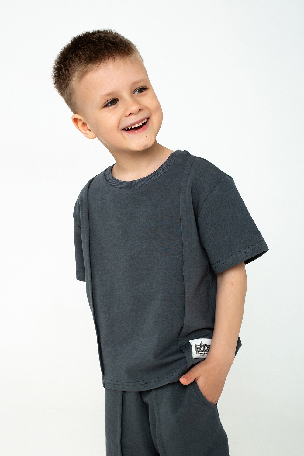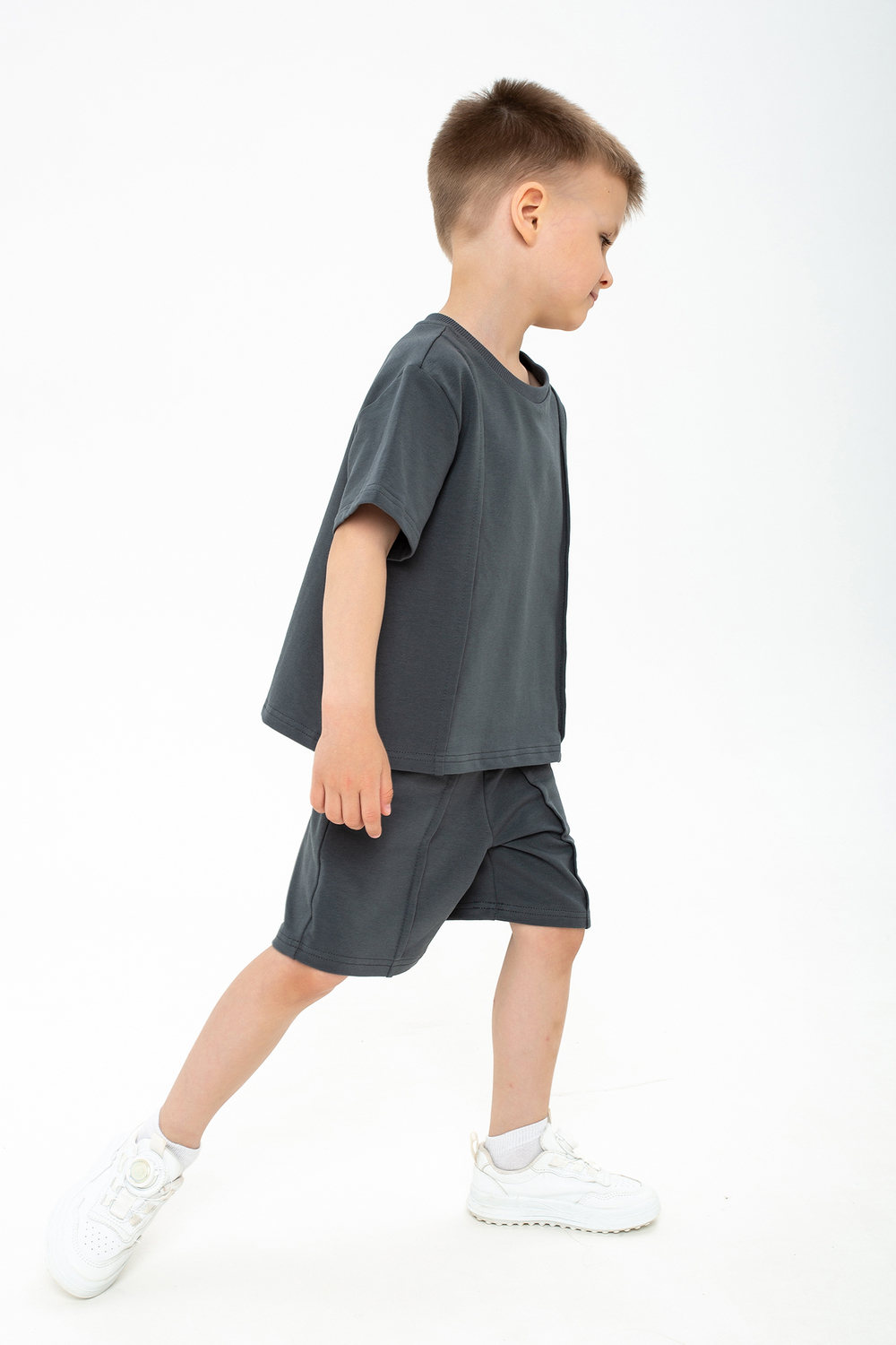 Предлагаем вашему вниманию стильный детский костюм для мальчиков, который подарит малышу максимум удобства и удовольствия от каждого дня! Набор состоит из уютной футболки и удобных шорт, выполненных из натурального петельчатого футера приятной фактуры. Главной особенностью комплекта является оригинальный декор: футболка и шорты украшены элегантными строчками-стрелками на передней части, подчёркивая спортивный характер образа и придавая комплекту свежий, динамичный вид. Футболка оснащена короткими рукавами и свободно сидит на теле, позволяя ребенку активно двигаться и играть без ограничений. А шорты с мягким поясом на резинке обеспечивают идеальный комфорт и дополнительную свободу действий, а вместительные боковые карманы удобно разместят мелкие игрушки и необходимые мелочи. Благодаря сдержанной и универсальной расцветке костюм подойдет как мальчикам, так и девочкам, становясь незаменимым элементом гардероба на прогулках, отдыхе, занятиях спортом и домашней обстановке. Мы гордимся качеством нашего продукта: продукция изготовлена на фабрике «Мариша», сертифицирована и абсолютно безопасна для детей всех возрастов. Приобретите этот универсальный и модный детский костюм — пусть ваш малыш чувствует себя уверенно и счастливо каждый день!