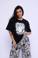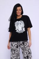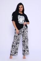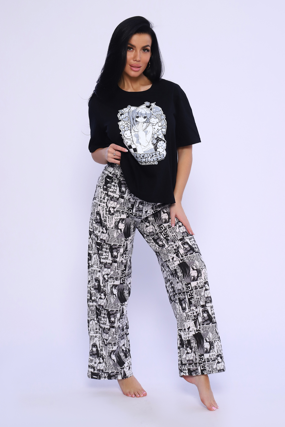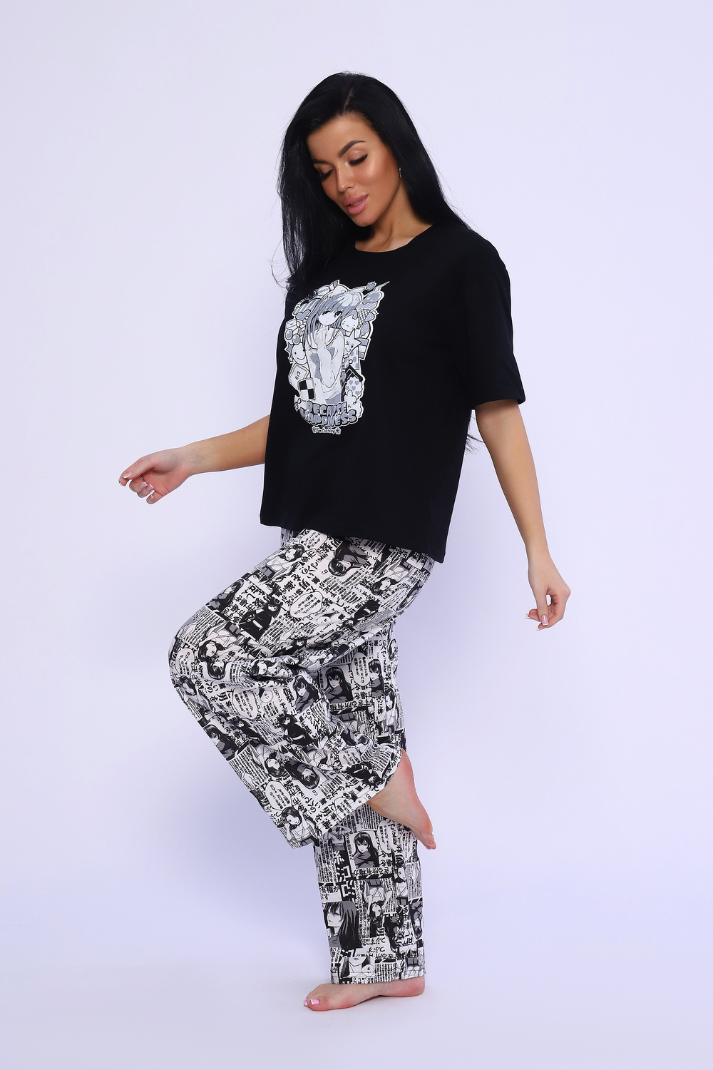 Костюм домашний, футболка прямого кроя с коротким рукавом и брюки свободного кроя.
