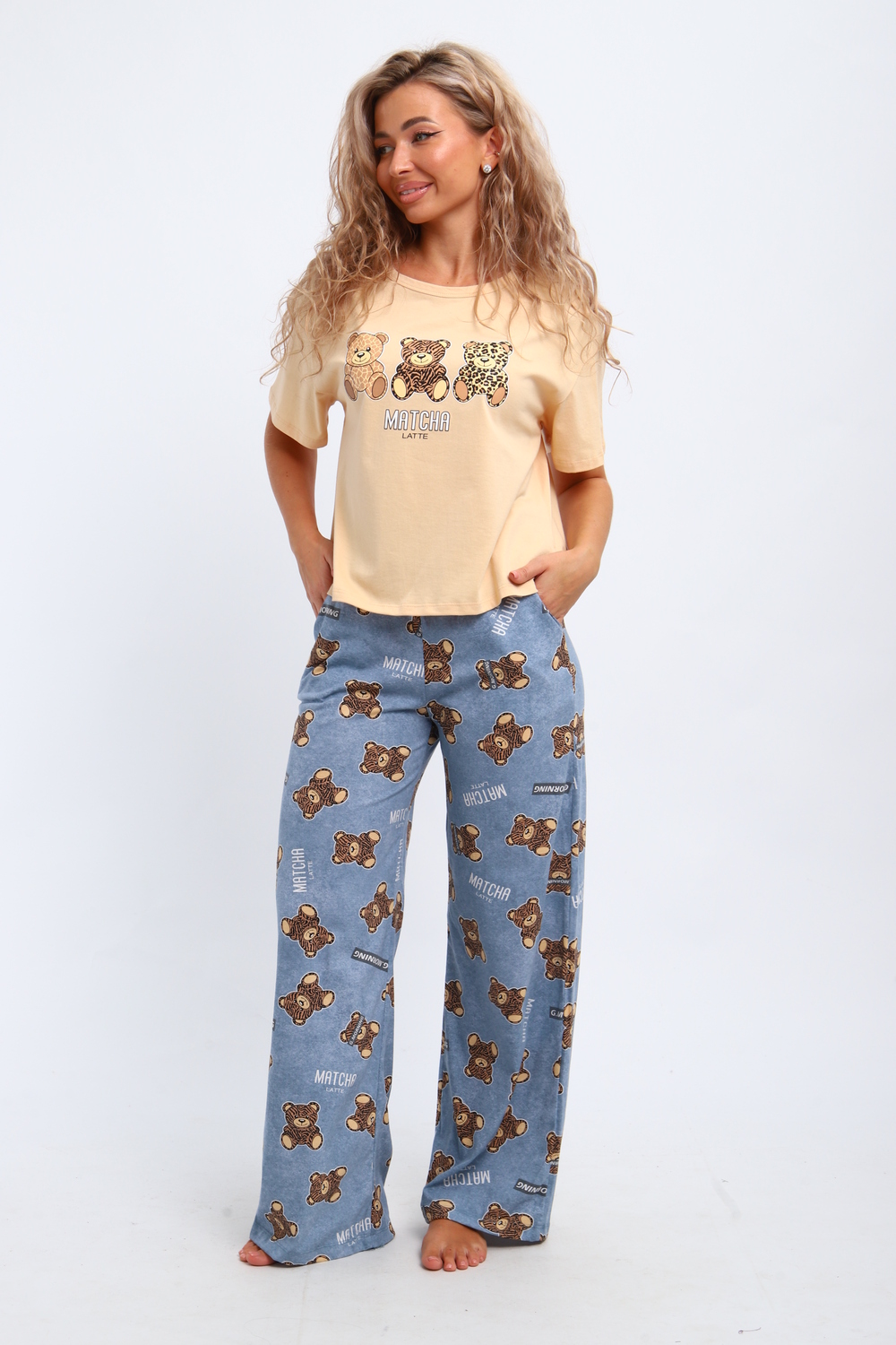 Красивый женский костюм двойка от ивановского производителя состоит из футболки и брюк в стиле палаццо. Этот стильный домашний комплект выполнен из мягкого и приятного на ощупь трикотажного материала из 100% хлопка. Он идеально подойдет для осеннего и весеннего сезонов. Эта женская пижама с брюками кюлотами сочетает женственность и удобство. Отличный выбор для повседневного использования дома и сна. Брюки клеш придают образу особый шарм и делают костюм популярным среди молодежи и подростков. Благодаря широким брюкам, пижама выглядит модно и трендово. Этот ночной комплект предлагается в нескольких размерах, включая большие размеры, и подходит стройным девушкам и женщинам, а также полным дамам plus size. Благодаря свободному крою и удобным брюкам трубам, он также идеально подойдет для беременных женщин, давая им свободу движения и комфорт в домашних условиях. Хлопковая пижама изготовлена из качественного турецкого трикотажа (кулирка), который приятен к телу и обеспечивает комфорт во время ночного отдыха. Она подойдет для любого времени года, особенно на осень, весну, зиму. Этот удобный и стильный комплект пижамы с брюками станет отличным выбором для роддома, повседневного отдыха дома или даже для новогодней фотосессии и пижамной вечеринки. Сочетание комфорта, красоты и функциональности делает эту пижаму невероятно привлекательной. Домашний костюм, пижама - это прекрасный подарок себе, маме, сестре, бабушке, жене на новый год, день рождения или без повода.