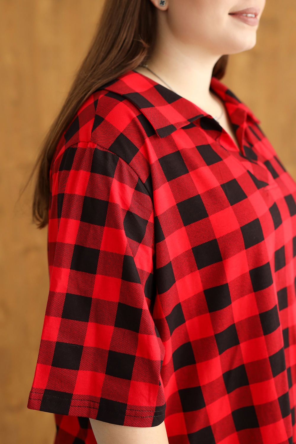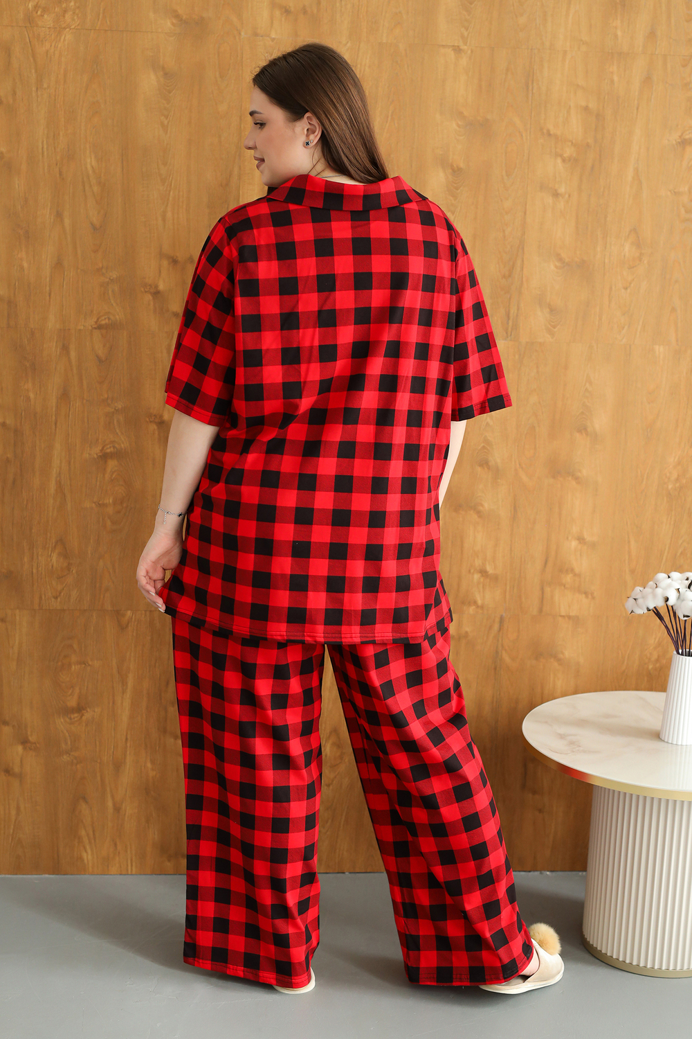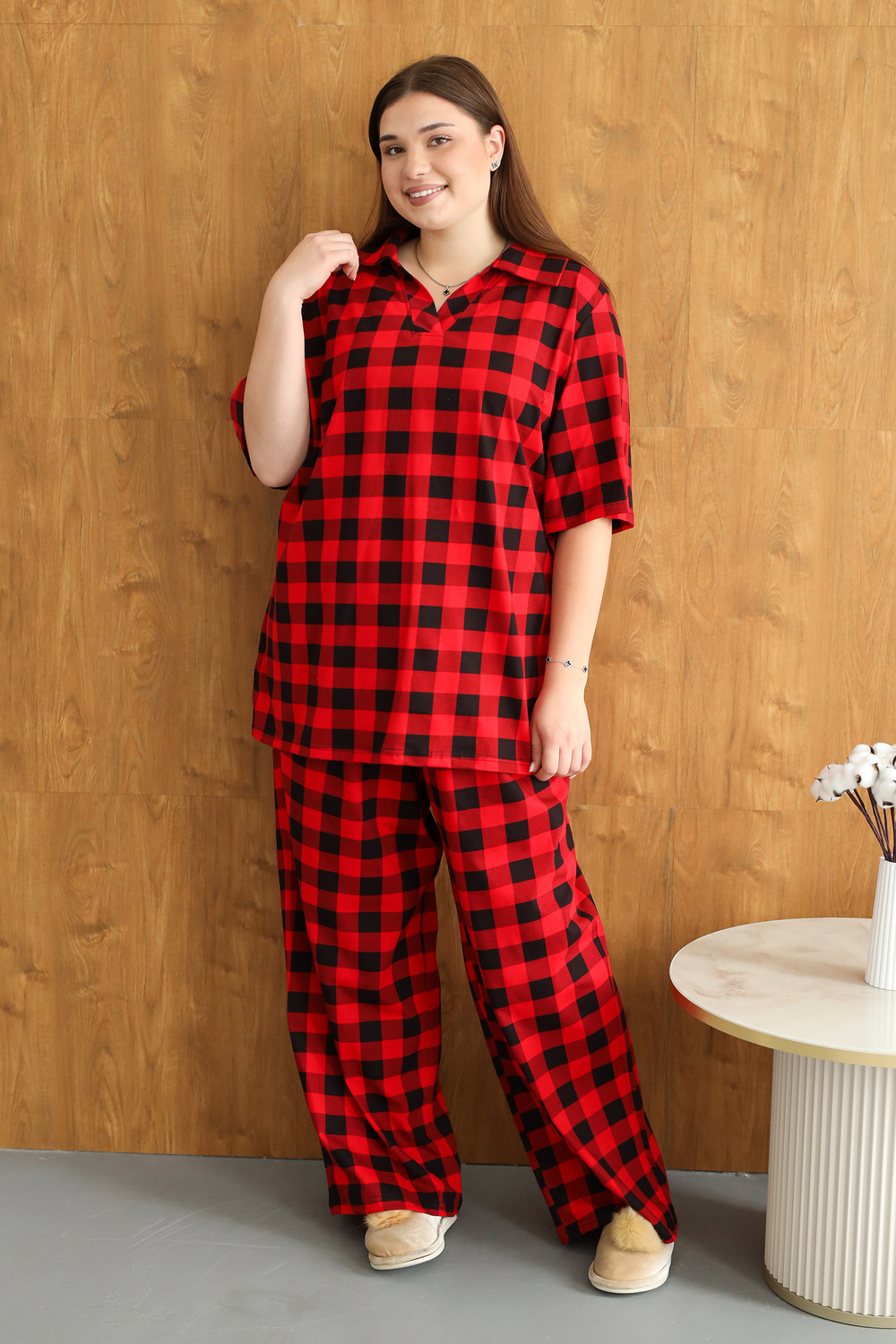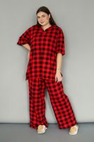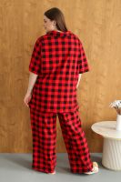 Костюм домашний с брюками больших размеров от ВРазмере – это идеальный выбор для комфортного отдыха дома. Этот трикотажный комплект, выполненный из 100% хлопка, подарит вам ощущение нежности и мягкости на коже. Модель представлена в красивом принте в клетку бордового цвета, который всегда актуален и придает образу стильный вид. Футболка поло с коротким рукавом и V-образным вырезом горловины обеспечивает удобство и свободу движений. Широкие брюки палаццо с высокой посадкой подчеркнут вашу фигуру и создадут элегантный силуэт. Этот костюм станет прекрасным подарком на любой праздник, будь то Новый год или день рождения. Он подойдет женщинам больших размеров, а также беременным, так как его покрой разработан специально для комфорта и удобства. Благодаря своей универсальности, костюм можно носить круглый год, создавая уютные образы для дома. Легко ухаживать за костюмом: достаточно стирать его при температуре не более 40°C. Выбирайте комфорт и стиль с костюмом домашним от ВРазмере!