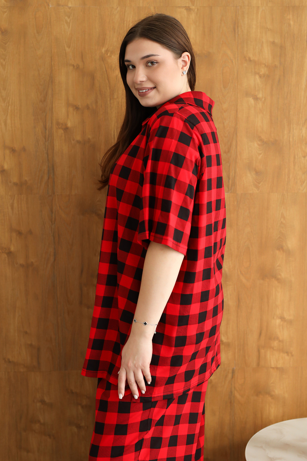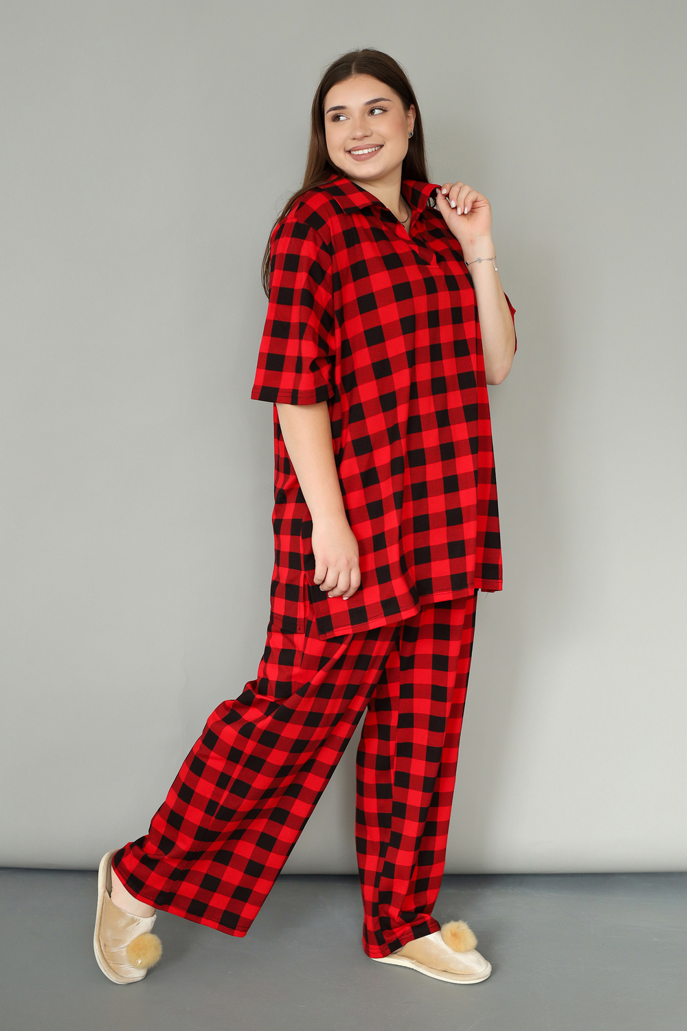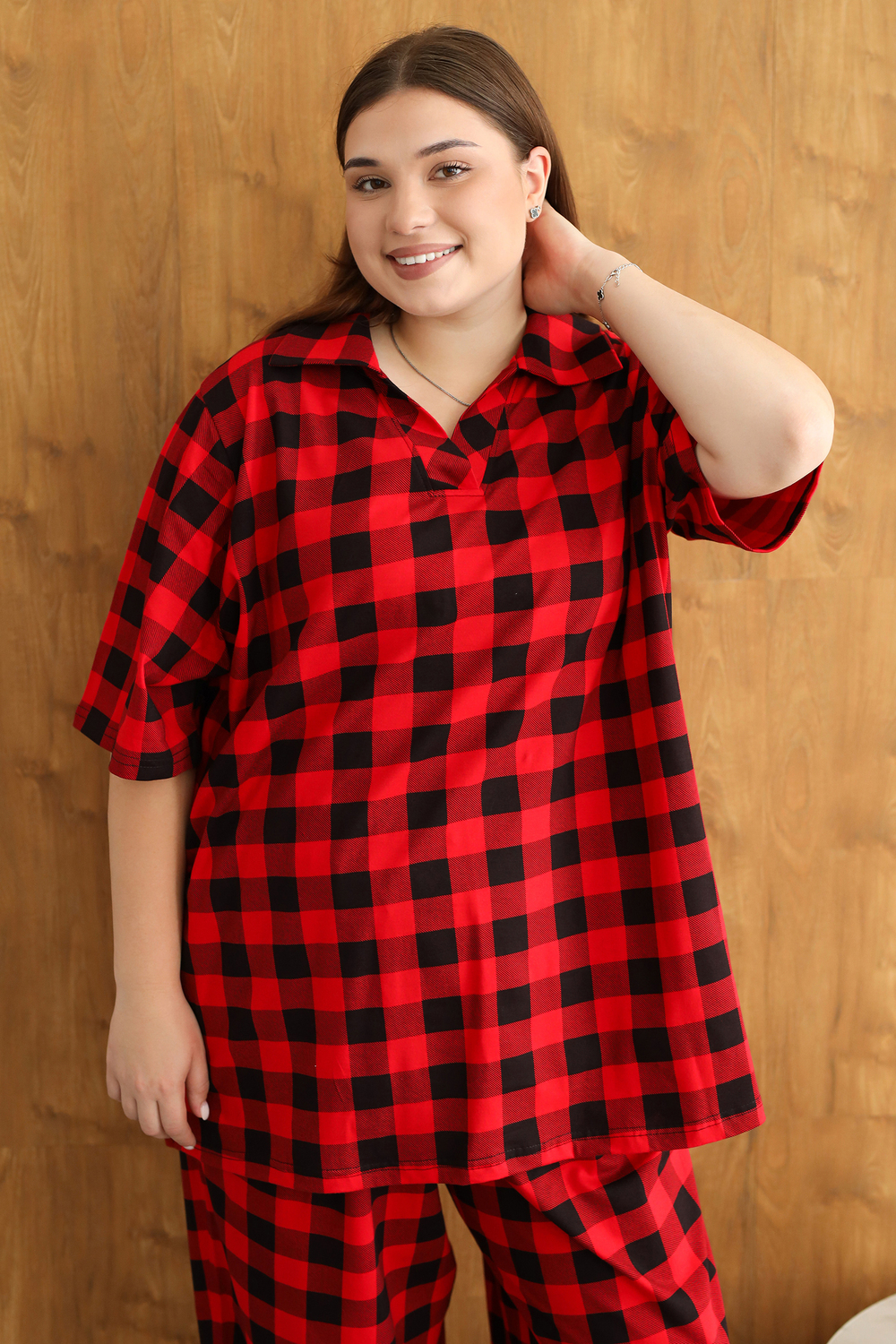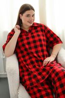 Костюм домашний с брюками больших размеров от ВРазмере – это идеальный выбор для комфортного отдыха дома. Этот трикотажный комплект, выполненный из 100% хлопка, подарит вам ощущение нежности и мягкости на коже. Модель представлена в красивом принте в клетку бордового цвета, который всегда актуален и придает образу стильный вид. Футболка поло с коротким рукавом и V-образным вырезом горловины обеспечивает удобство и свободу движений. Широкие брюки палаццо с высокой посадкой подчеркнут вашу фигуру и создадут элегантный силуэт. Этот костюм станет прекрасным подарком на любой праздник, будь то Новый год или день рождения. Он подойдет женщинам больших размеров, а также беременным, так как его покрой разработан специально для комфорта и удобства. Благодаря своей универсальности, костюм можно носить круглый год, создавая уютные образы для дома. Легко ухаживать за костюмом: достаточно стирать его при температуре не более 40°C. Выбирайте комфорт и стиль с костюмом домашним от ВРазмере!
